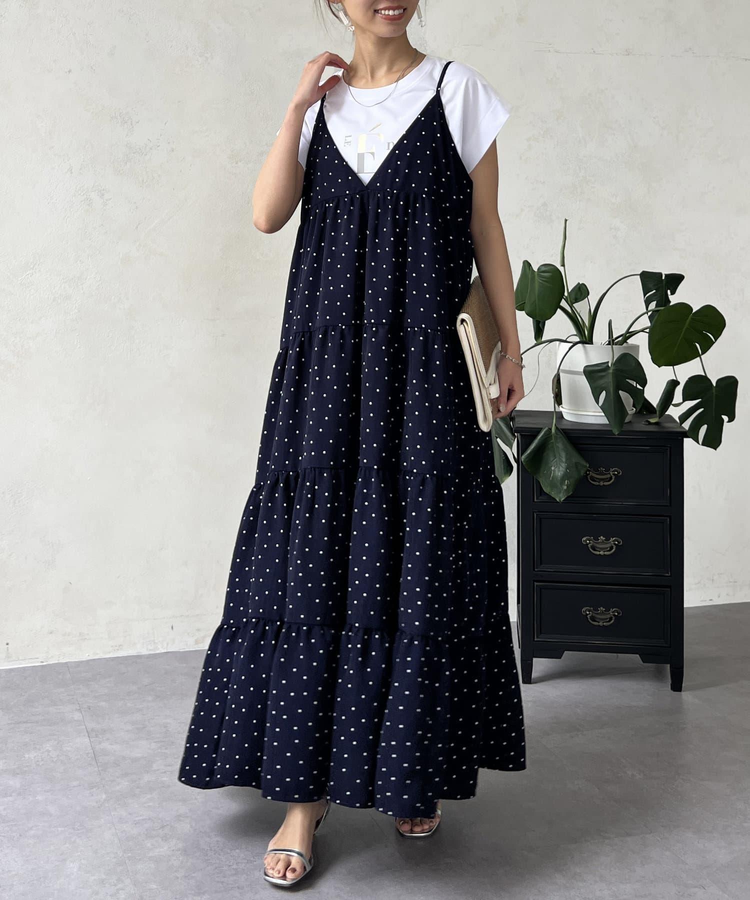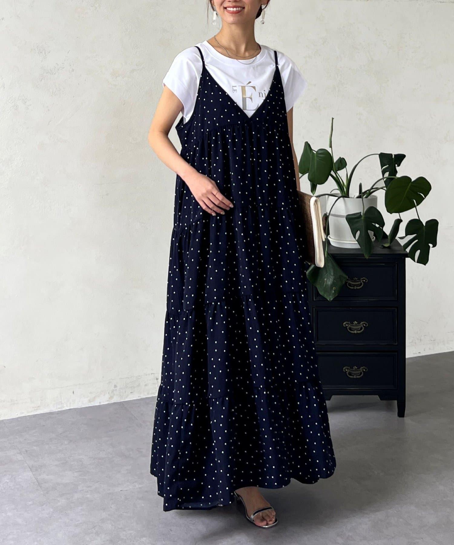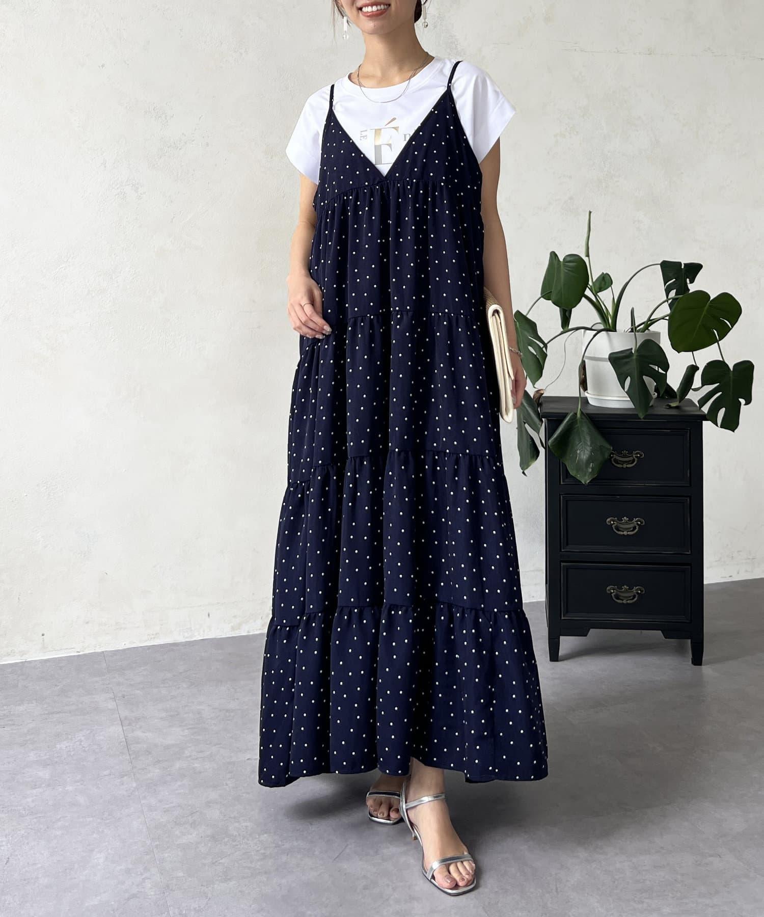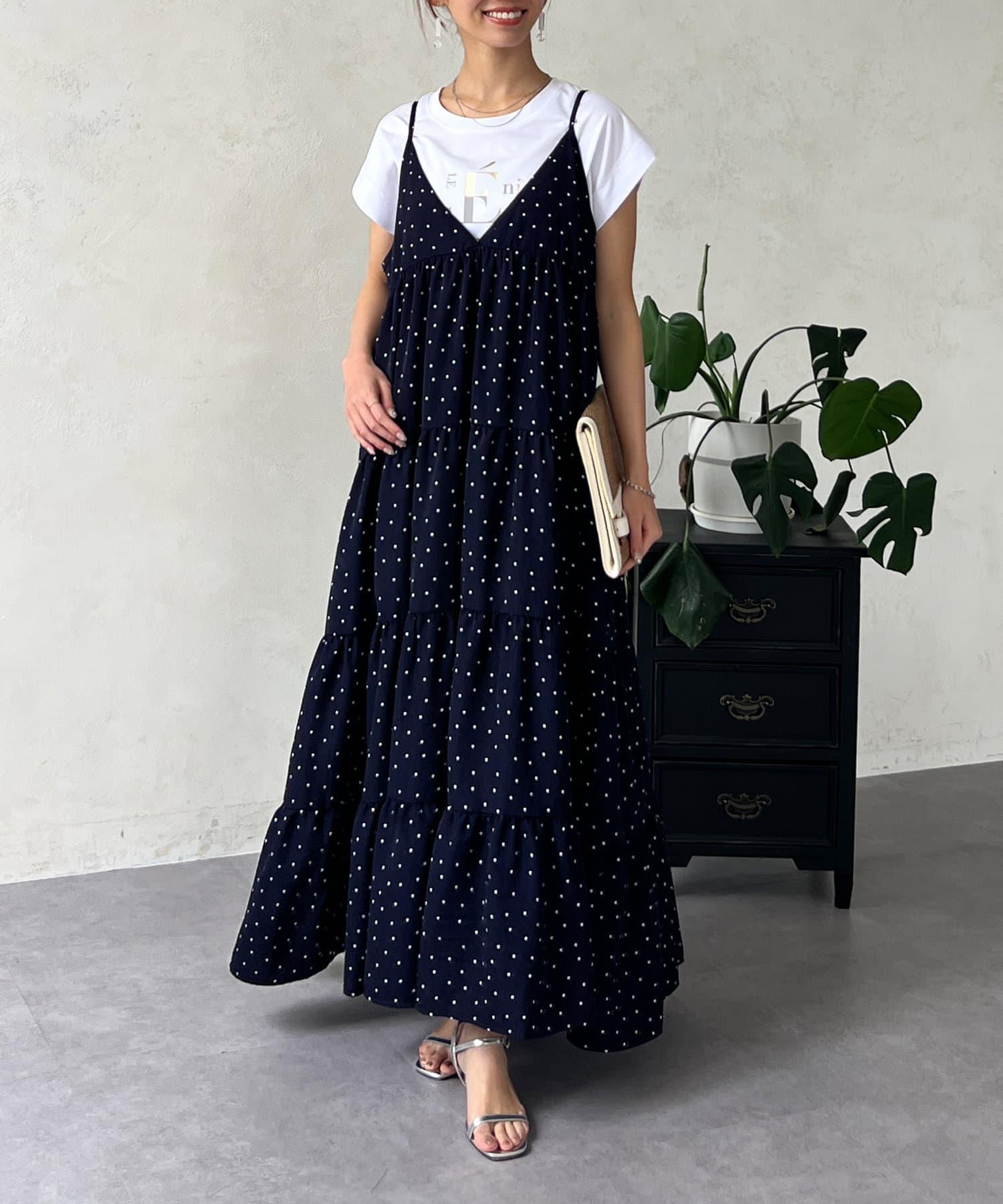 圓點吊帶連衣裙