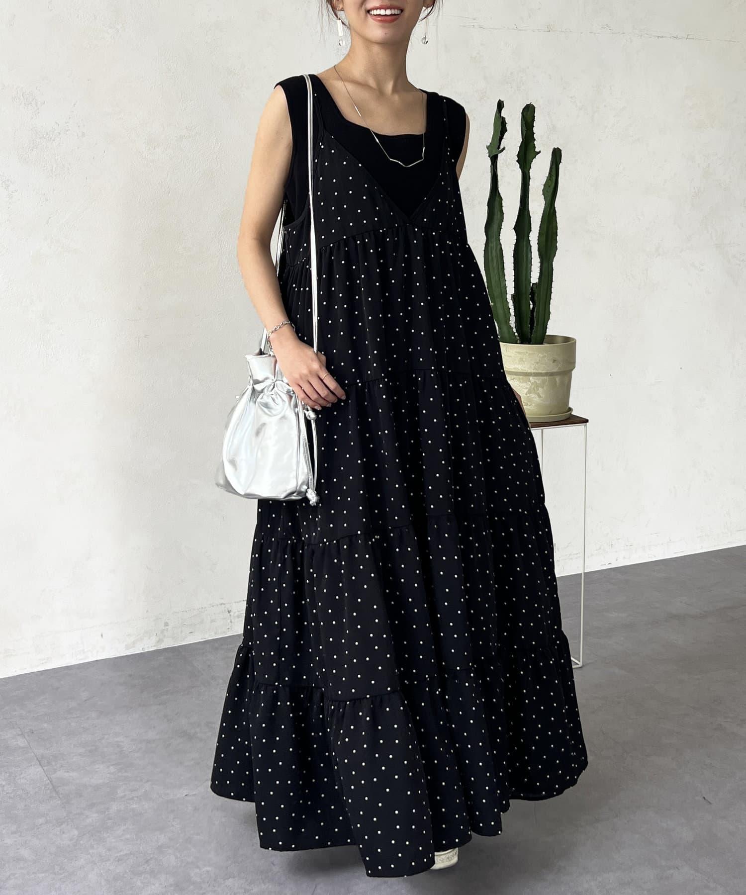 帶有可愛圓點圖案的吊帶裙。
