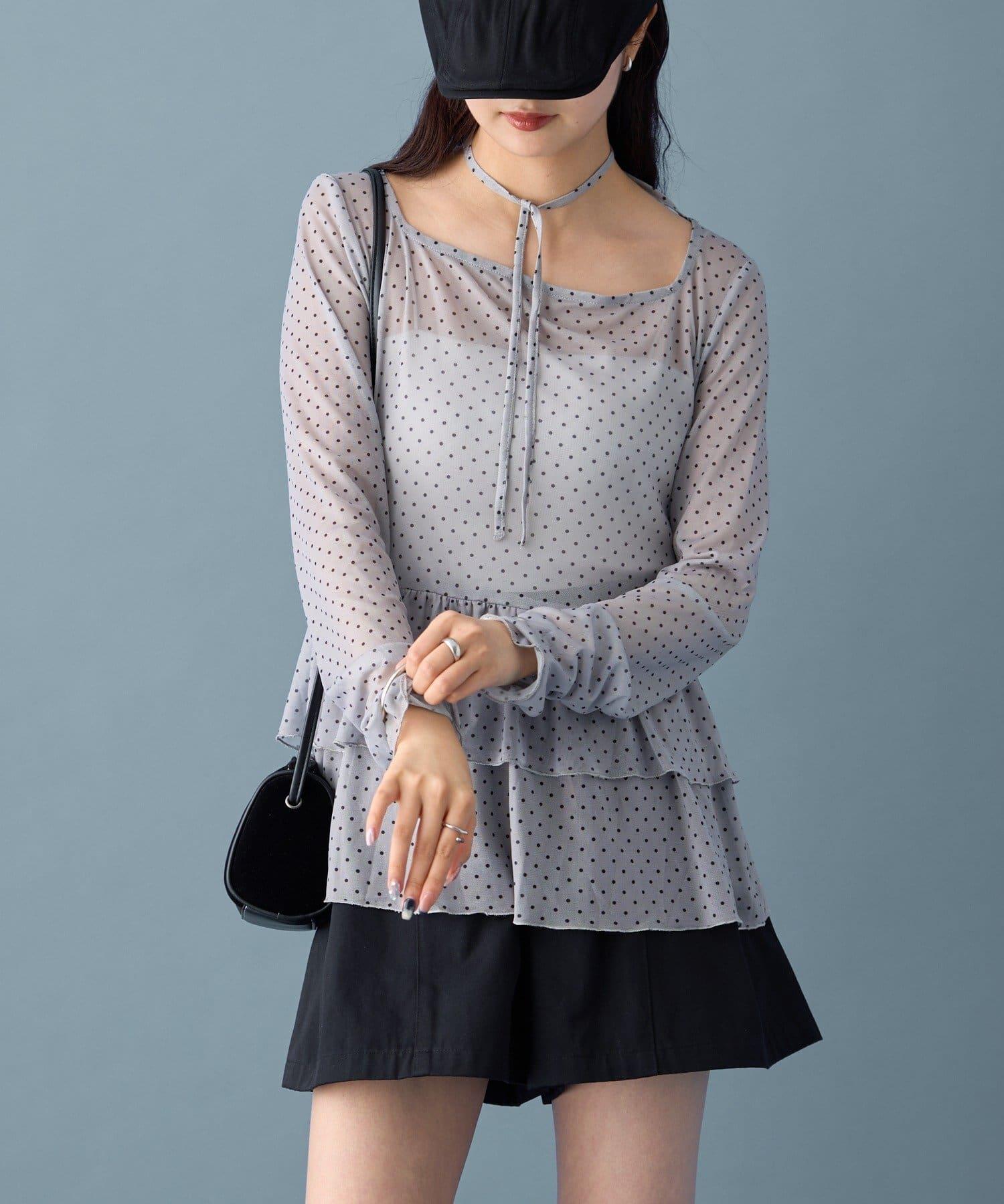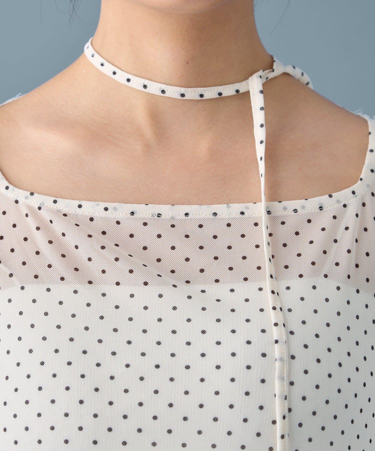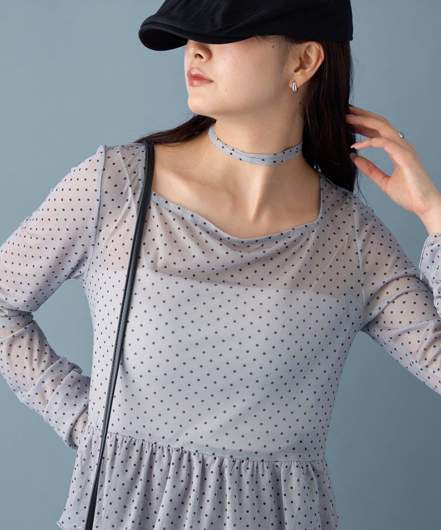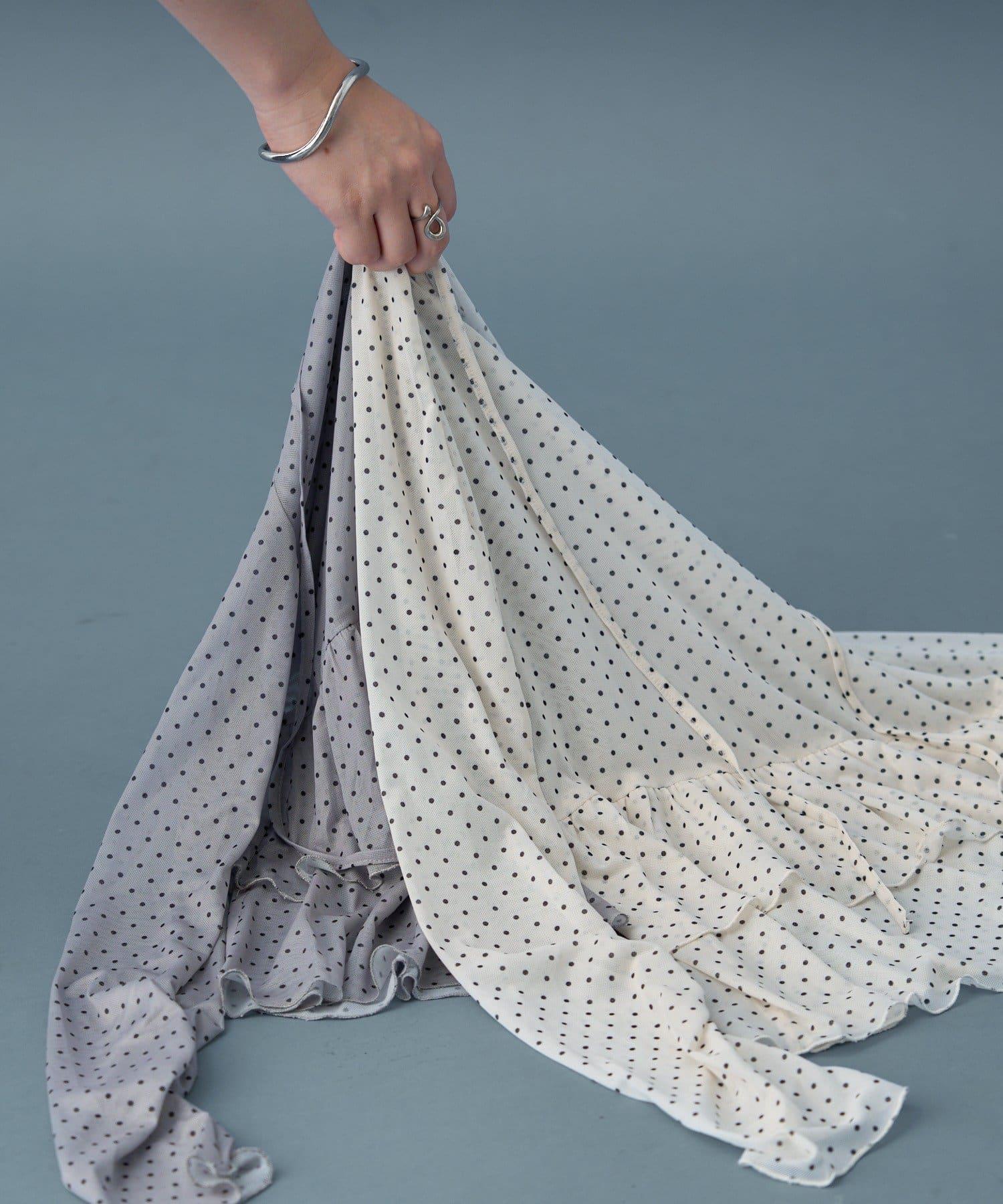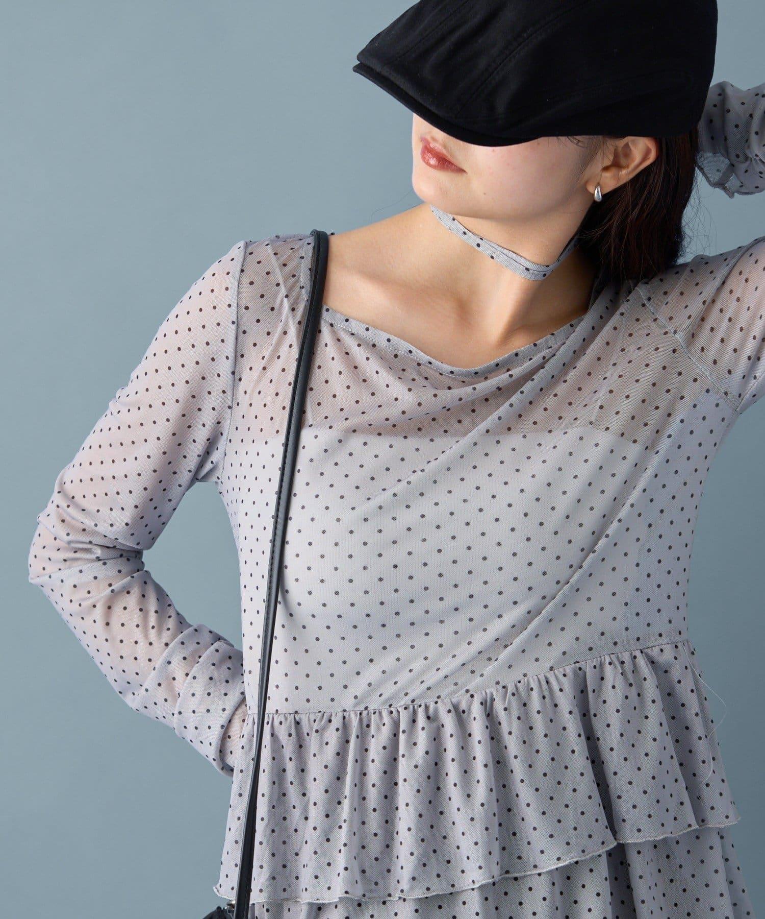 薄紗材質的透明感在點狀圖案的可愛中表現出女性的柔美。
