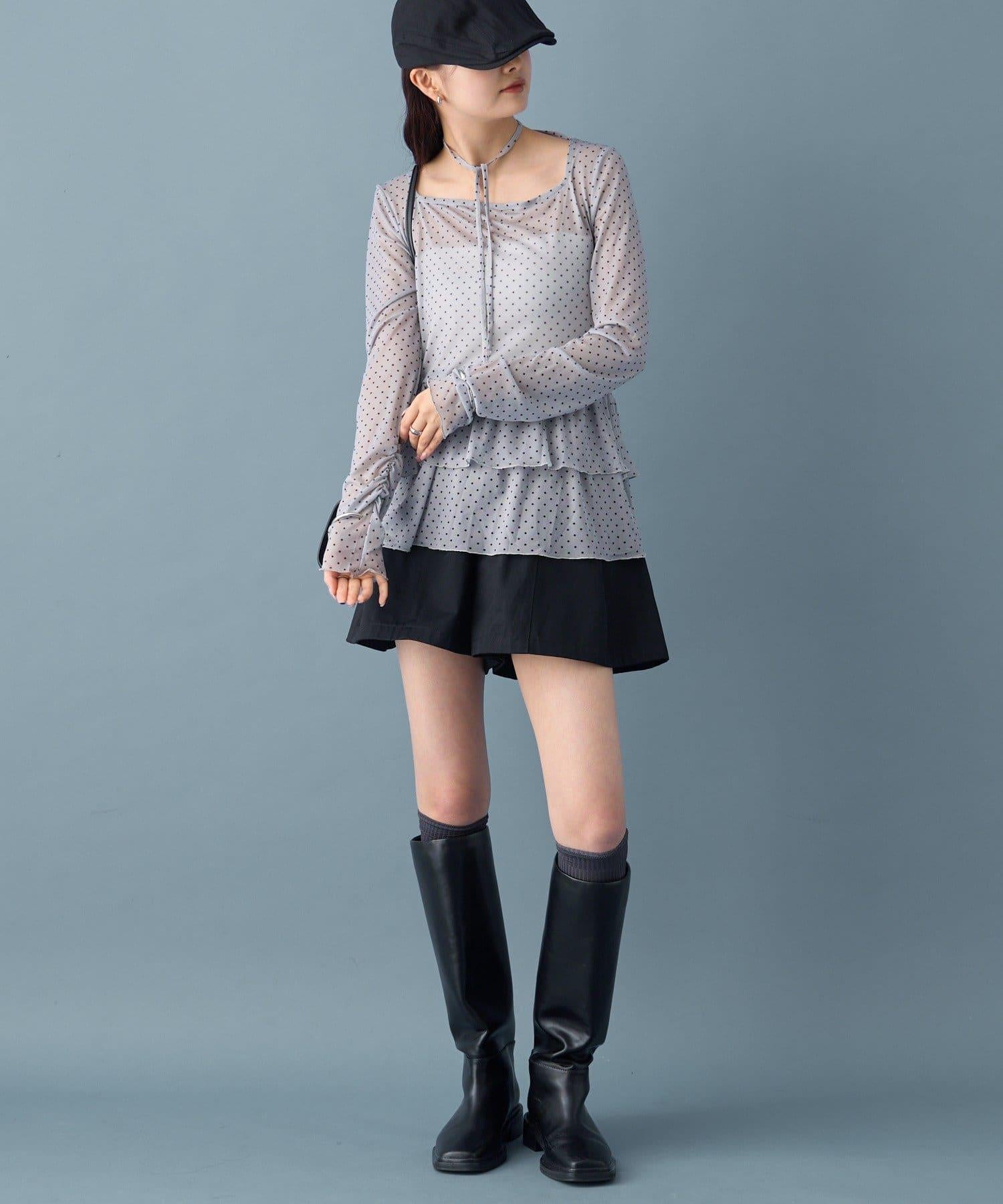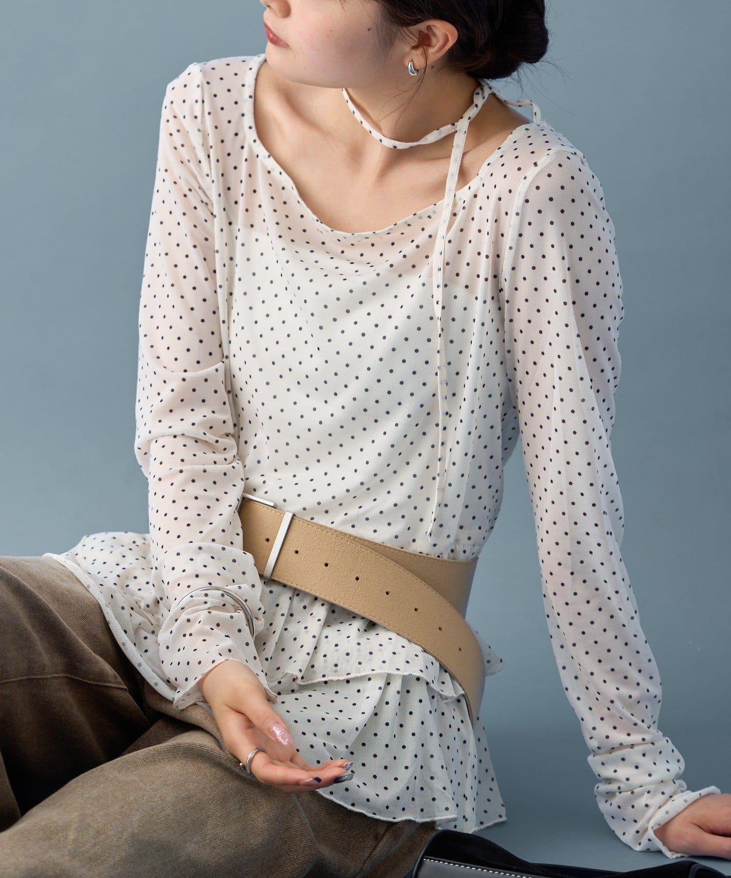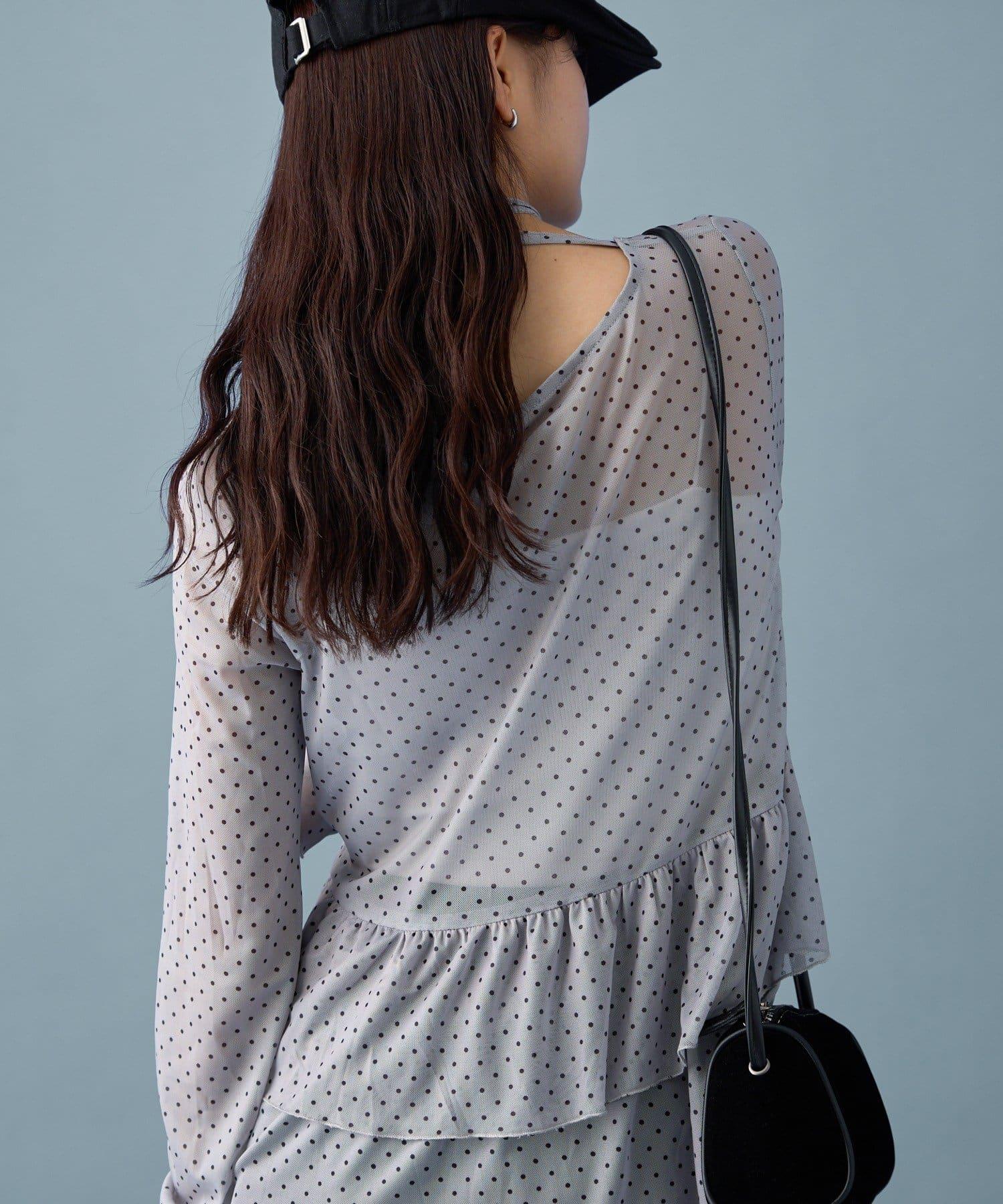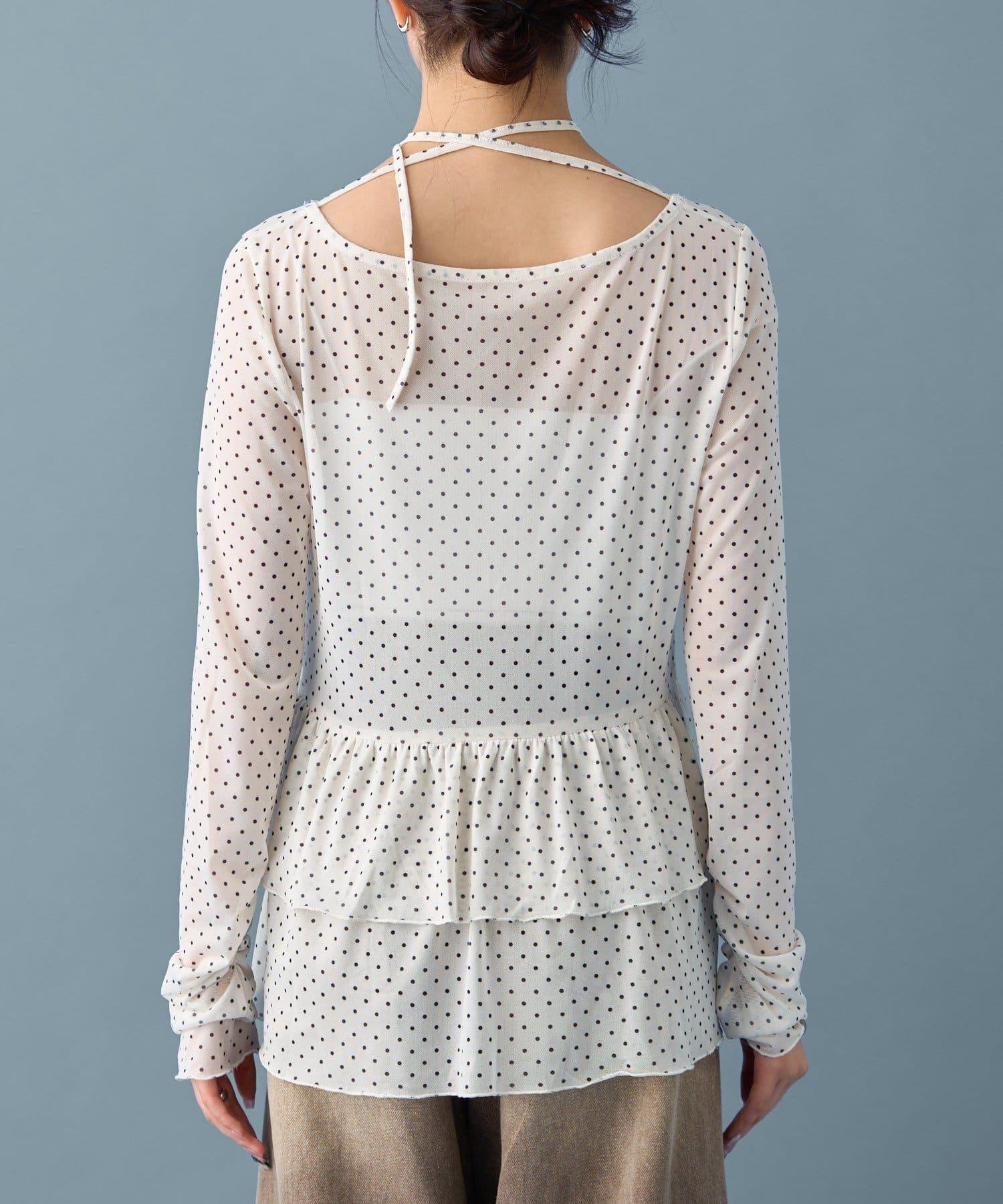 薄紗材質的透明感在點狀圖案的可愛中表現出女性的柔美。
