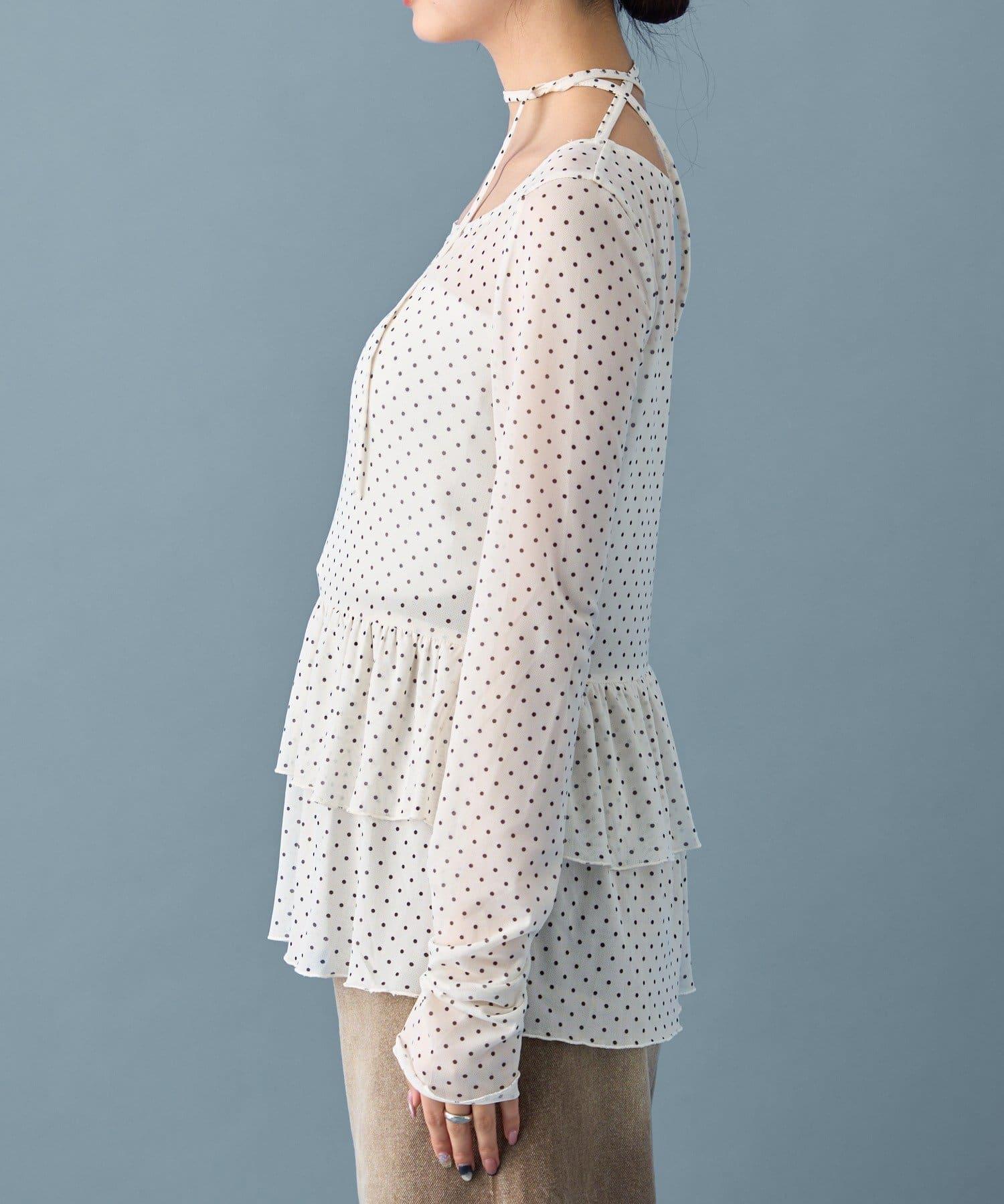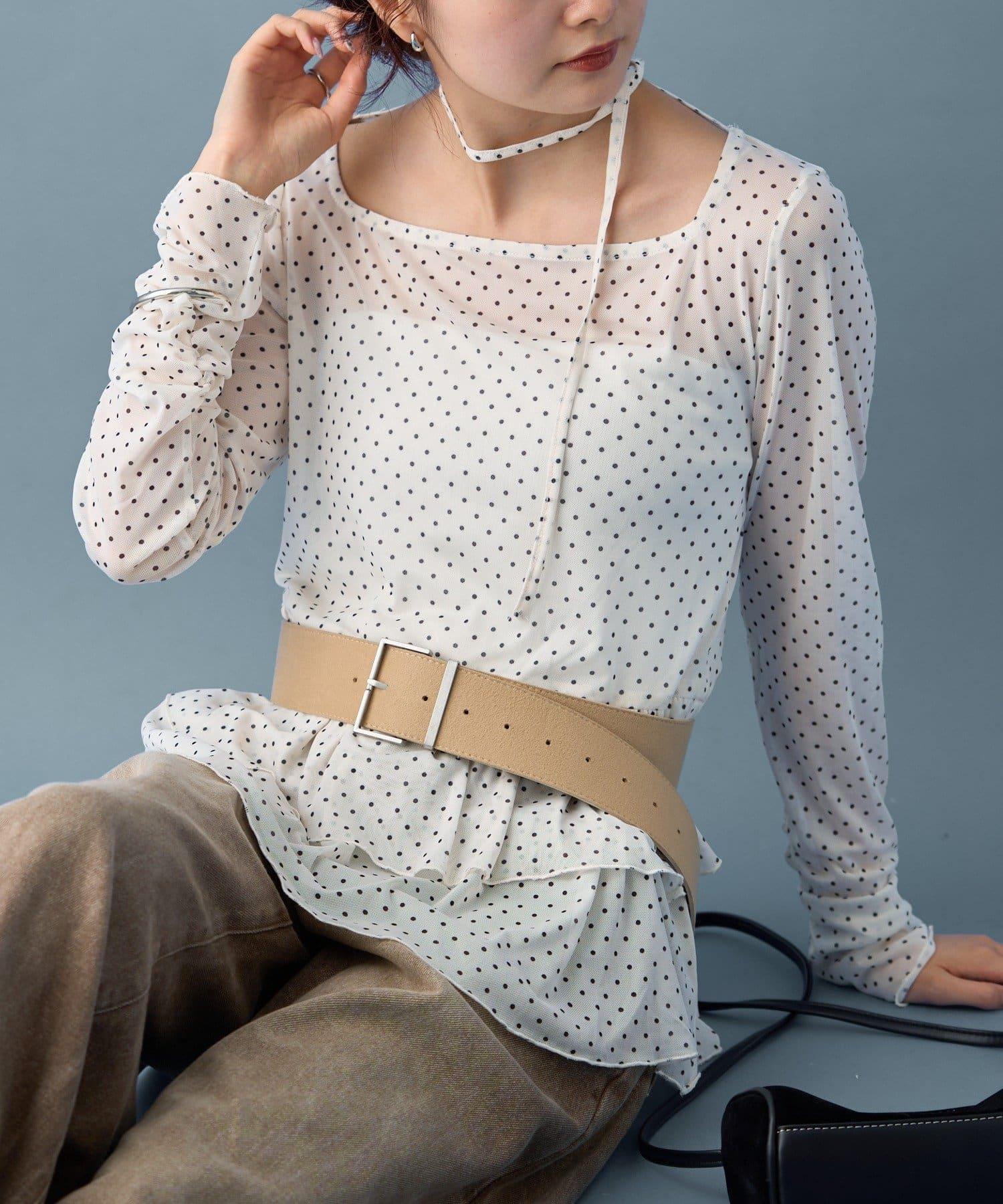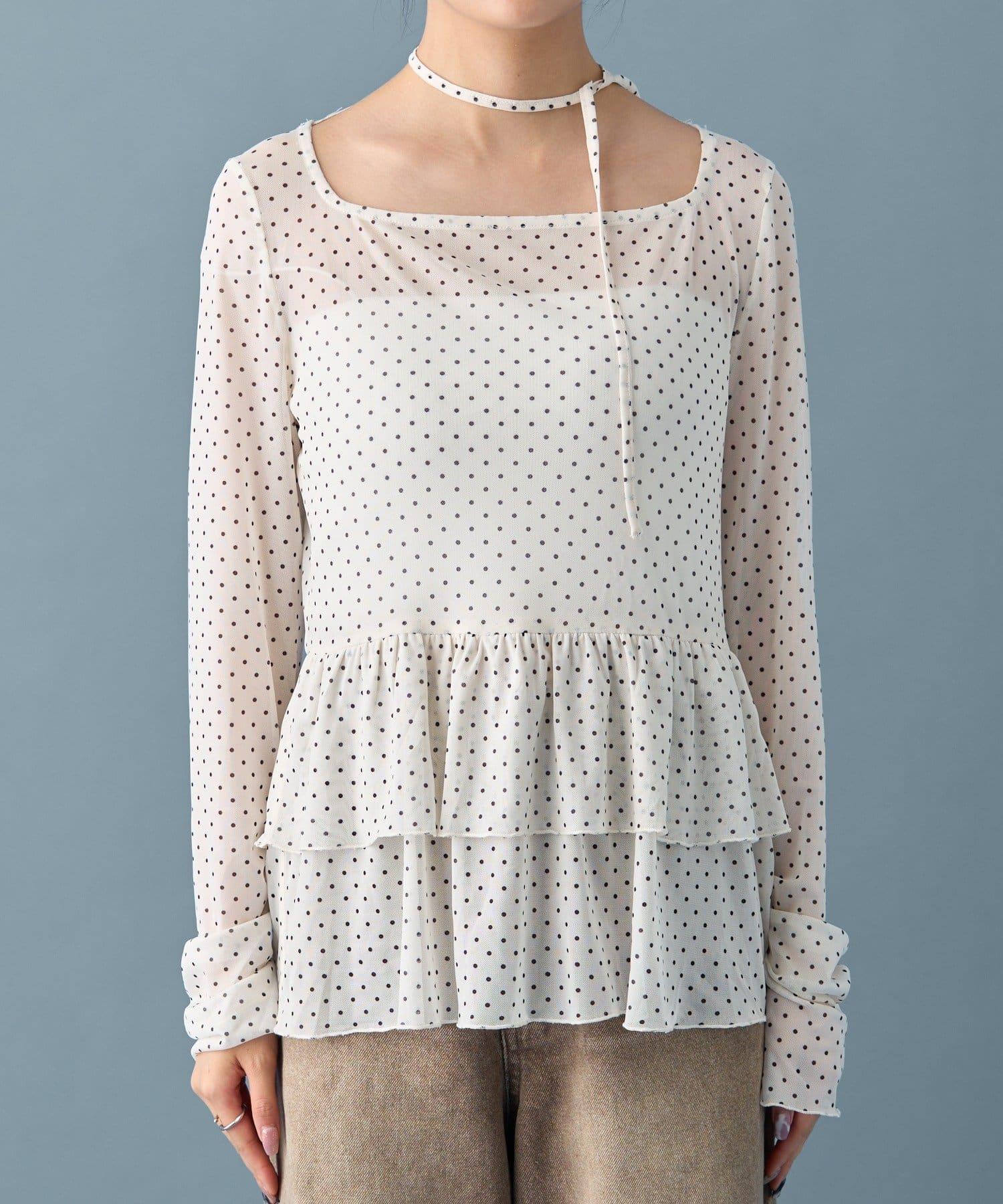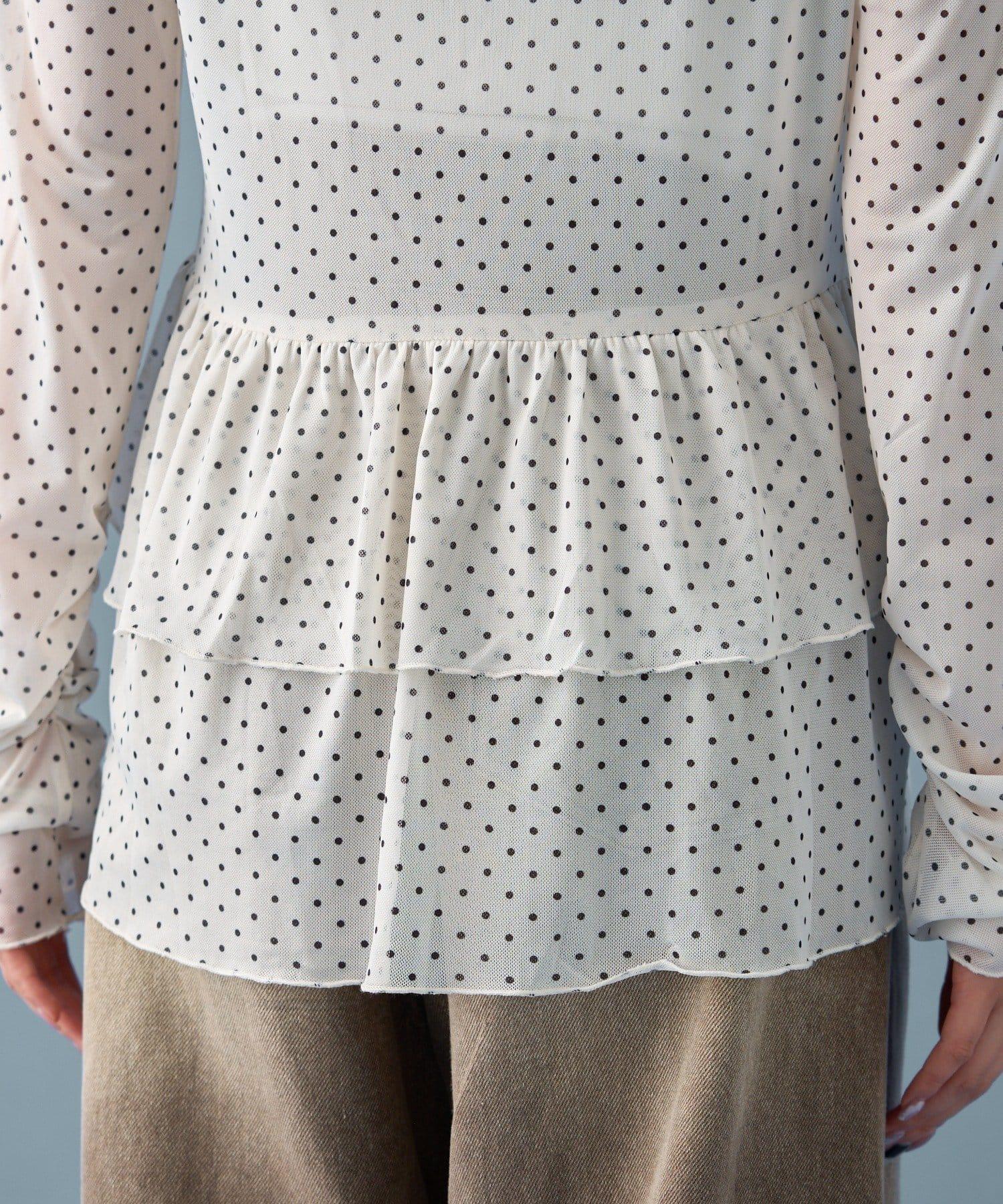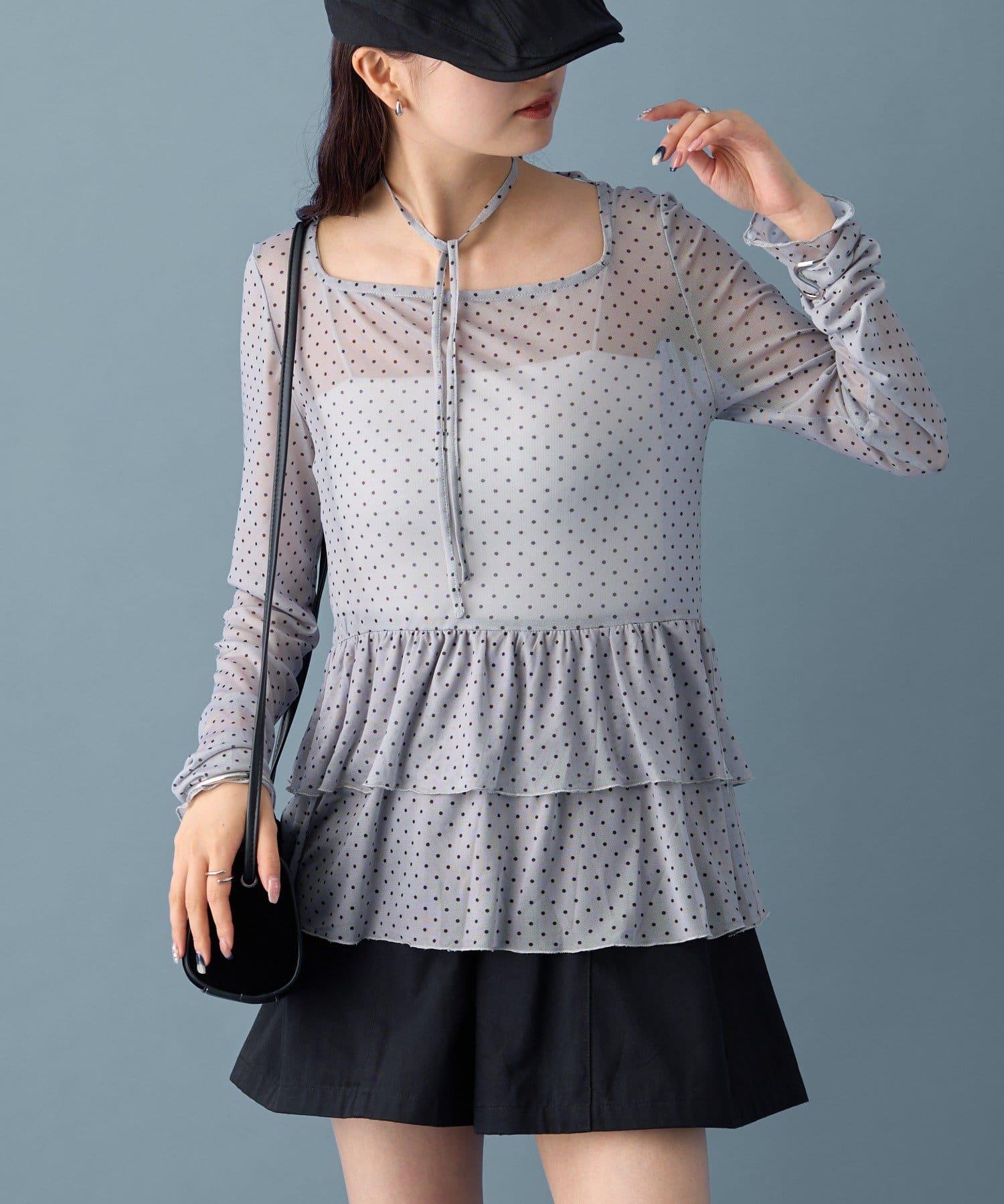 薄紗材質的透明感在點狀圖案的可愛中表現出女性的柔美。