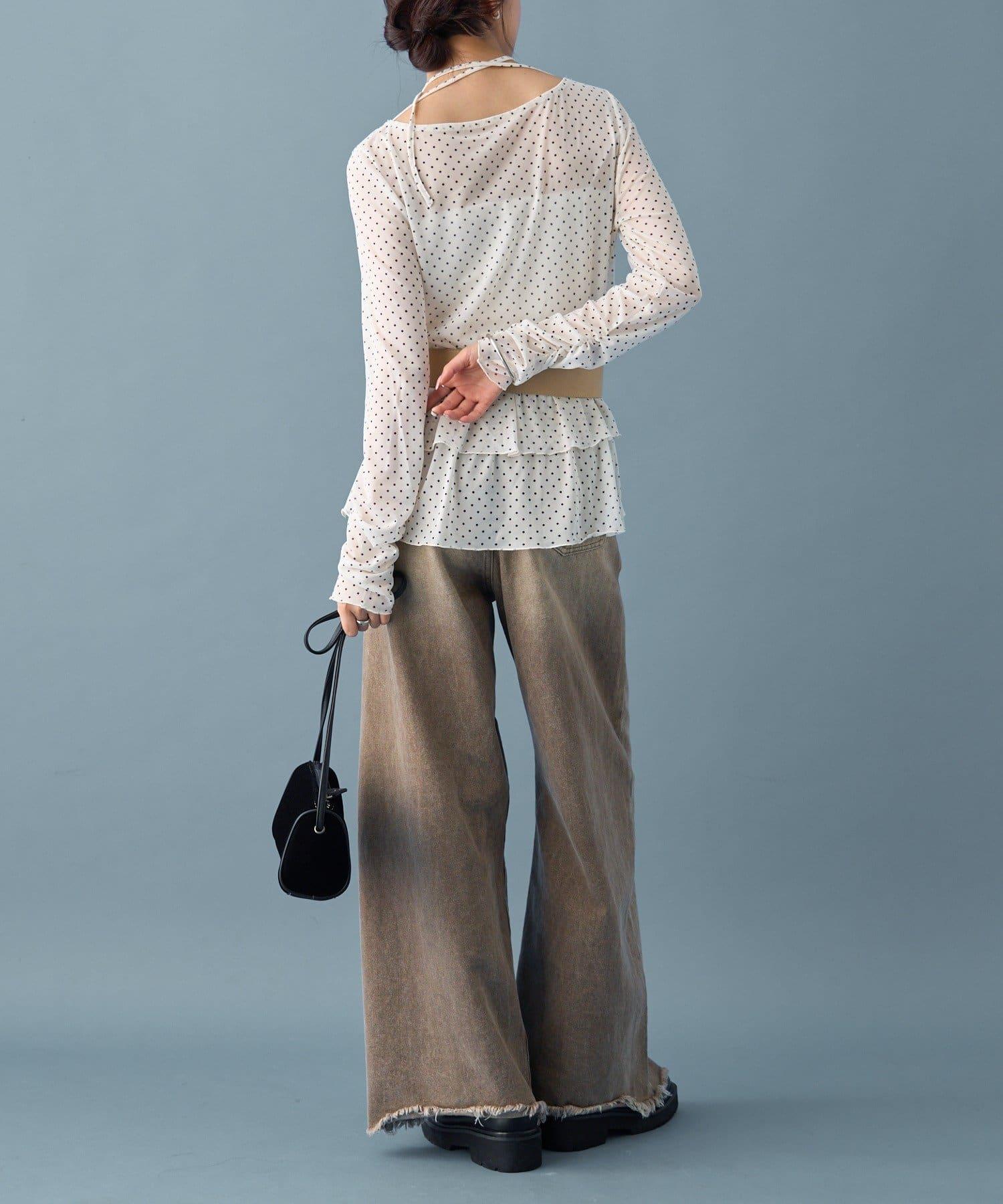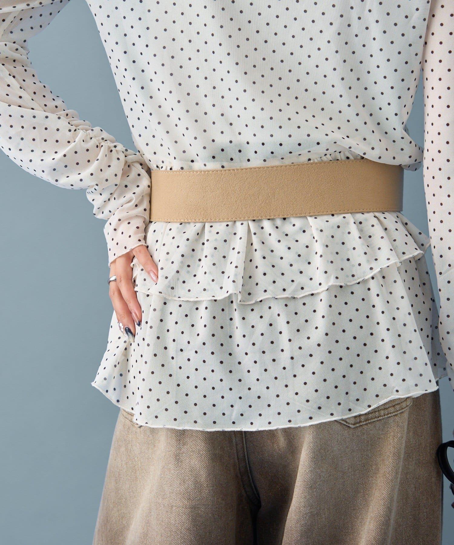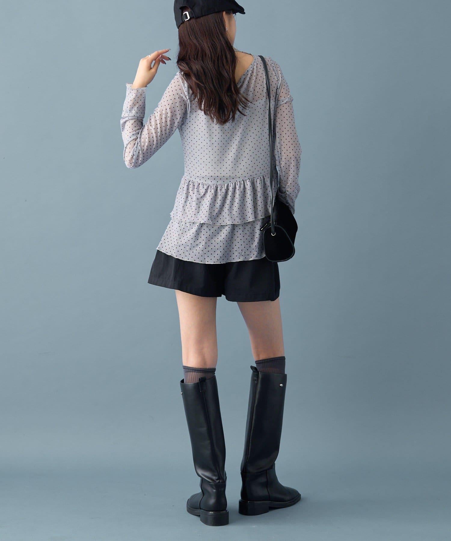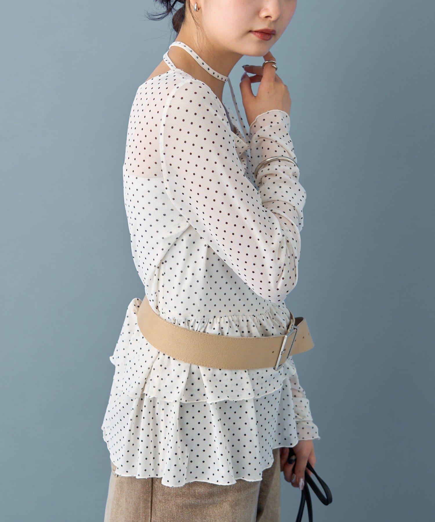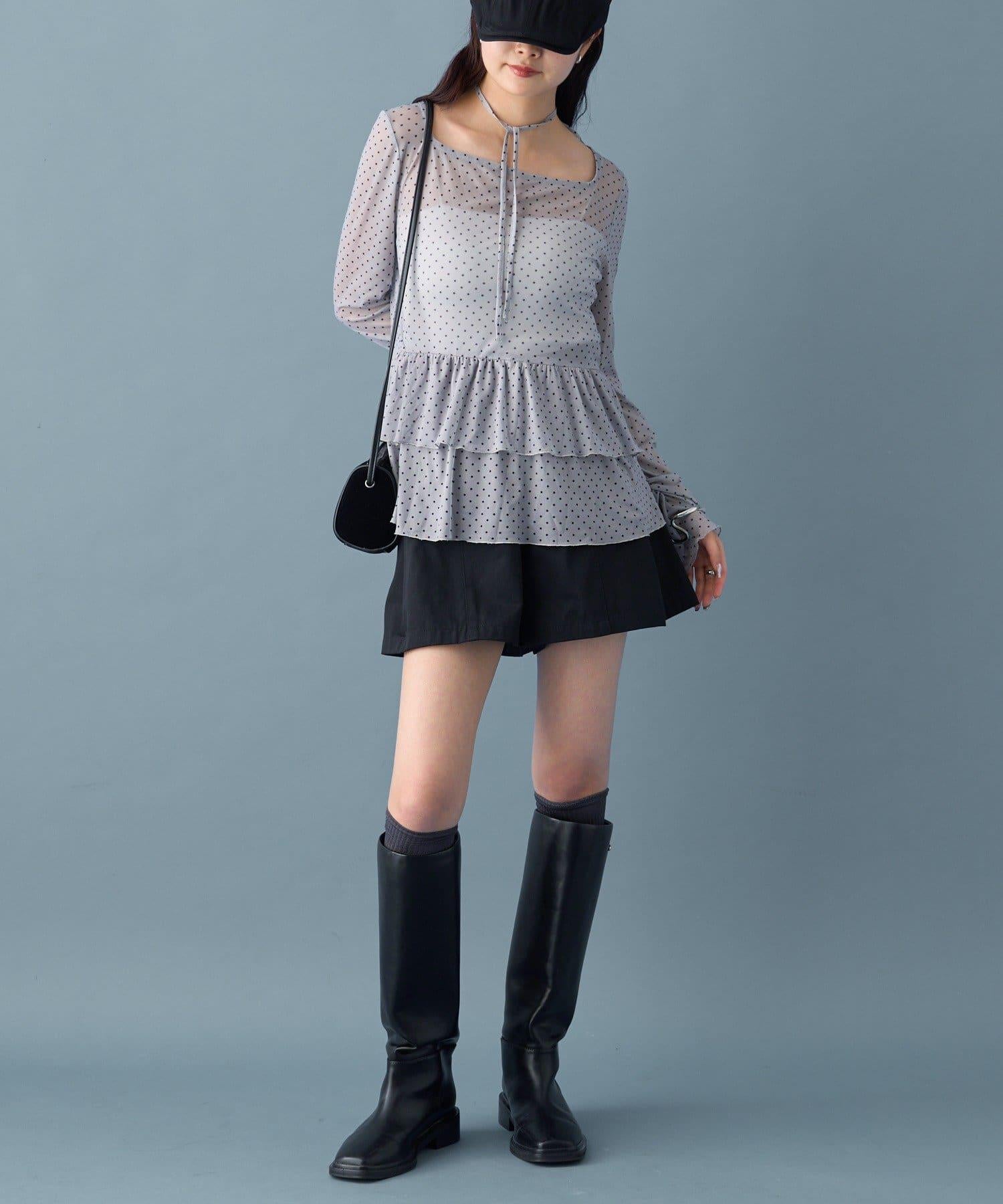 薄紗材質的透明感在點狀圖案的可愛中表現出女性的柔美。