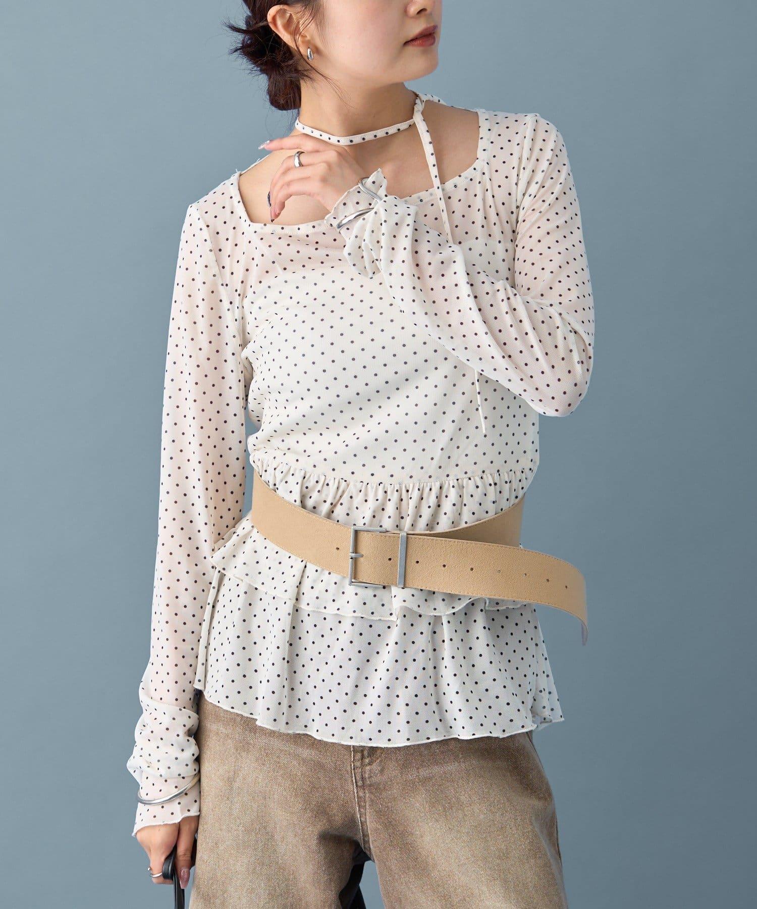 圓點層疊套頭衫,前襟有醒目的圓點圖案!