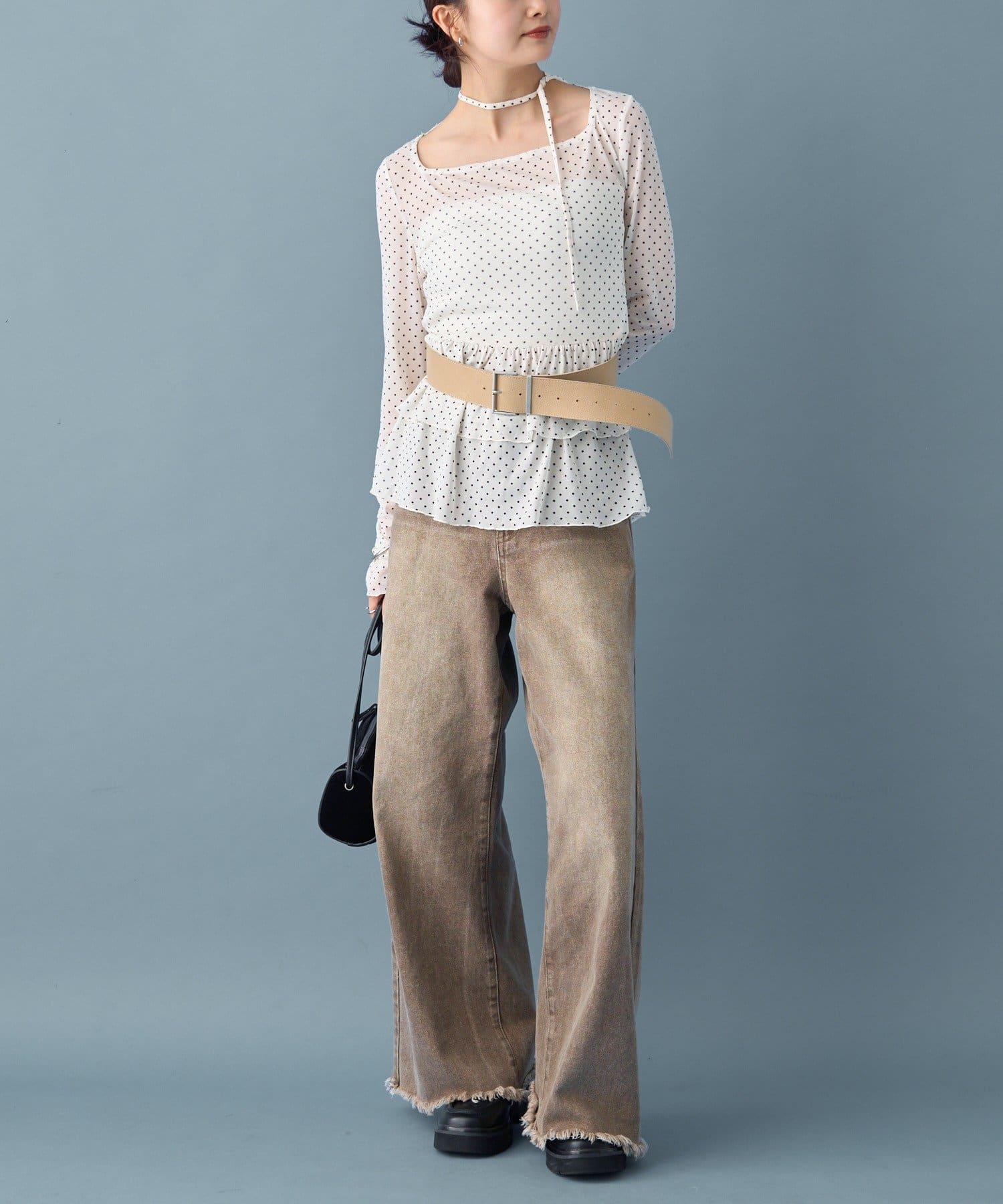層疊的下襬設計給人一種舒展可愛的感覺,因此建議下身採用簡潔明快的廓形。
