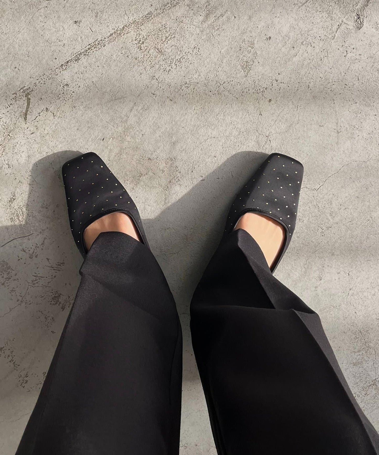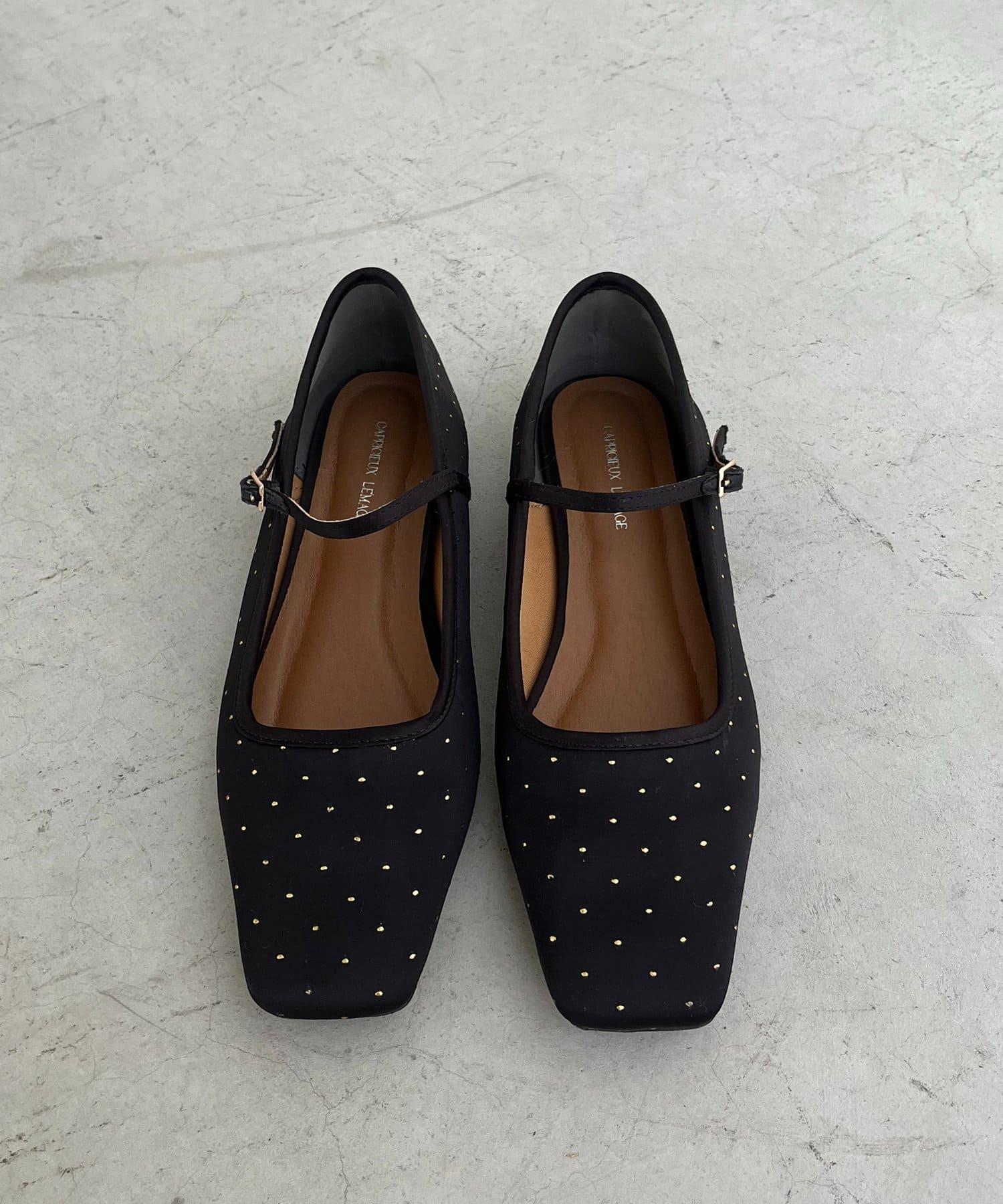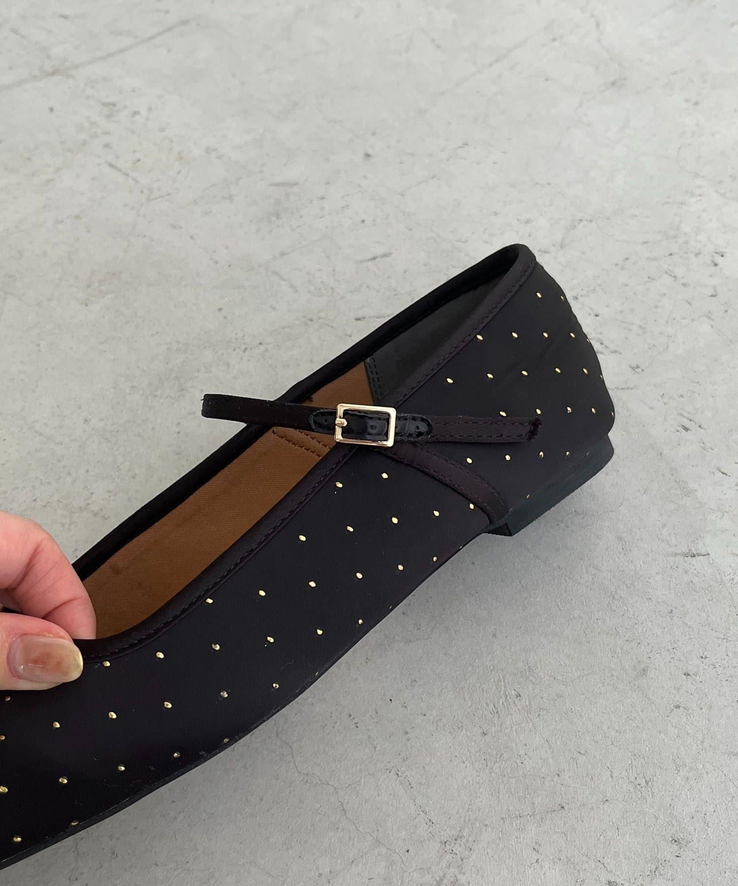 帶有金色圓點圖案的平底鞋增添了幾分優雅。