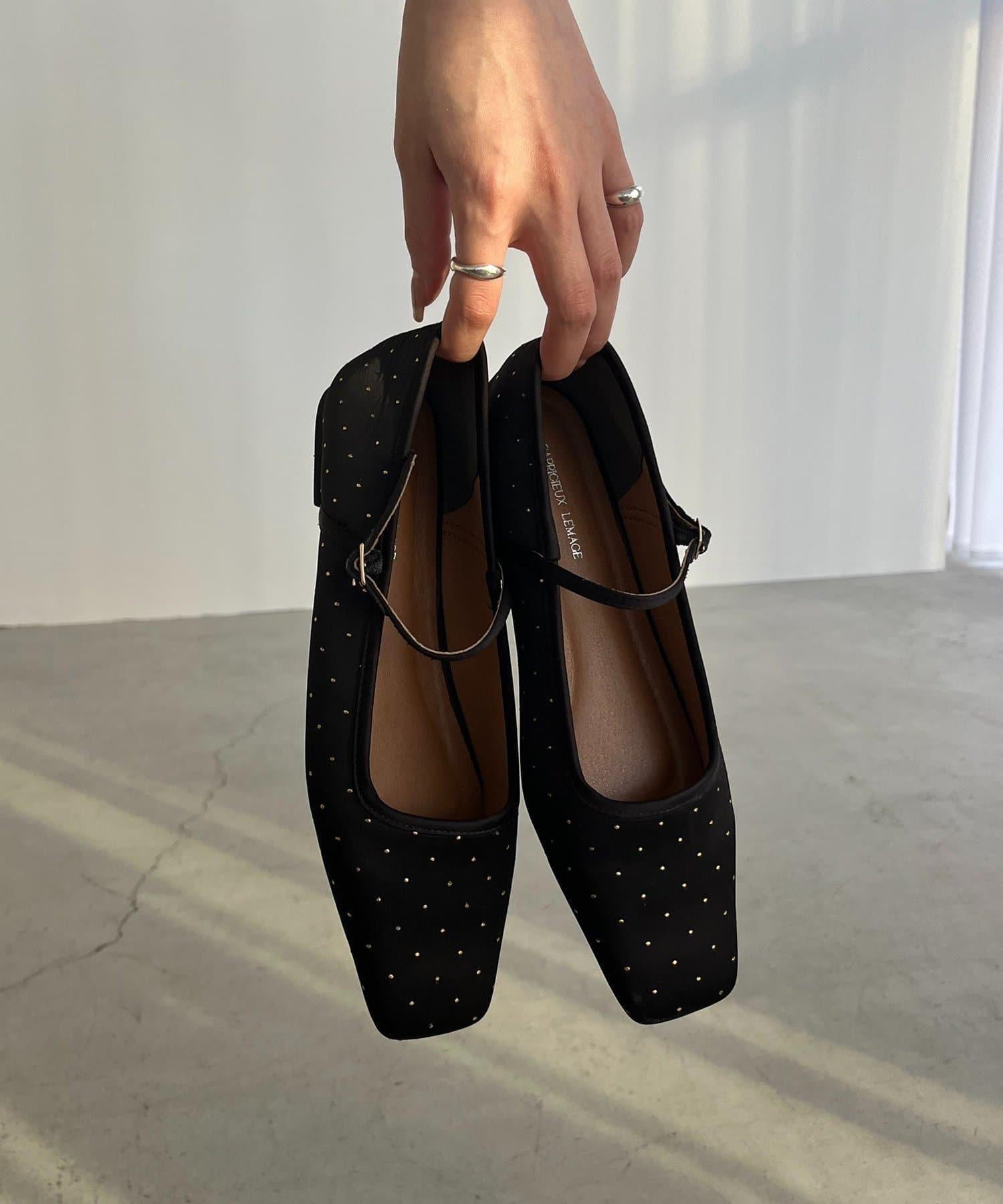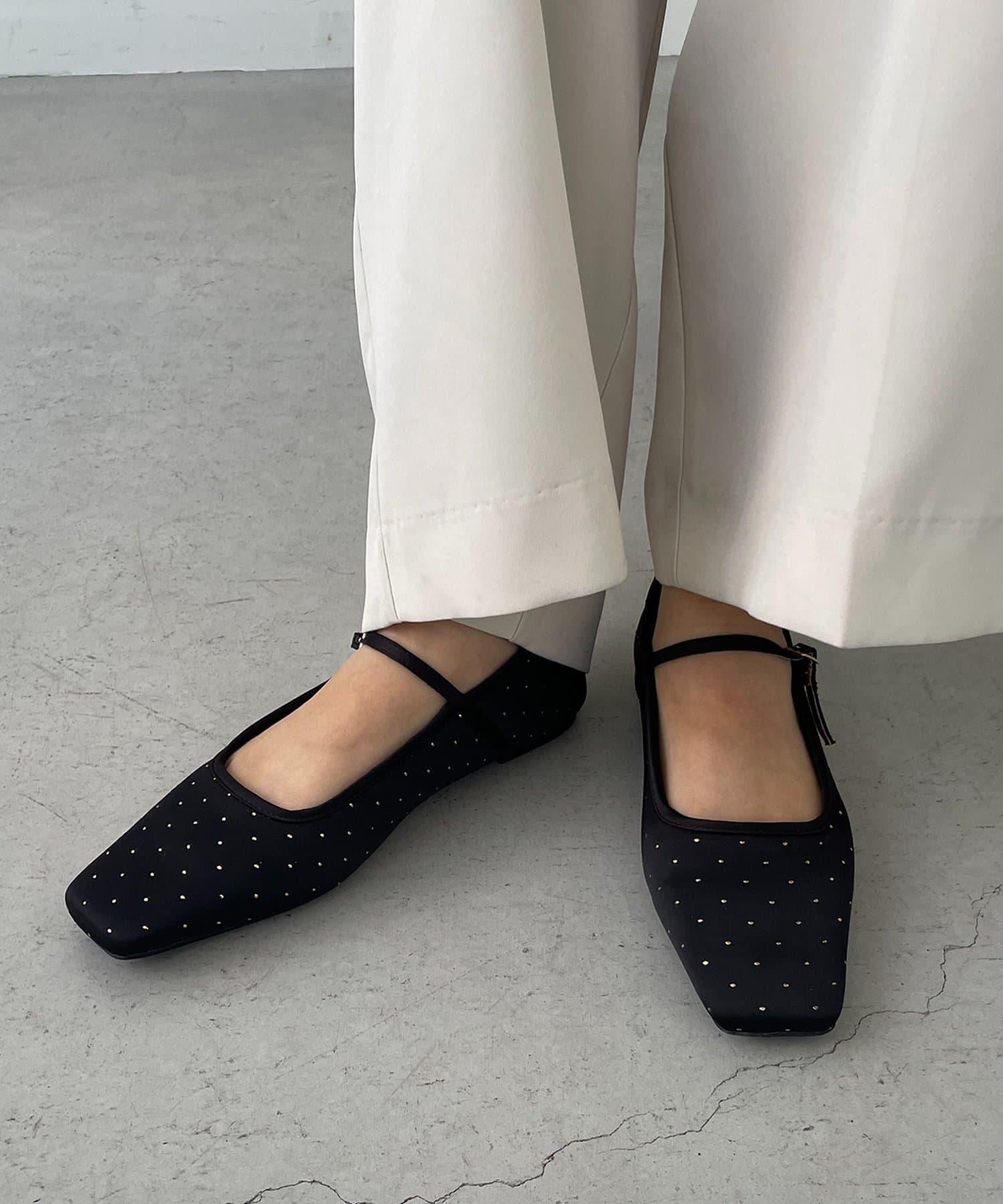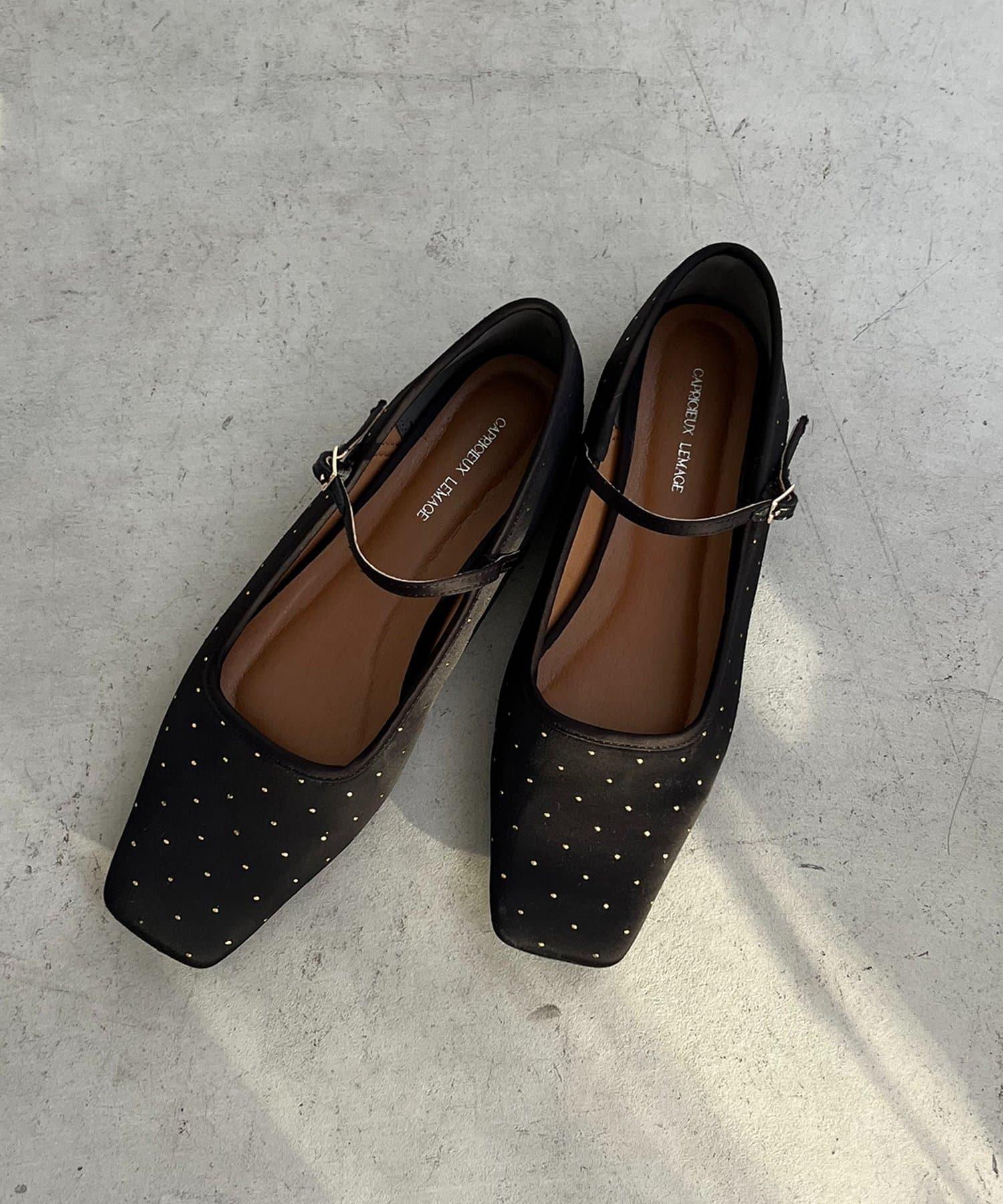 帶有金色圓點圖案的平底鞋增添了幾分優雅。