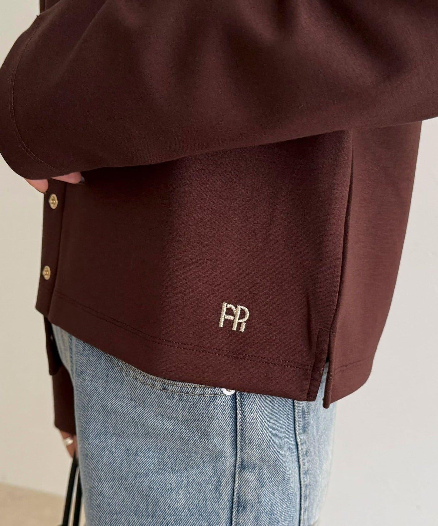 下襬處的 FR 刺繡為其增添了微妙的點睛之筆。