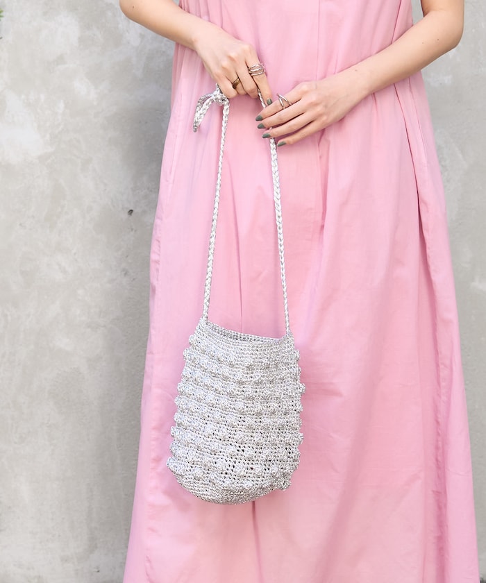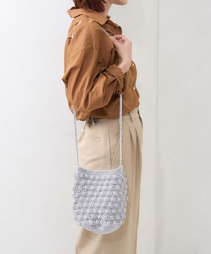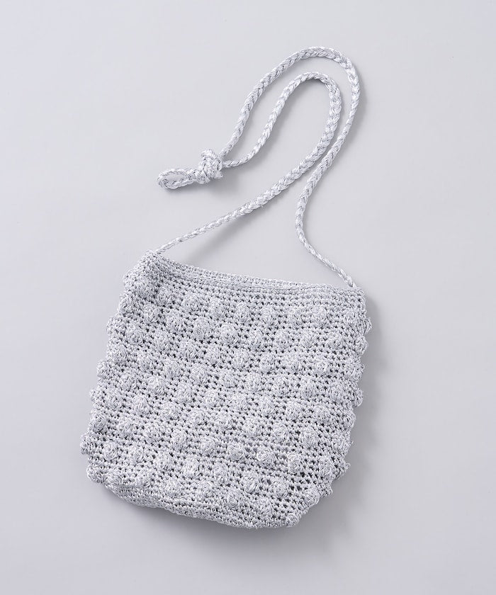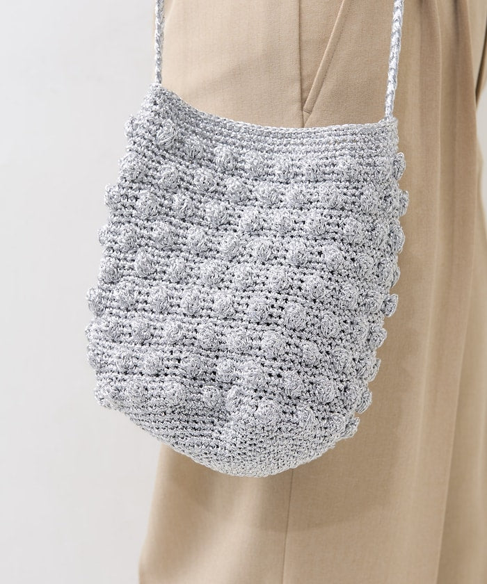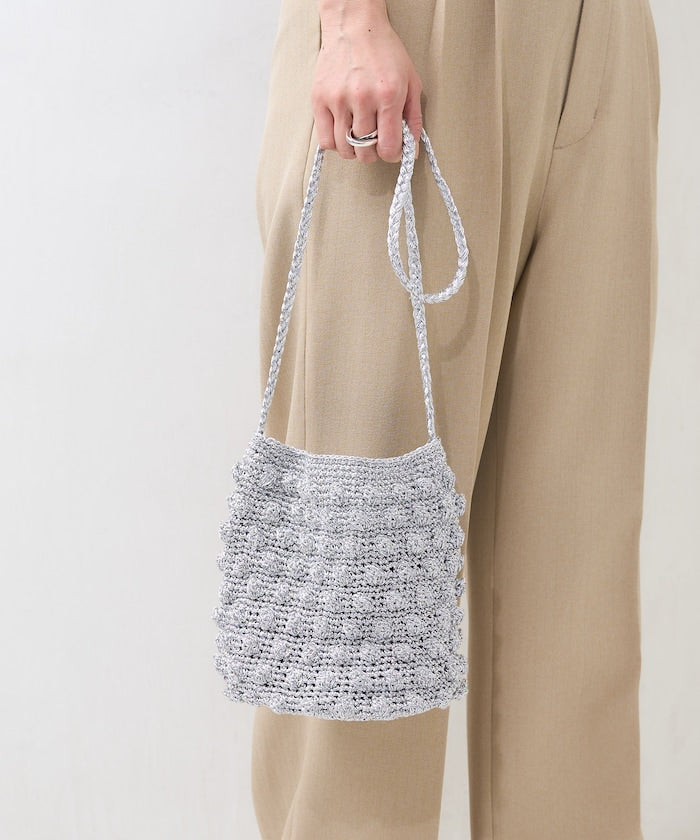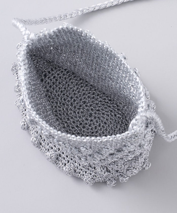 ● 用閃亮的紗線製成的針織包。