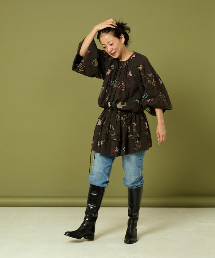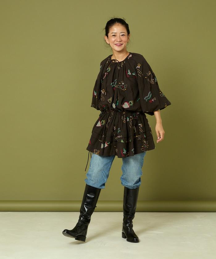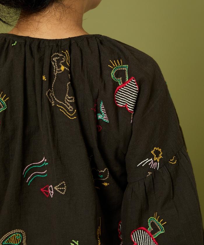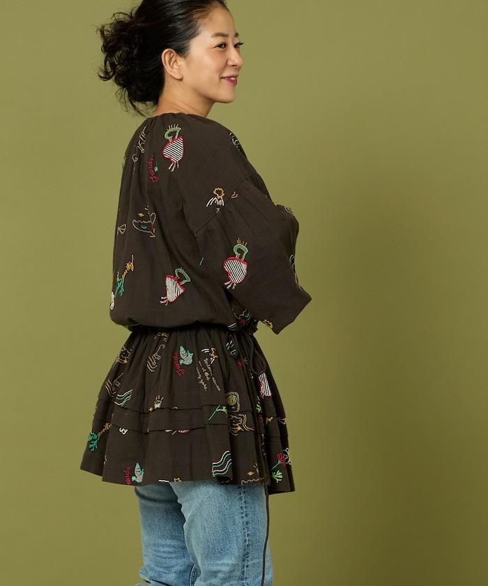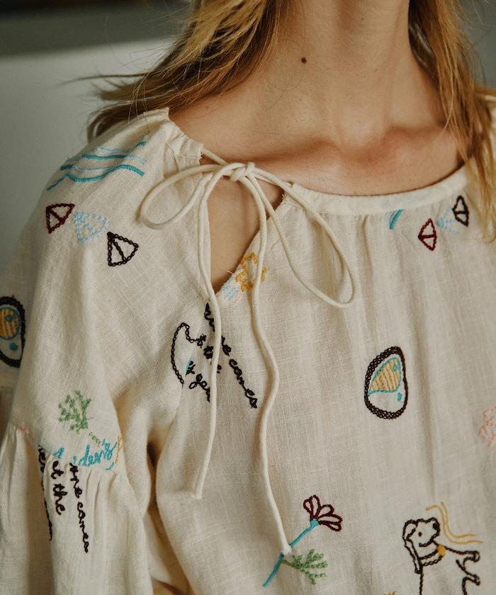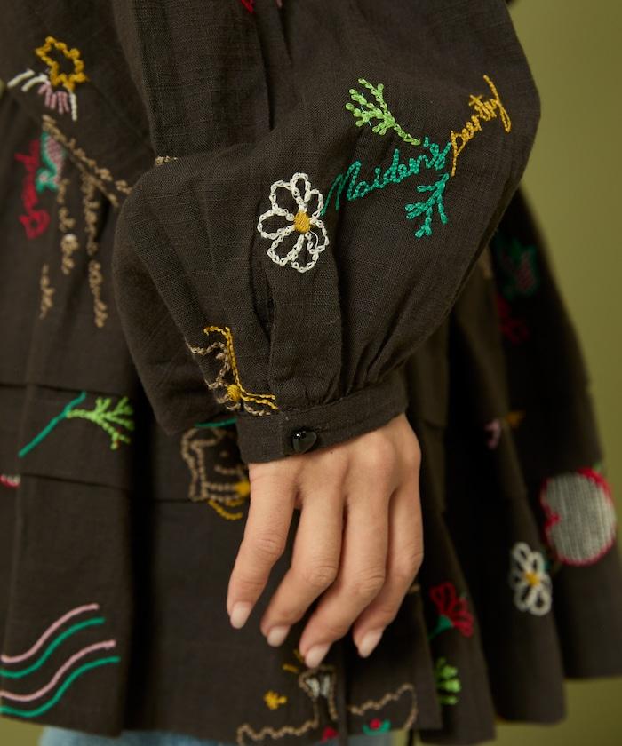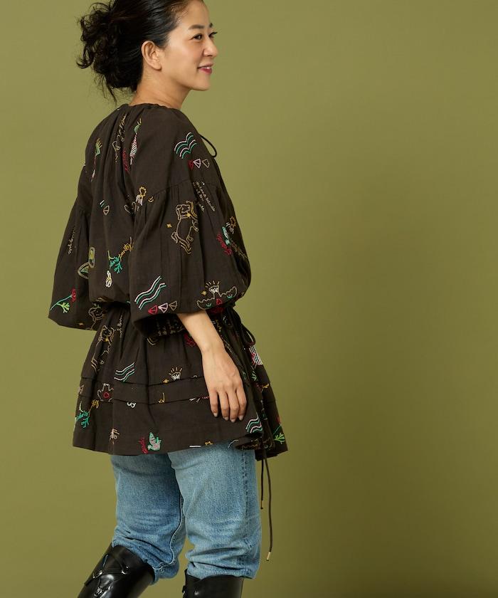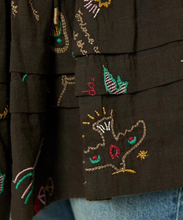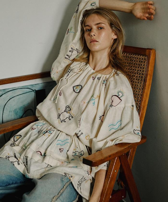 寬鬆的圖案刺繡如同手繪線描,營造出粗獷的氛圍。