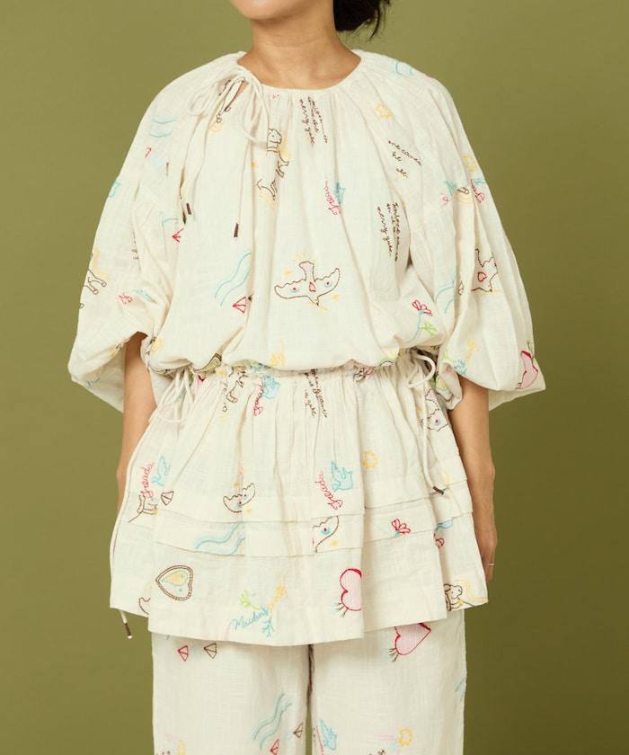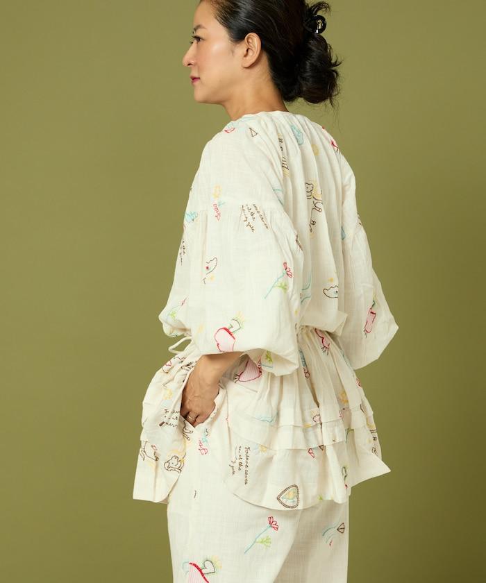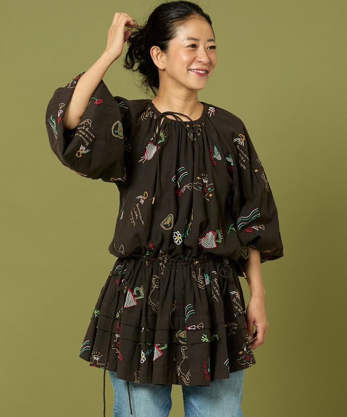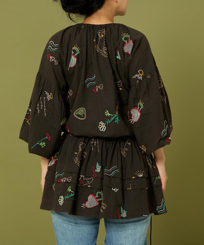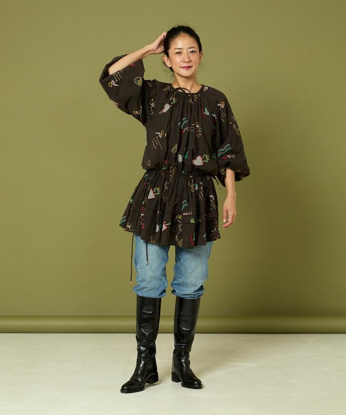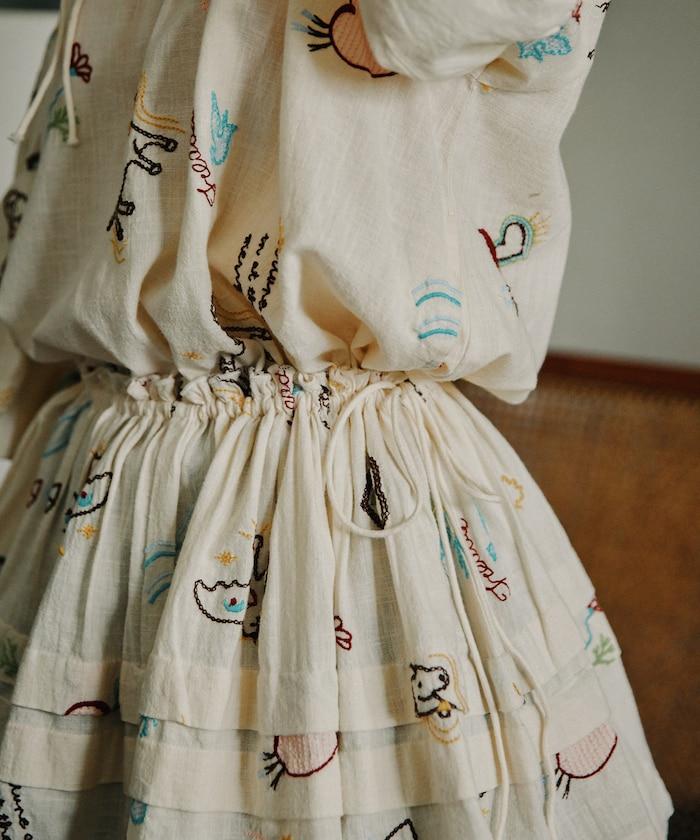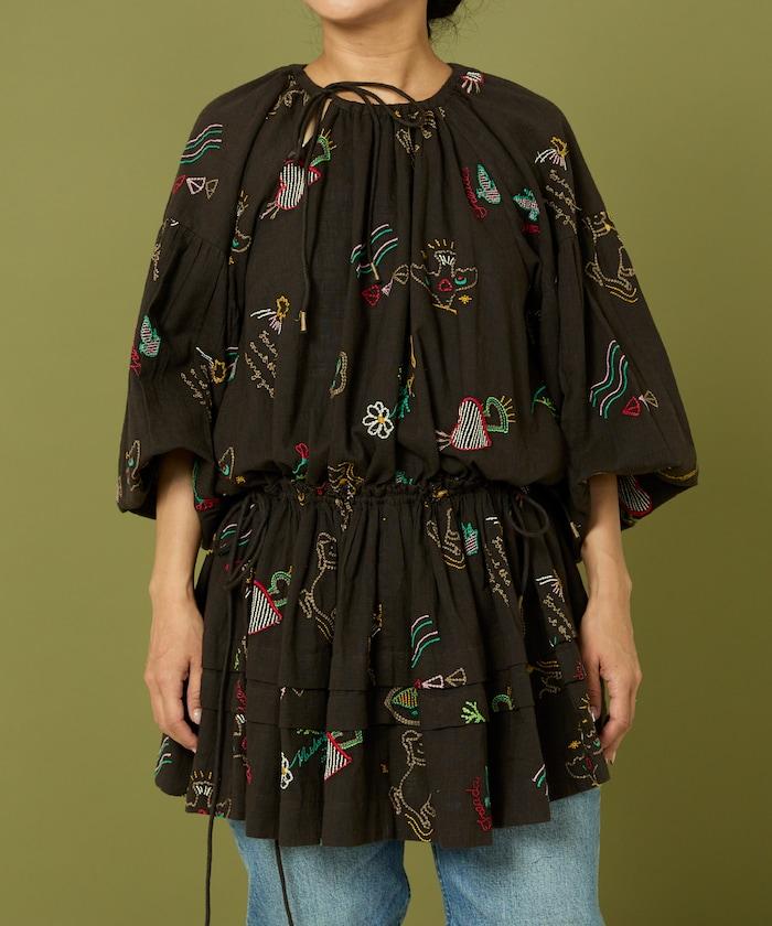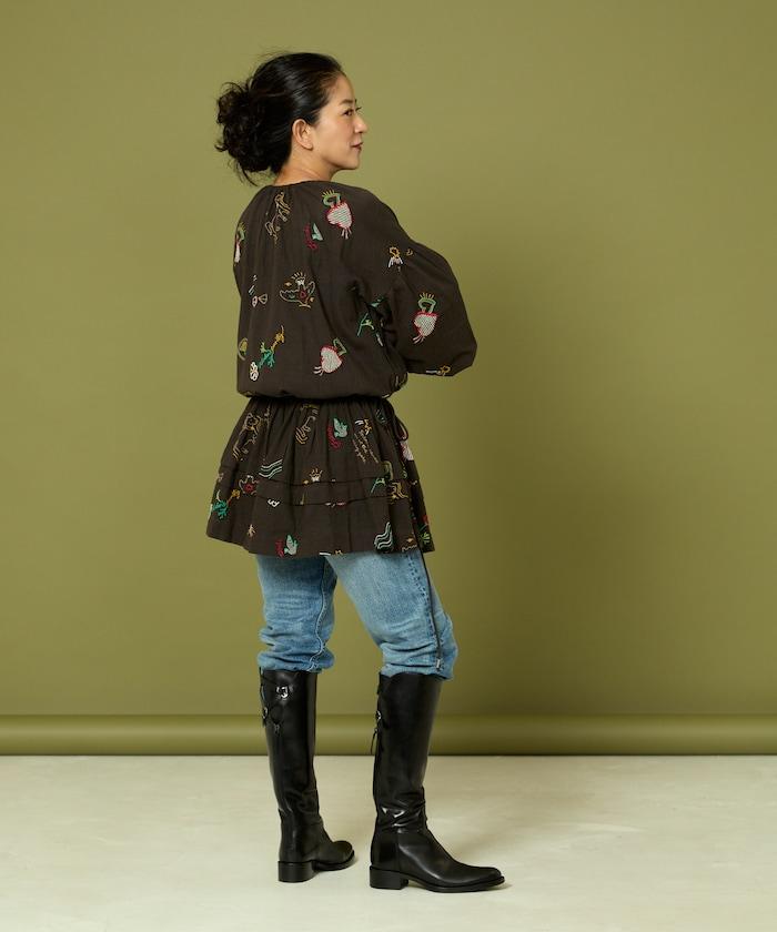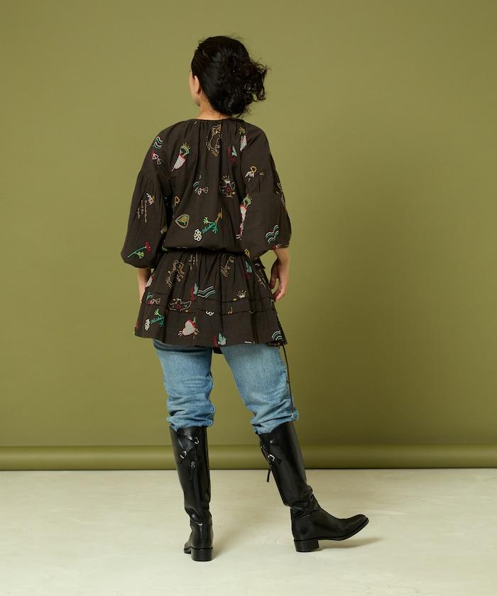 寬鬆的圖案刺繡如同手繪線描,營造出粗獷的氛圍。