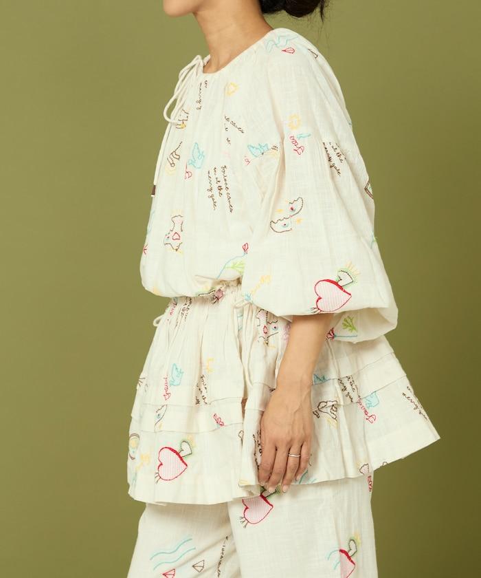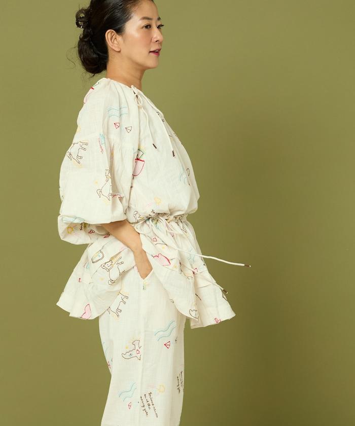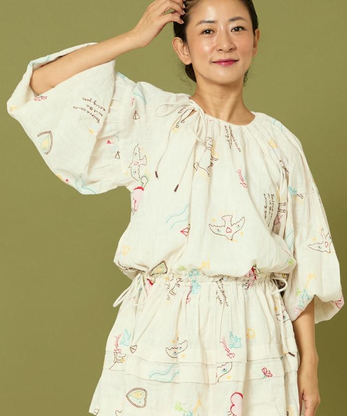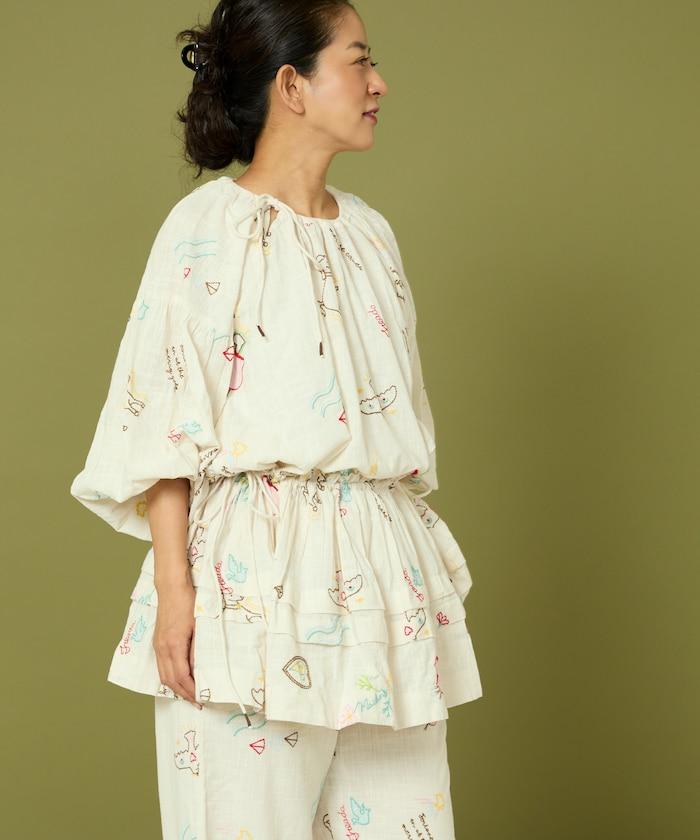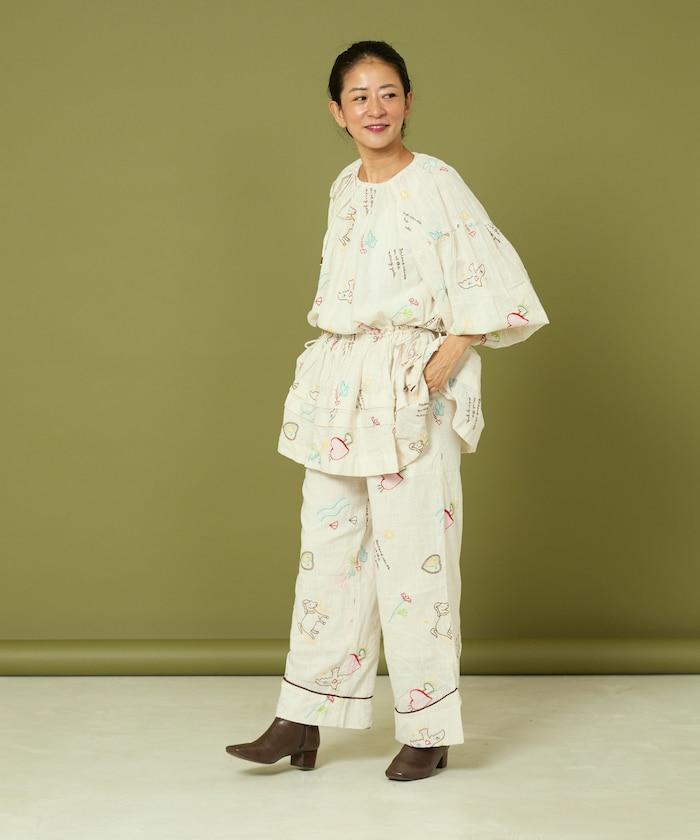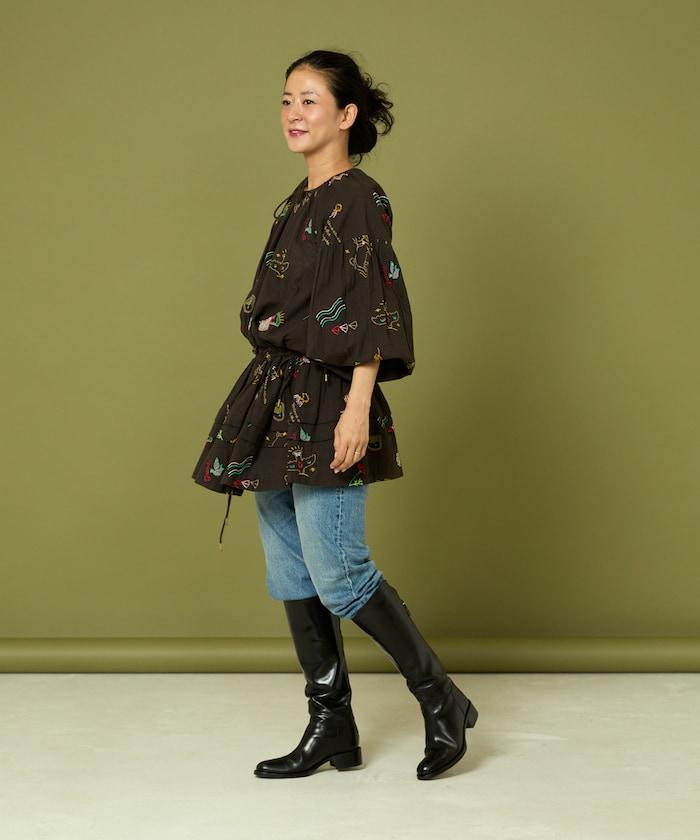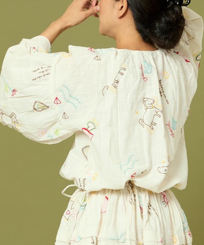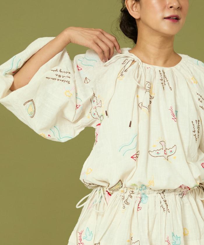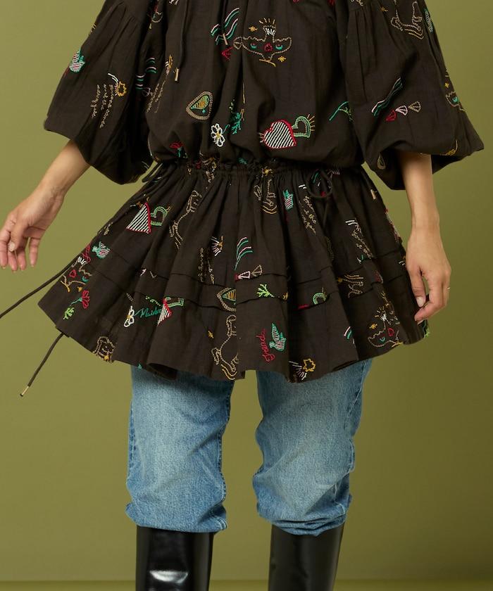 寬鬆的圖案刺繡如同手繪線描,營造出粗獷的氛圍。