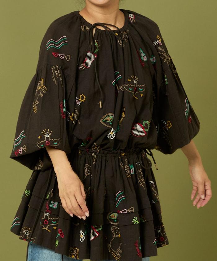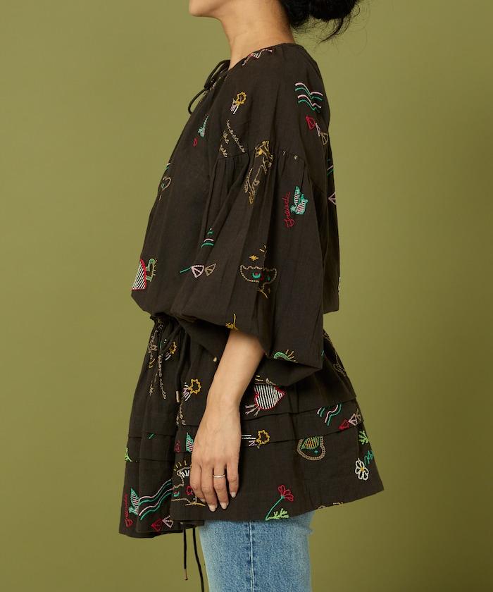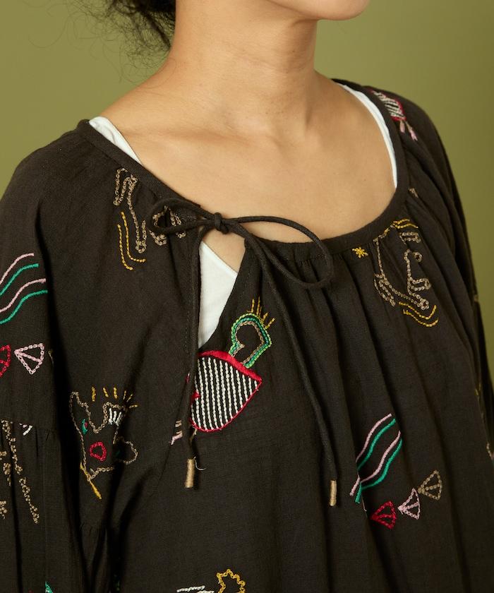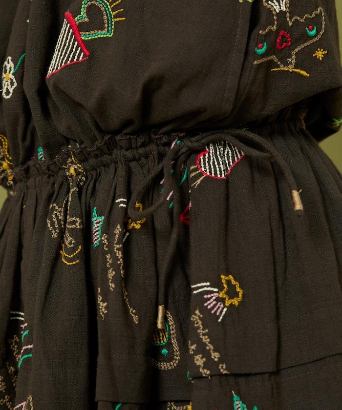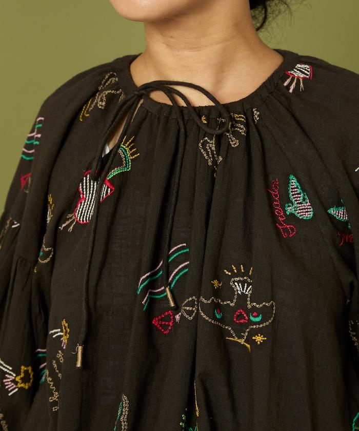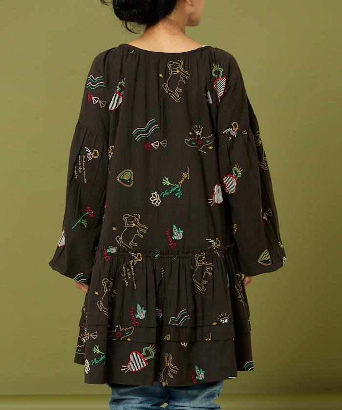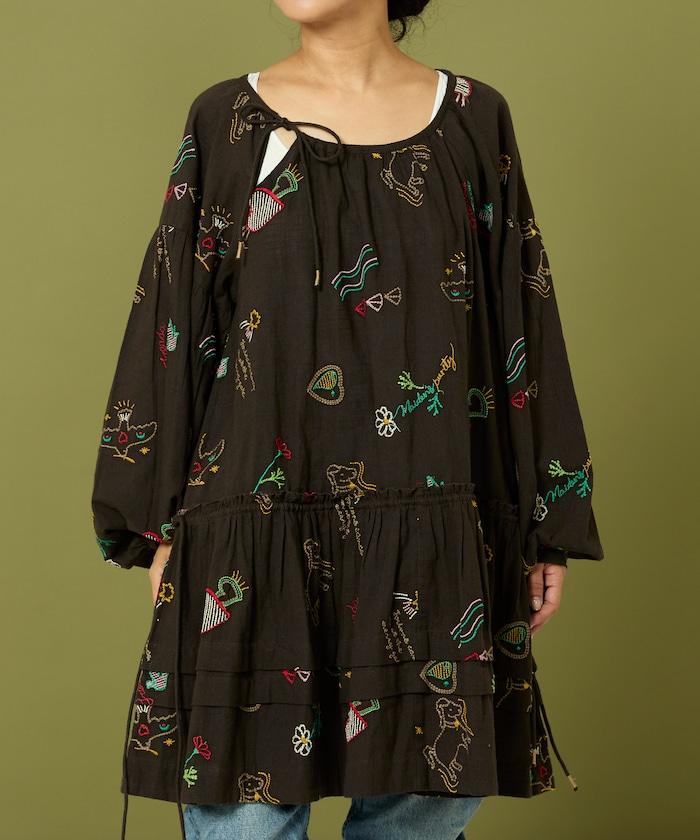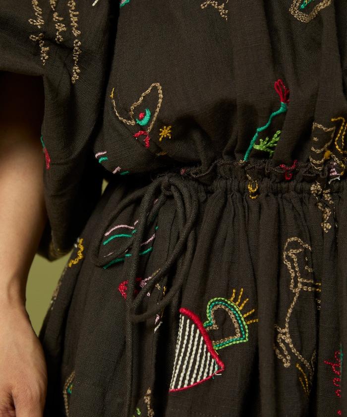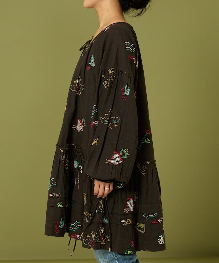 全身刺繡圖案的迷你連衣裙,印度製造。