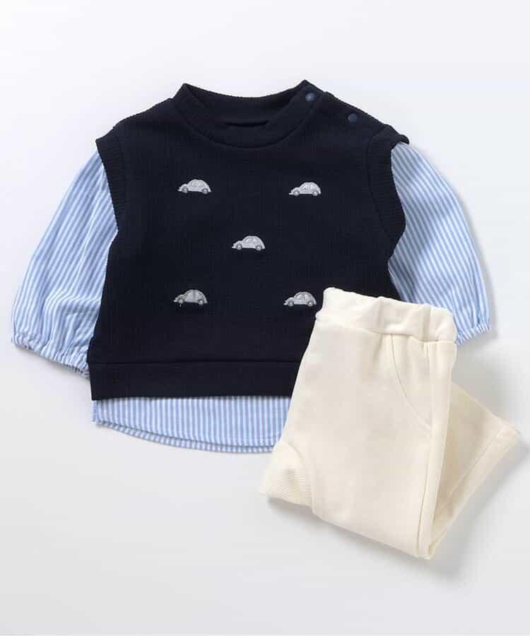 apres les cours 上衣和褲子的 "圖案刺繡馬甲層疊設置 "設計溫和、細緻、自然。也是嬰兒禮物和嬰兒洗禮禮物中的明星。