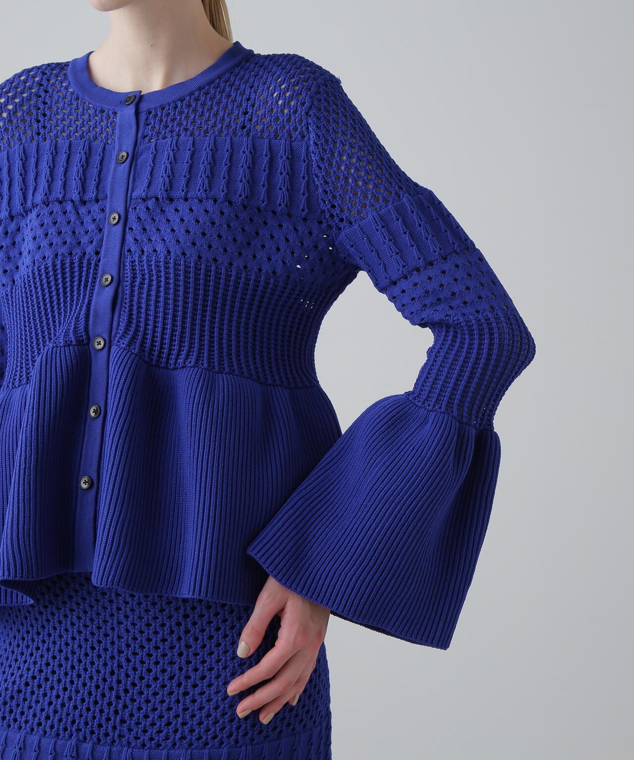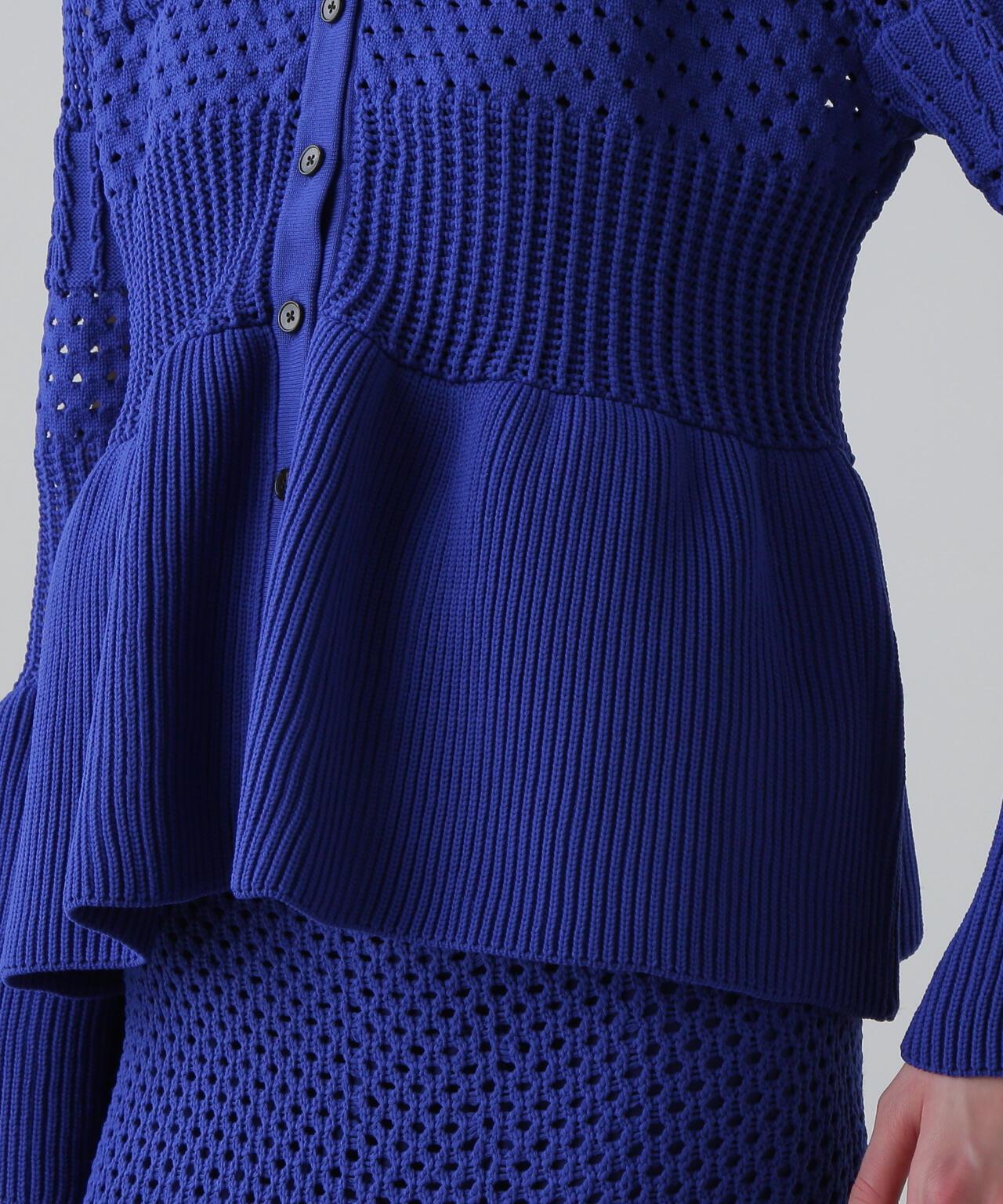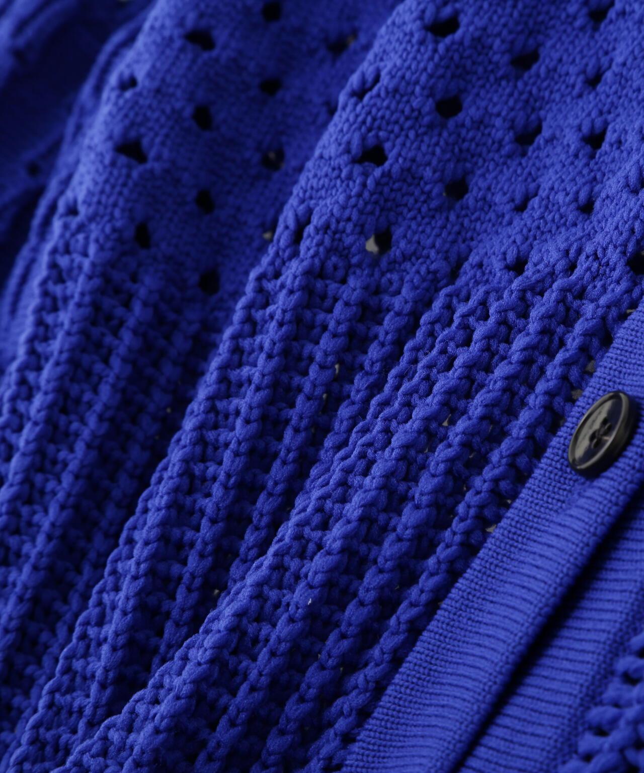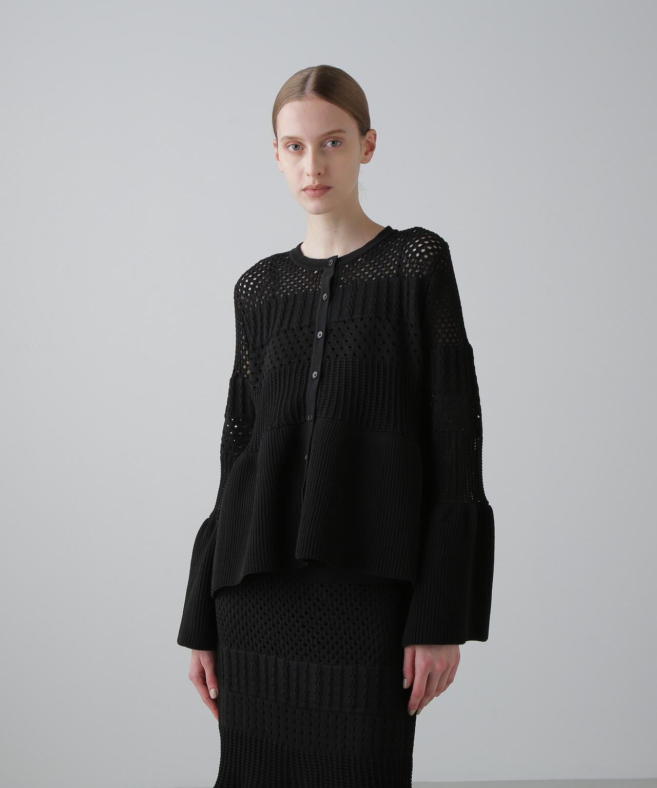 引人注目的波點設計針織開衫由 100%滌綸輕紗製成。這款開衫融合了多種針織圖案,並有許多特色孔眼。蓬蓬裙設計是其一大特色,從腰部附近開始,以蓬蓬裙收尾。蓬鬆且高彈性的聚酯紗線。