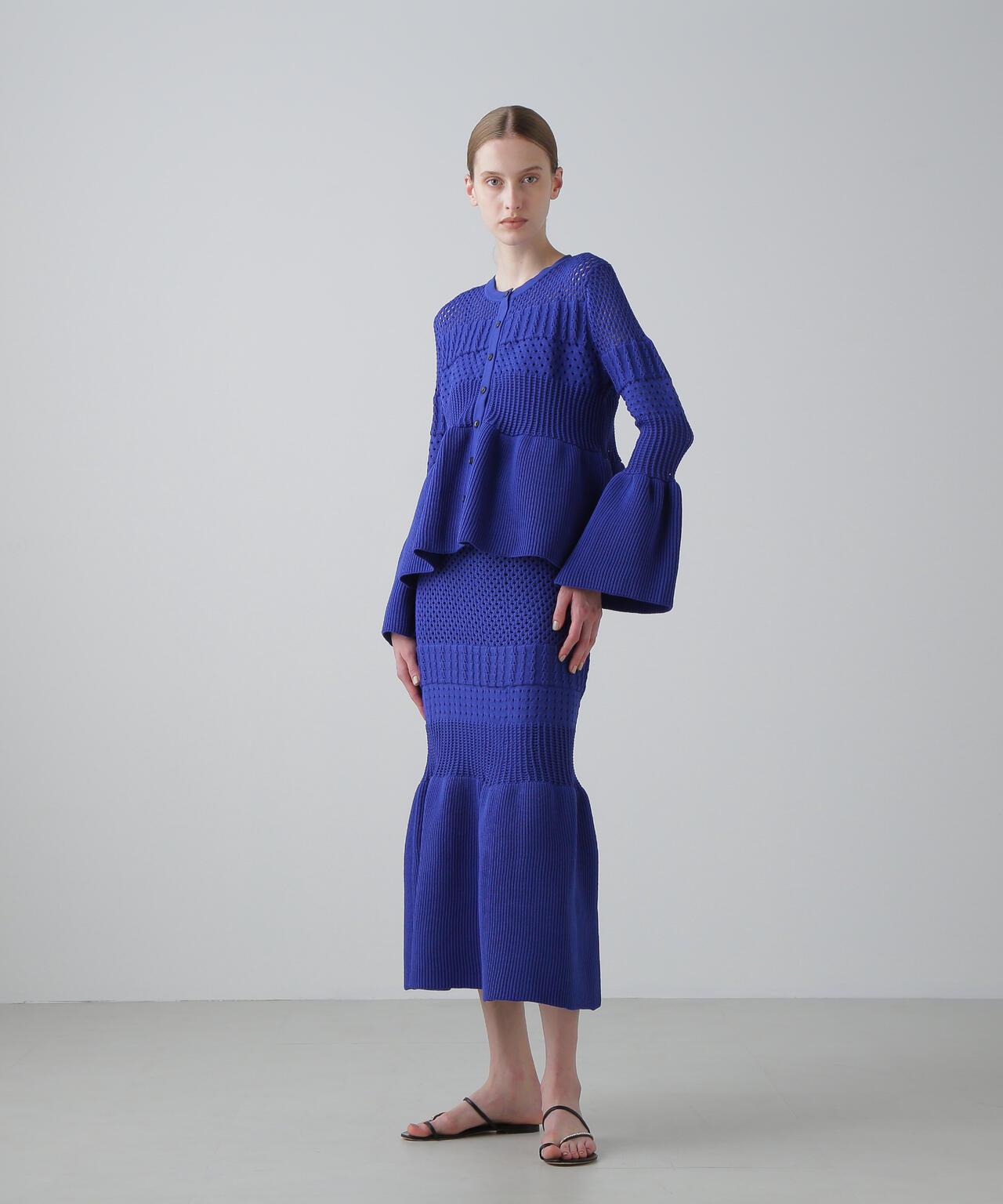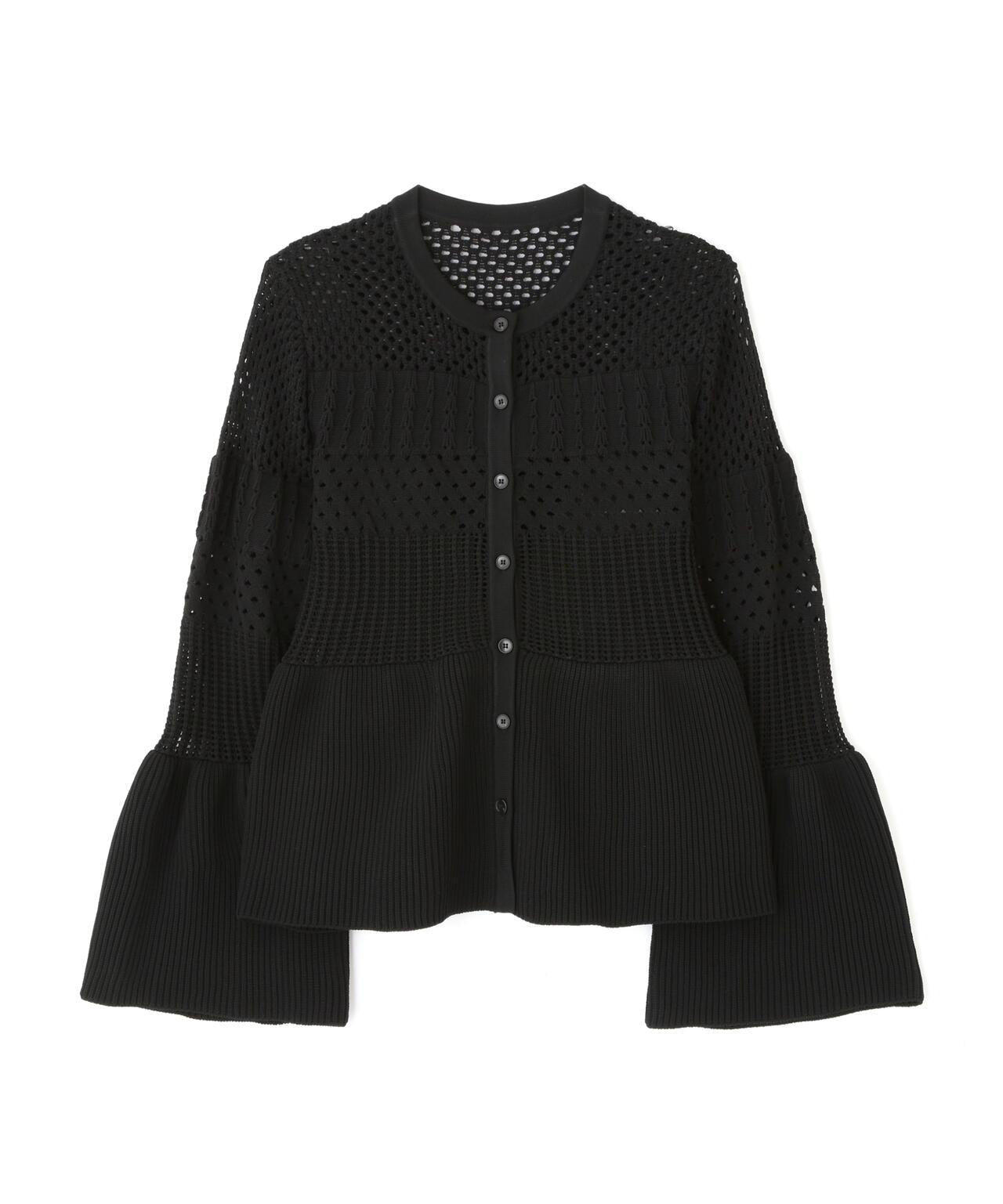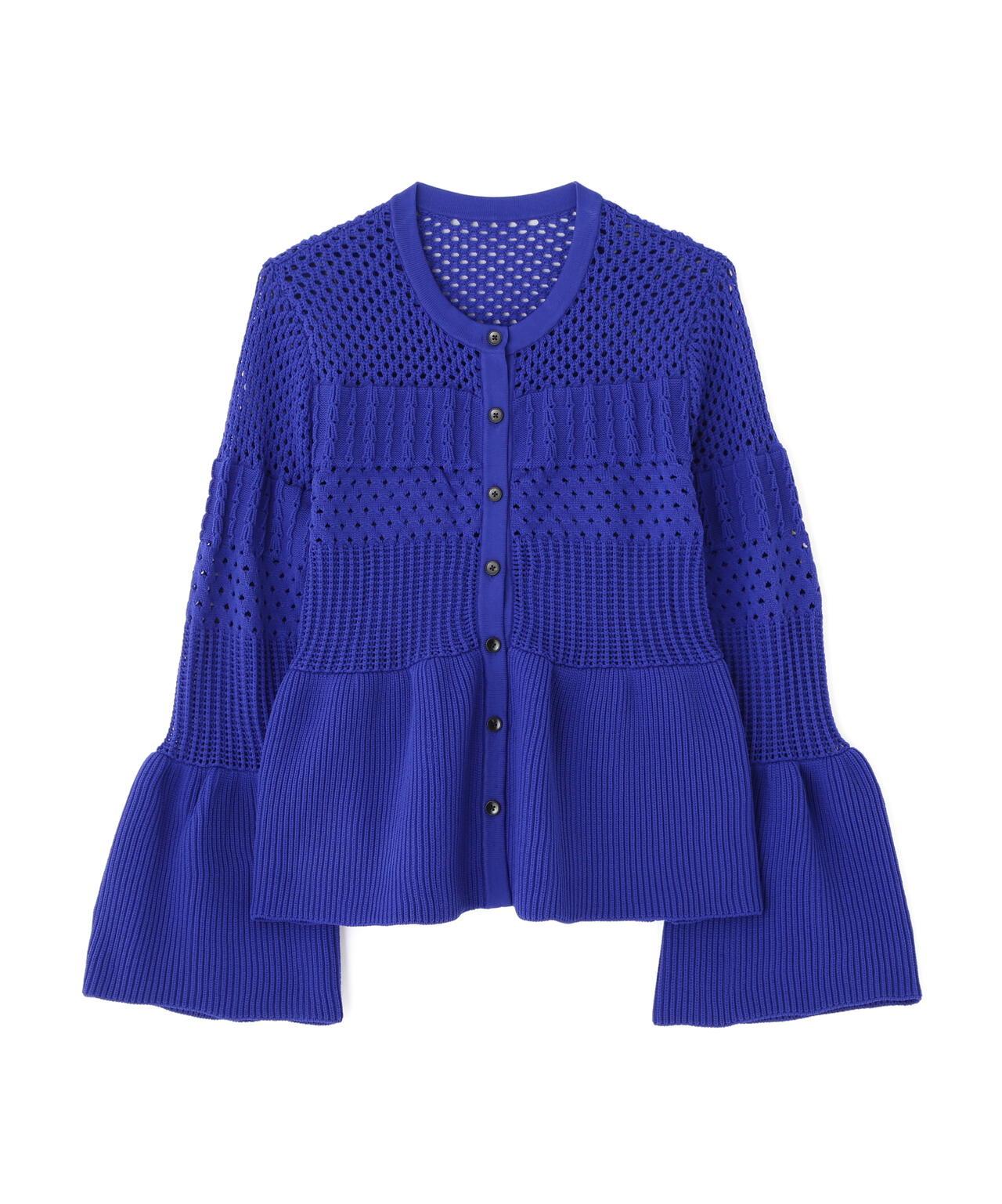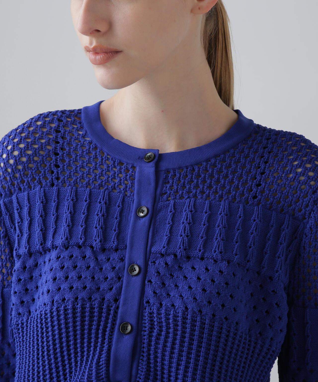 引人注目的波點設計針織開衫由 100%滌綸輕紗製成。這款開衫融合了多種針織圖案,並有許多特色孔眼。蓬蓬裙設計是其一大特色,從腰部附近開始,以蓬蓬裙收尾。蓬鬆且高彈性的聚酯紗線。
