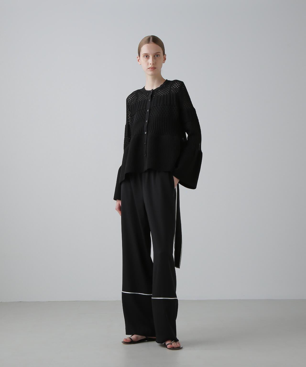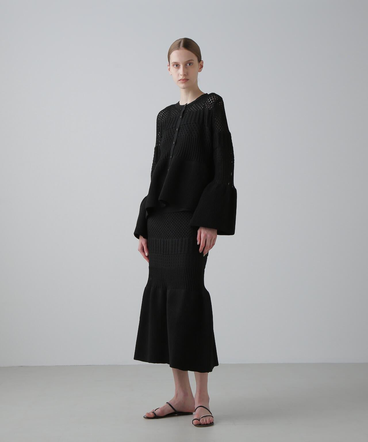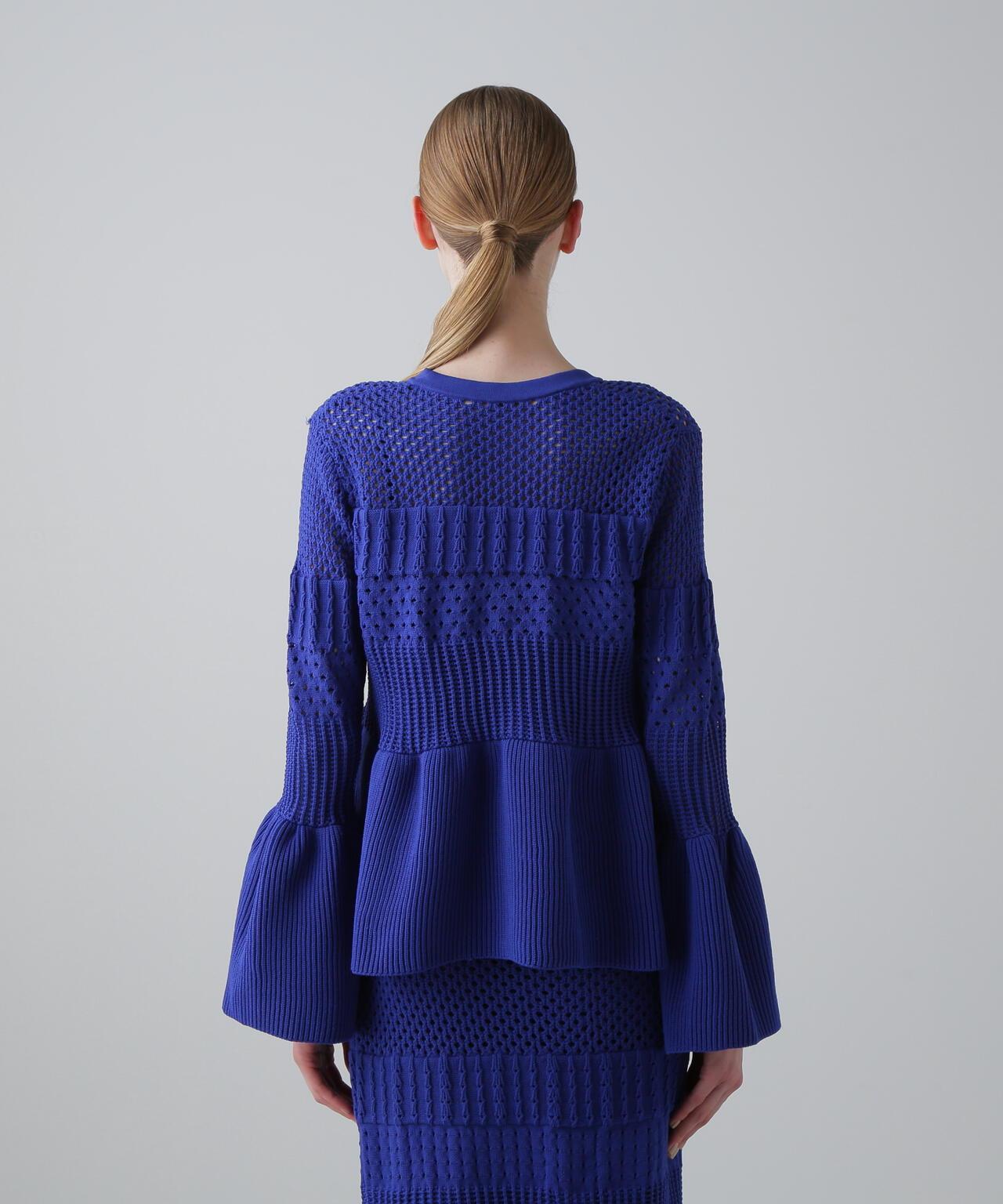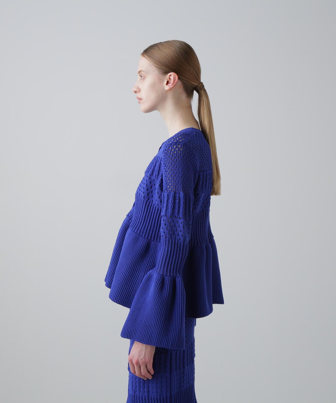 引人注目的波點設計針織開衫由 100%滌綸輕紗製成。這款開衫融合了多種針織圖案,並有許多特色孔眼。蓬蓬裙設計是其一大特色,從腰部附近開始,以蓬蓬裙收尾。蓬鬆且高彈性的聚酯紗線。