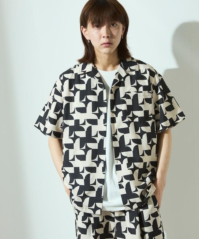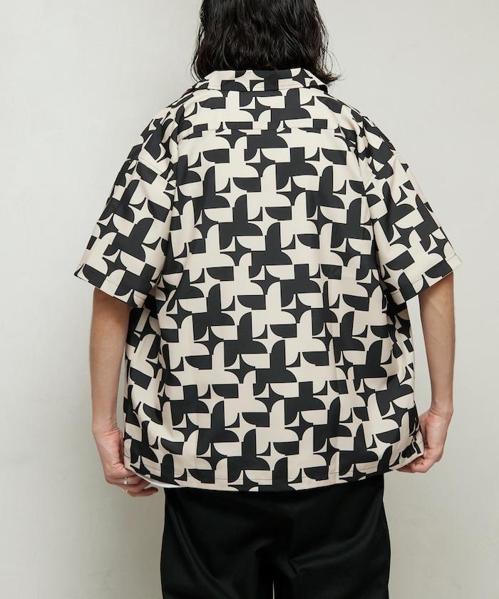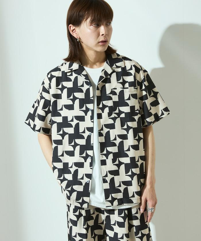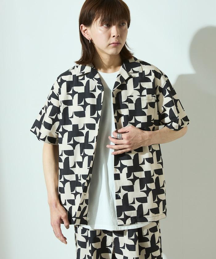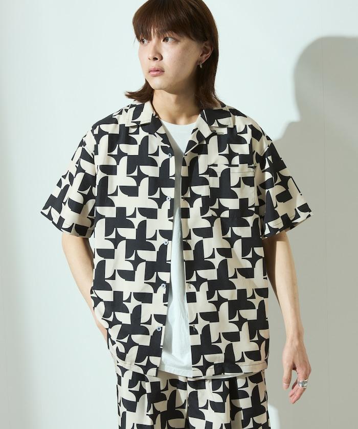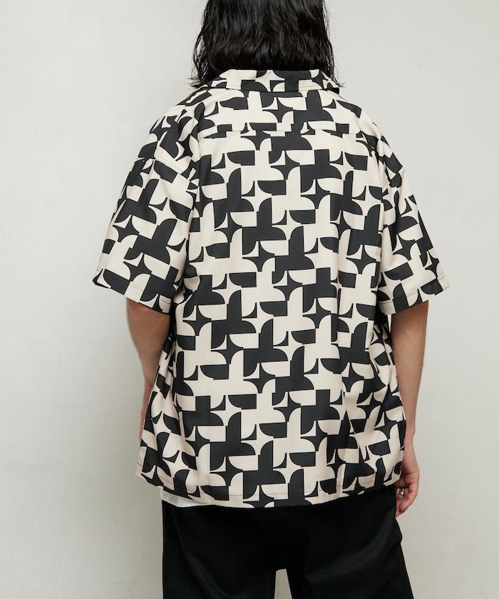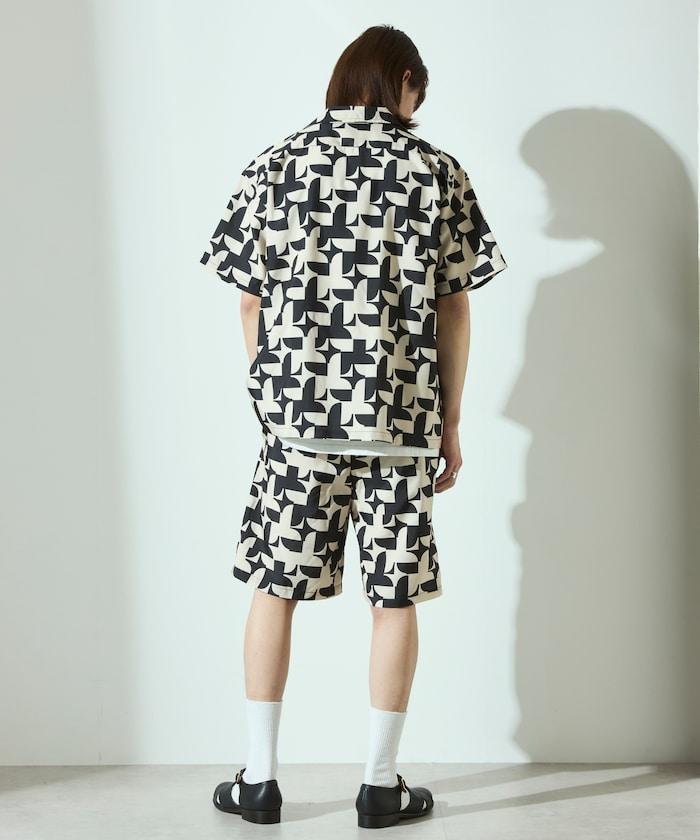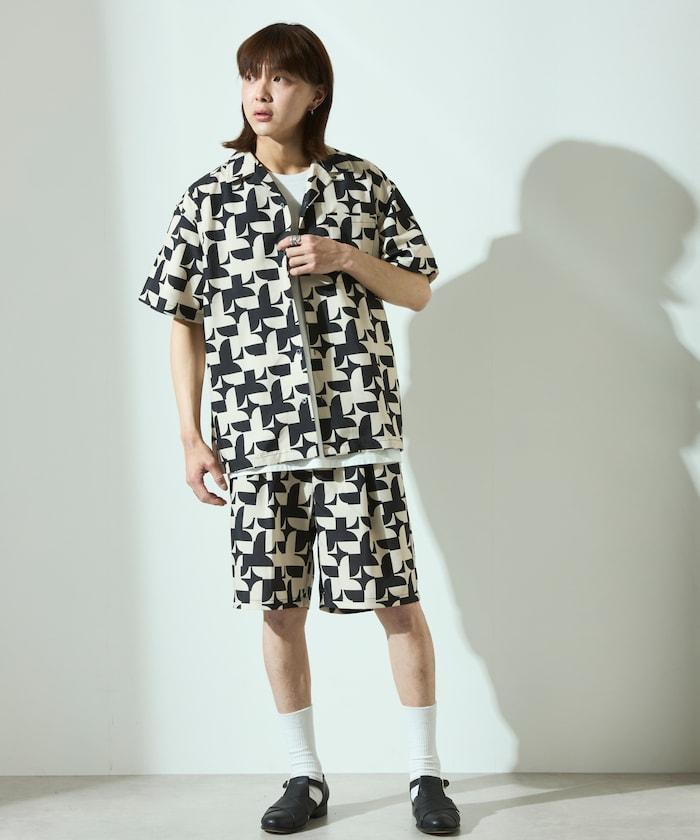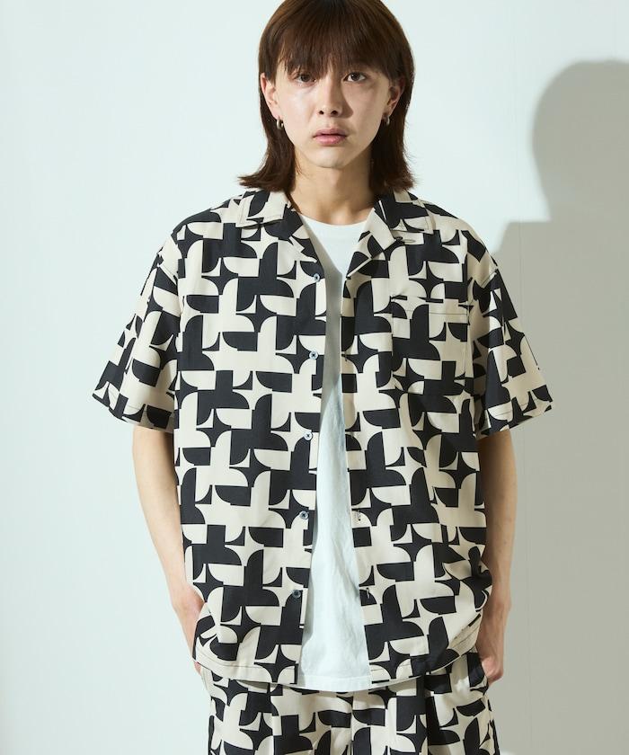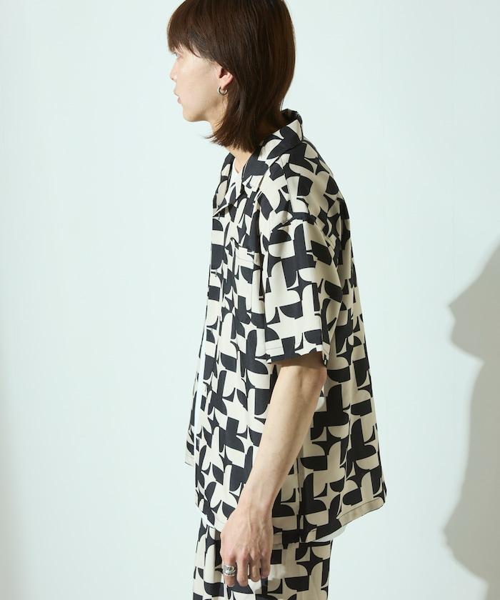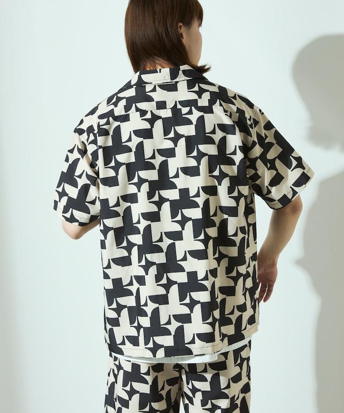 圖案開領短袖襯衫 / 總花紋設計開領襯衫 / 放鬆剪裁