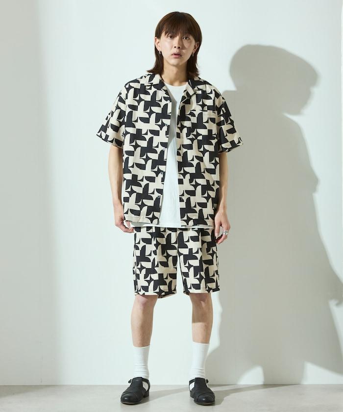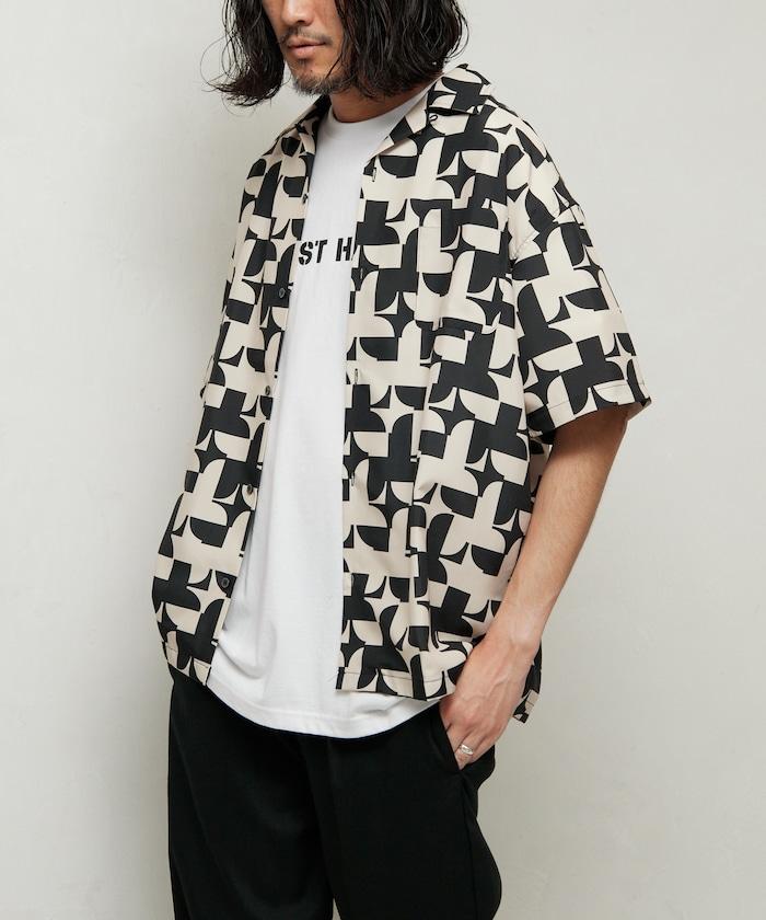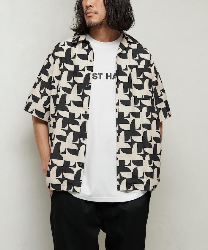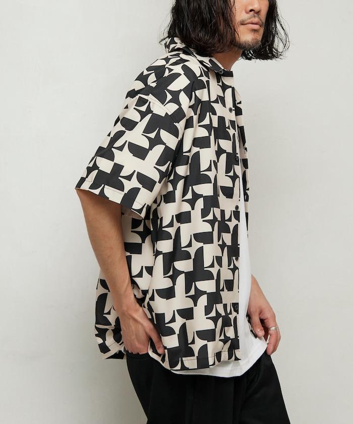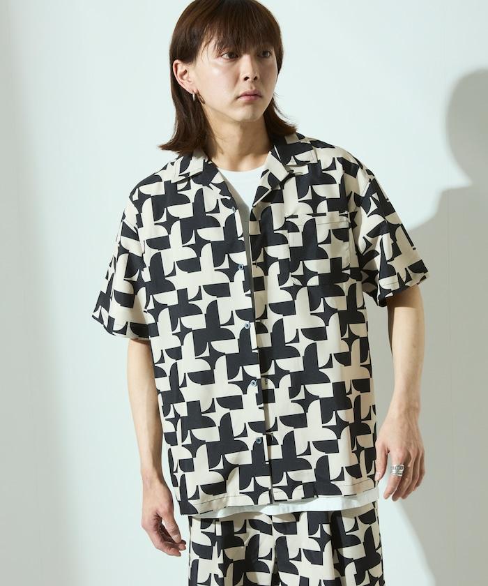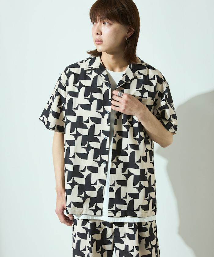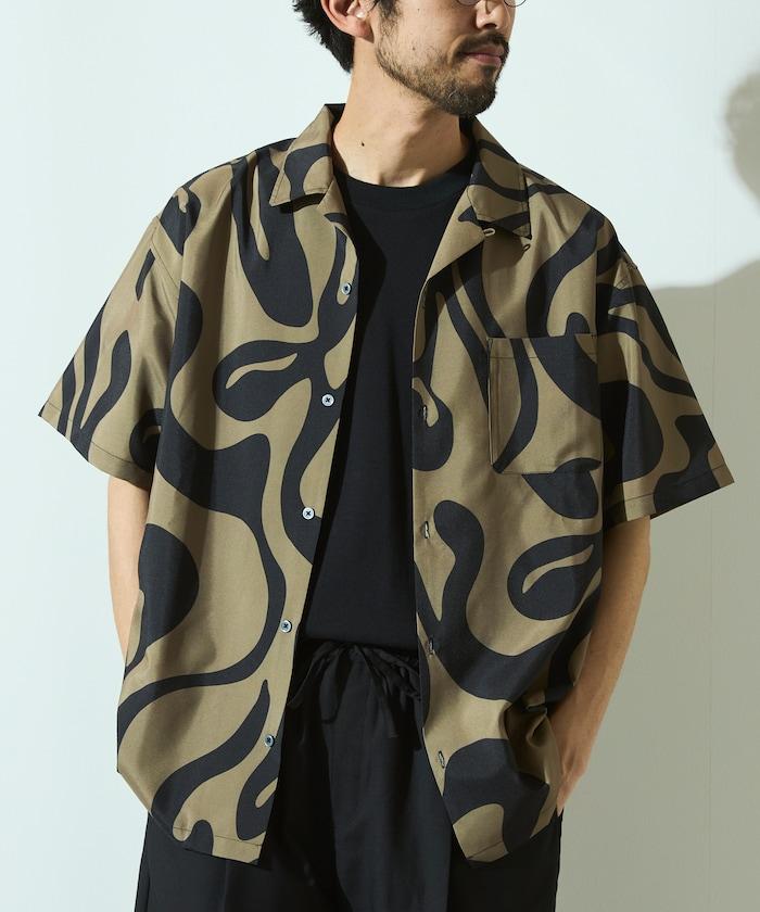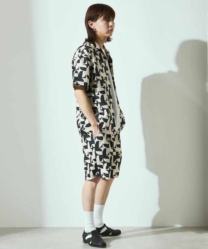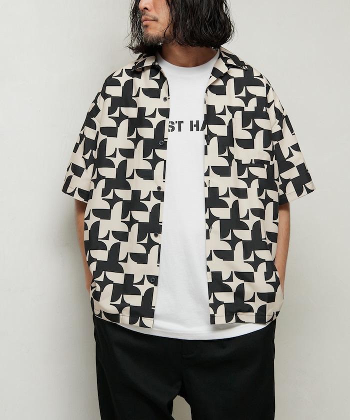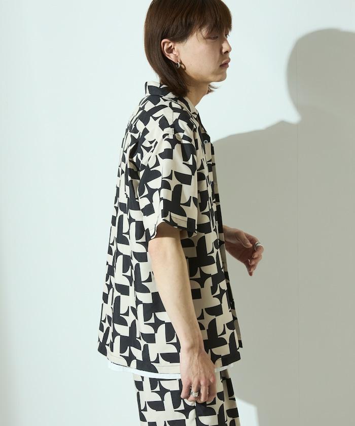 圖案開領短袖襯衫 / 總花紋設計開領襯衫 / 放鬆剪裁
