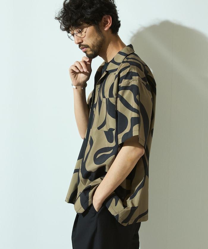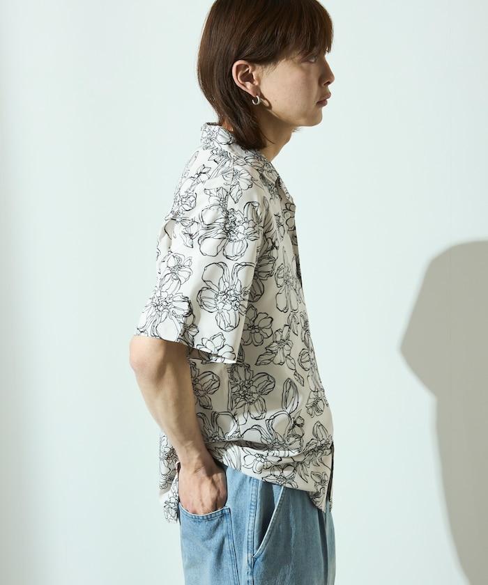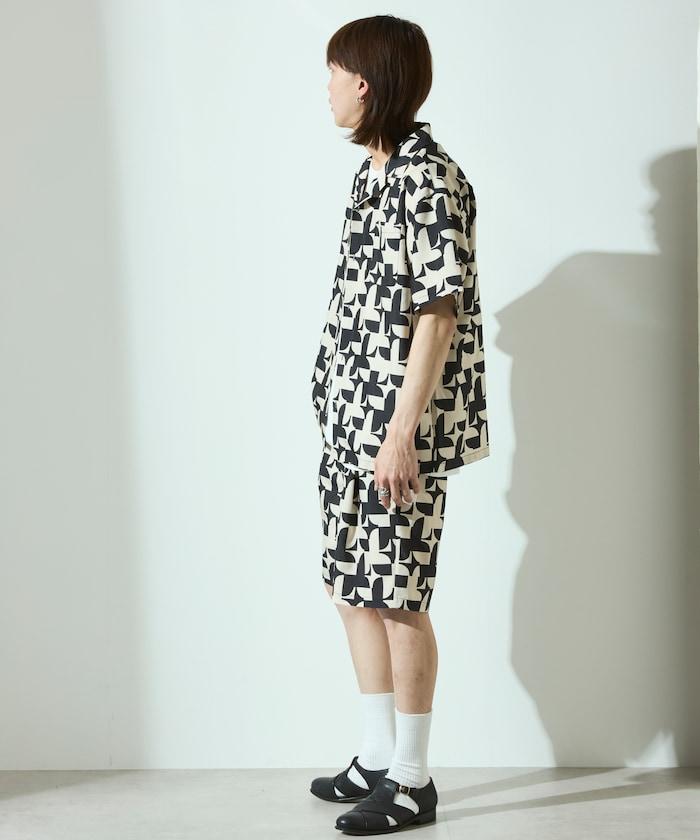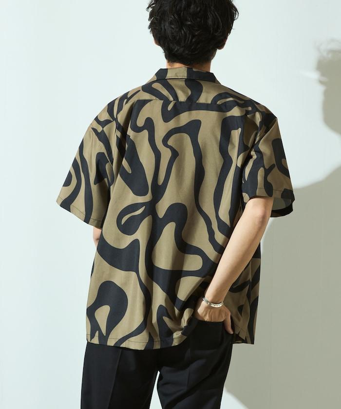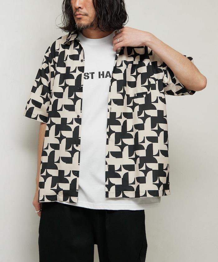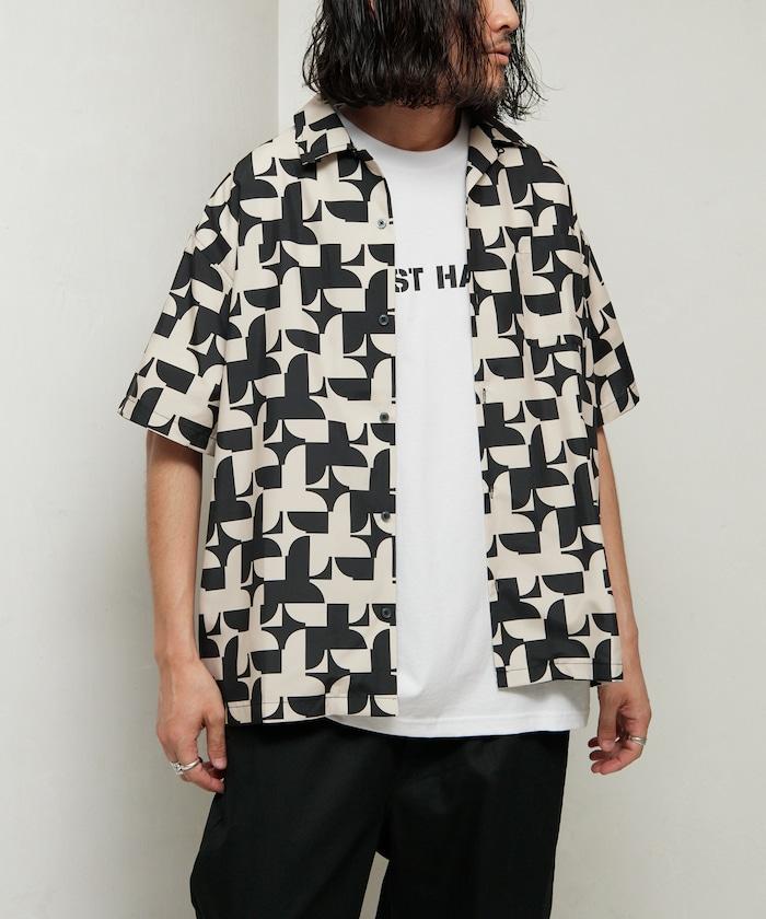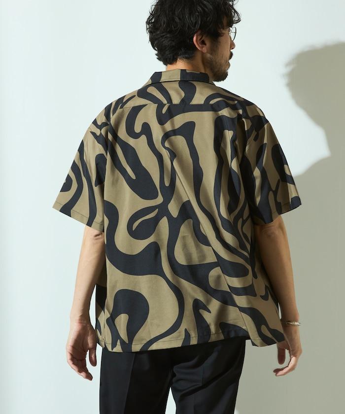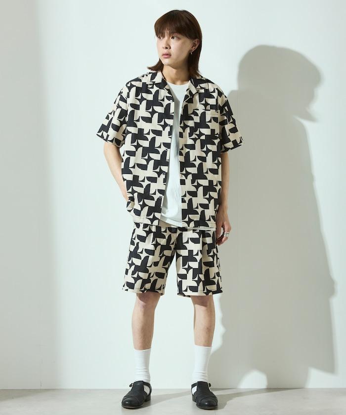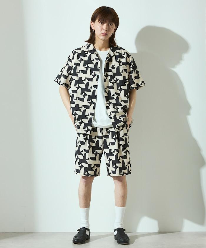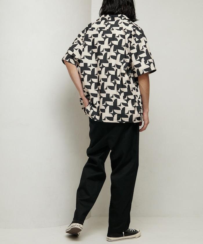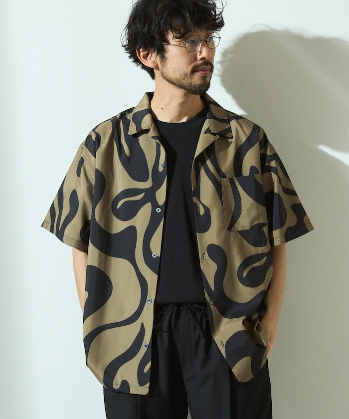 圖案開領短袖襯衫 / 總花紋設計開領襯衫 / 放鬆剪裁
