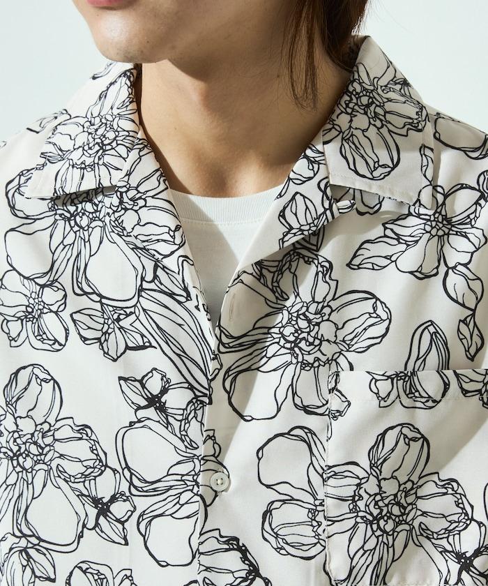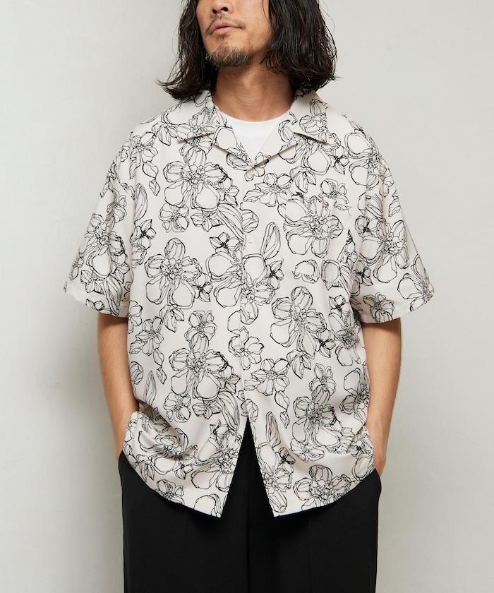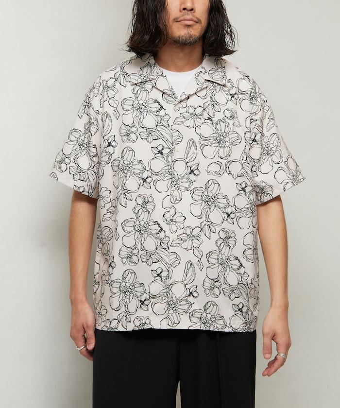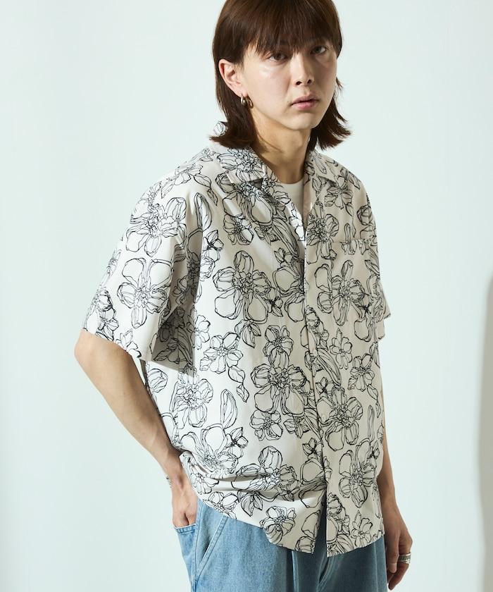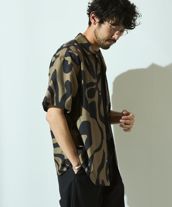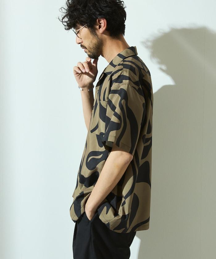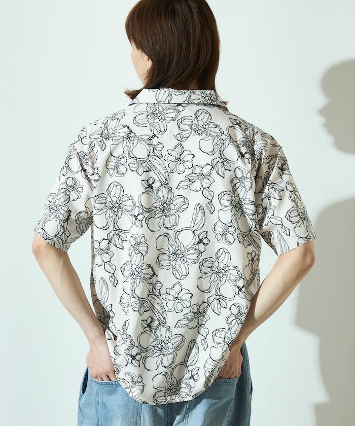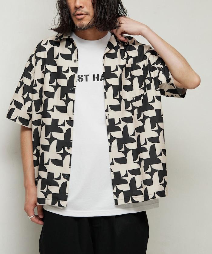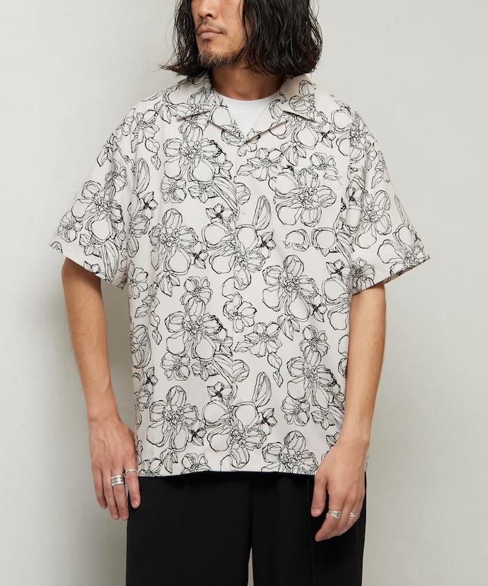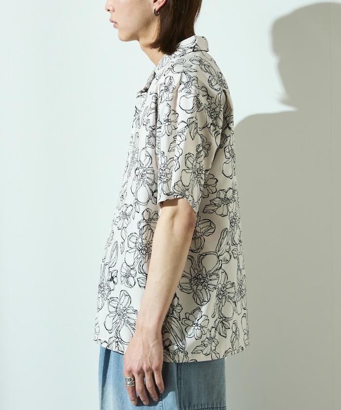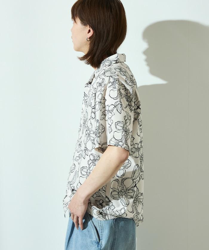 圖案開領短袖襯衫 / 總花紋設計開領襯衫 / 放鬆剪裁