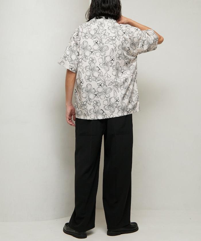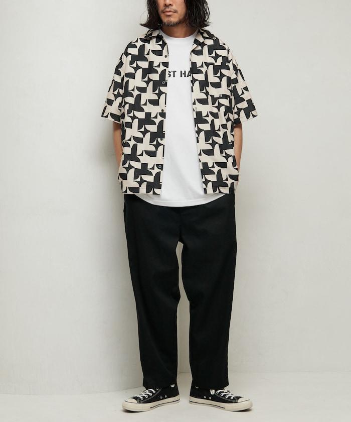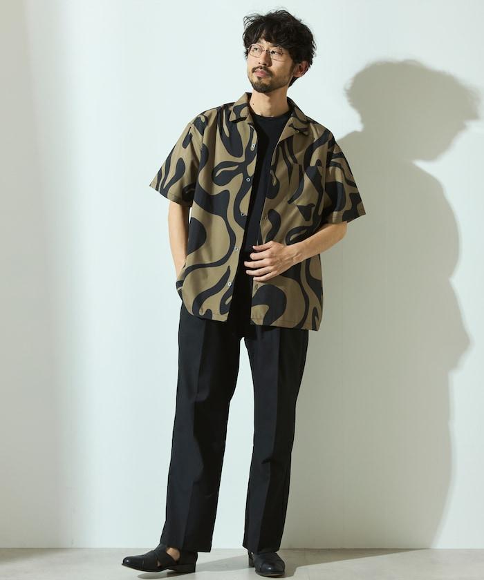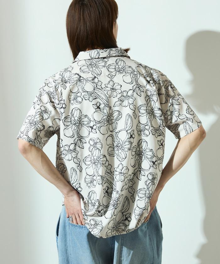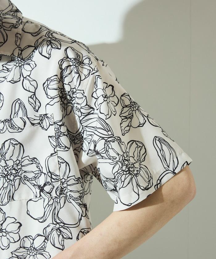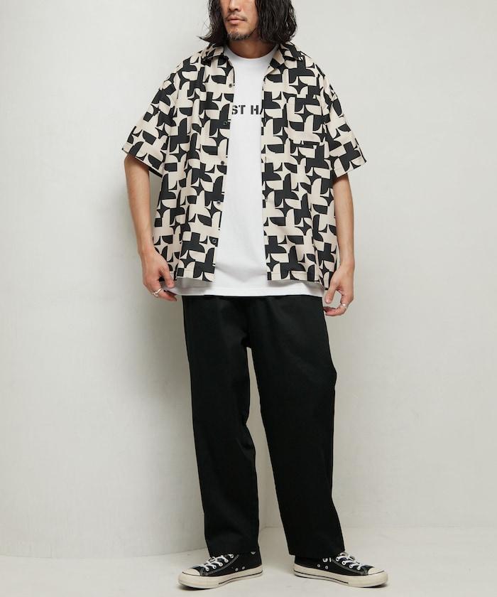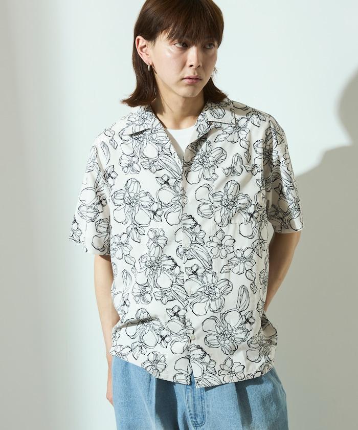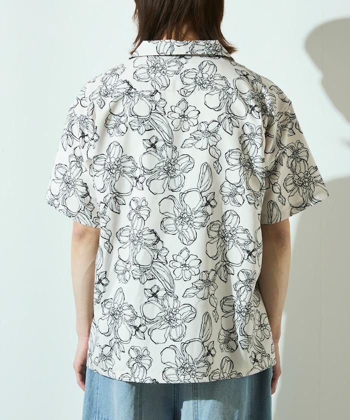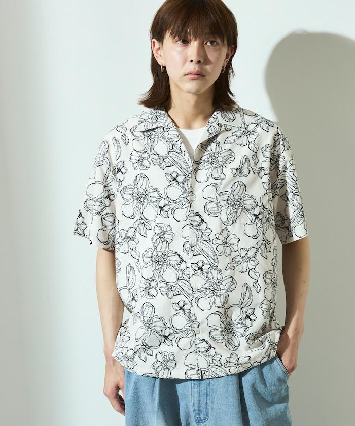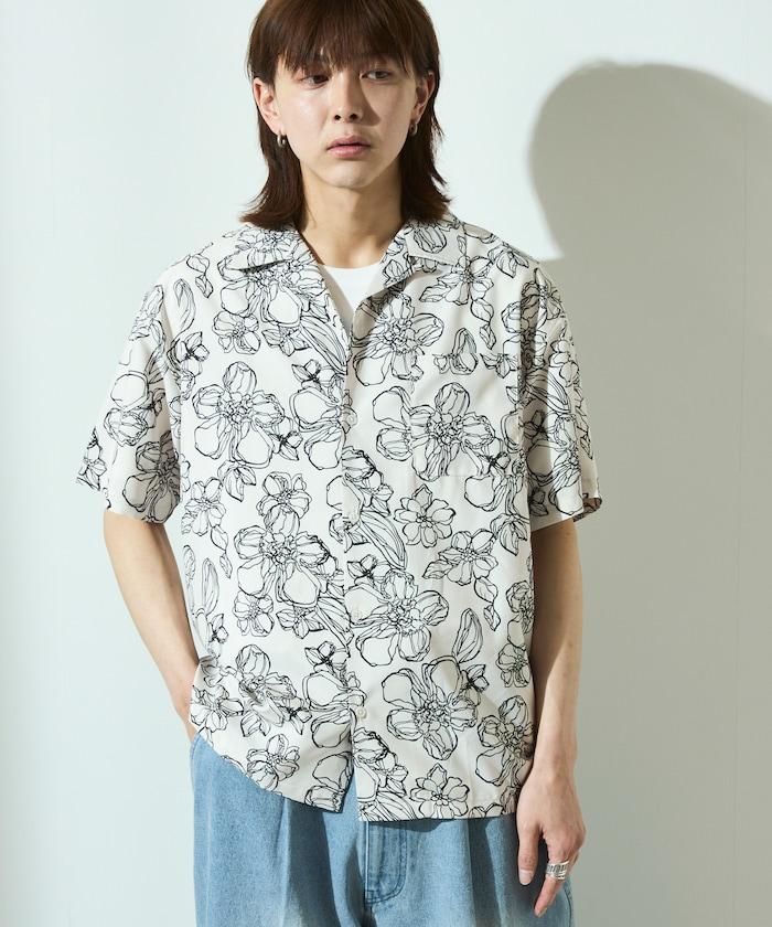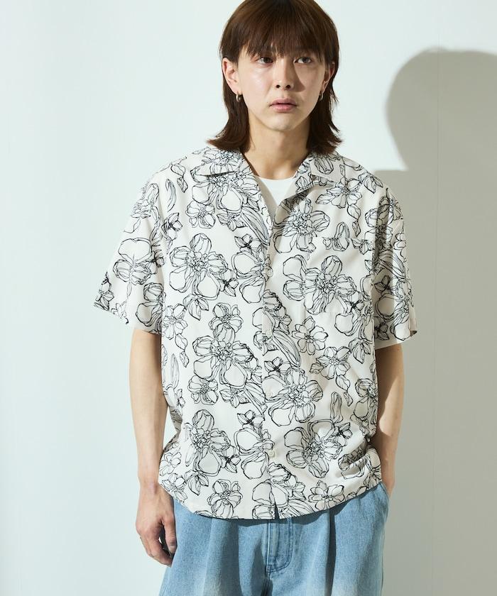 圖案開領短袖襯衫 / 總花紋設計開領襯衫 / 放鬆剪裁