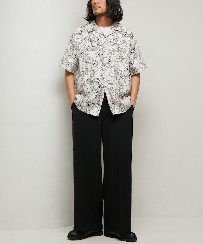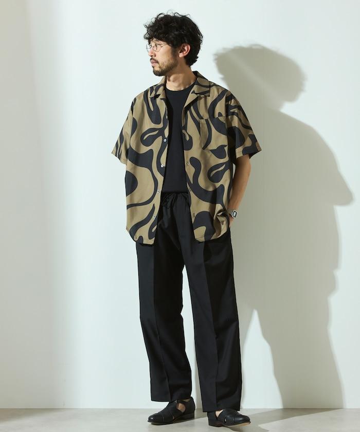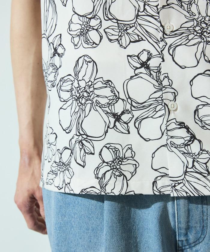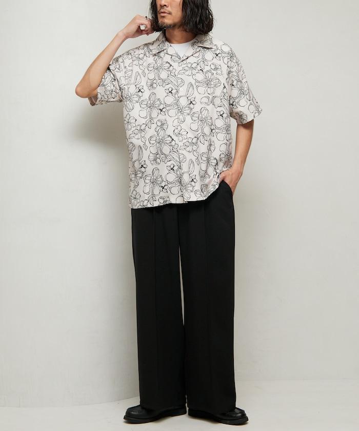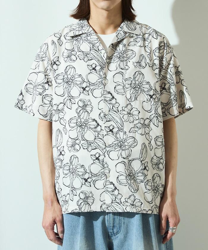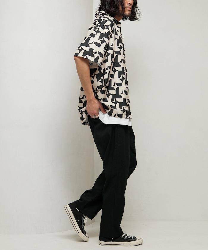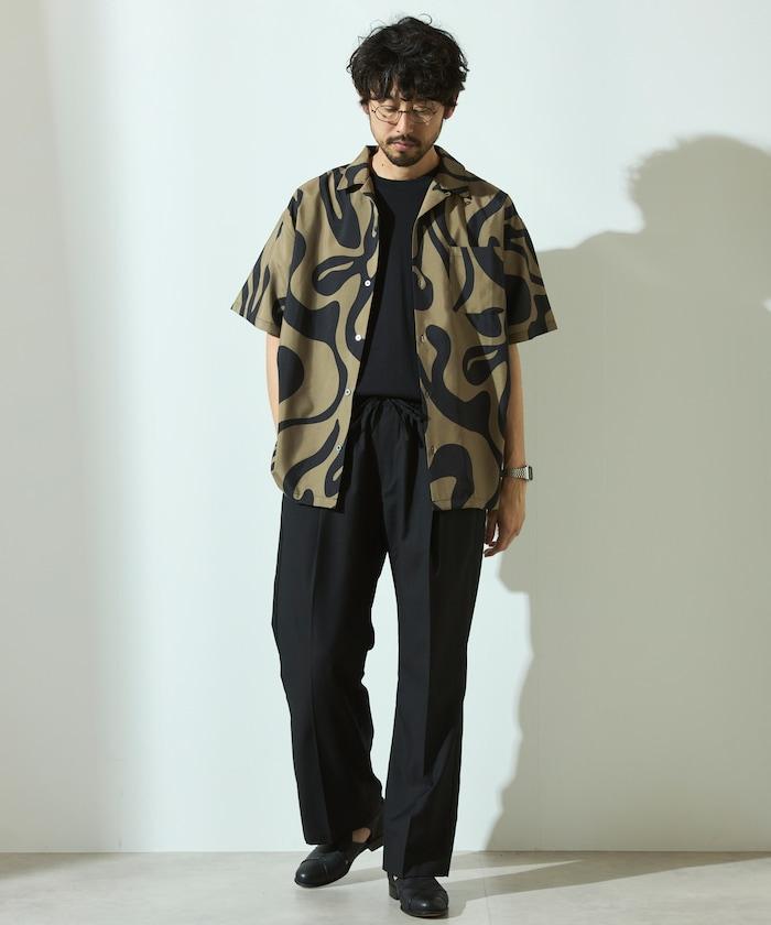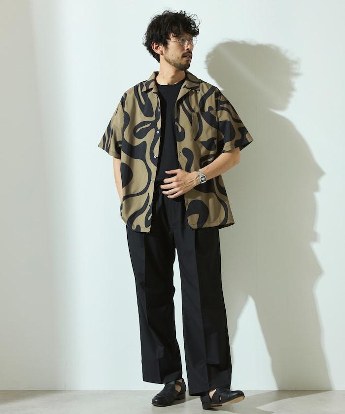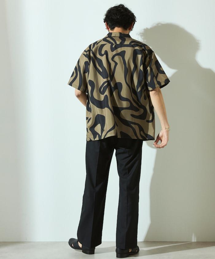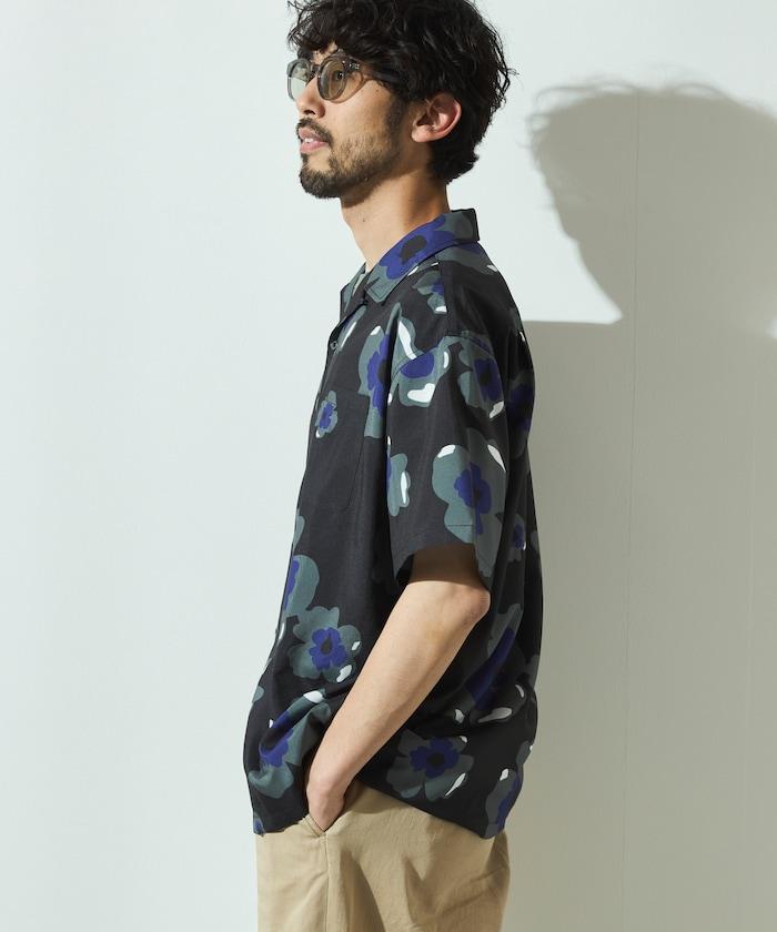 圖案開領短袖襯衫 / 總花紋設計開領襯衫 / 放鬆剪裁