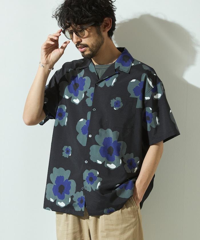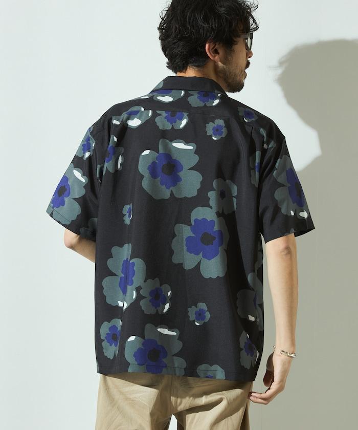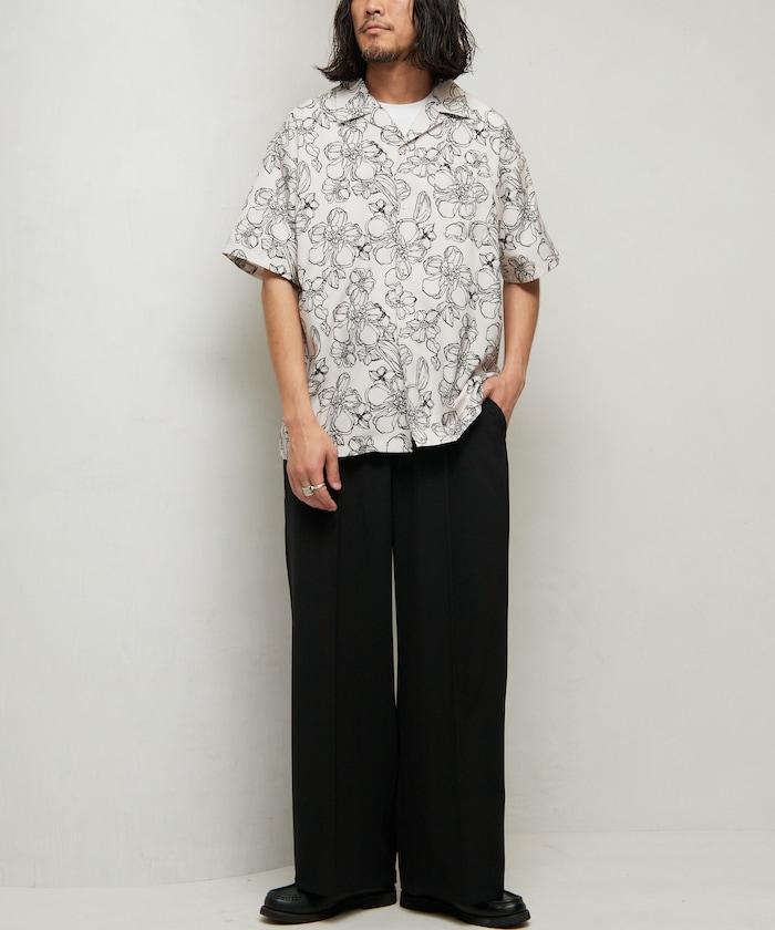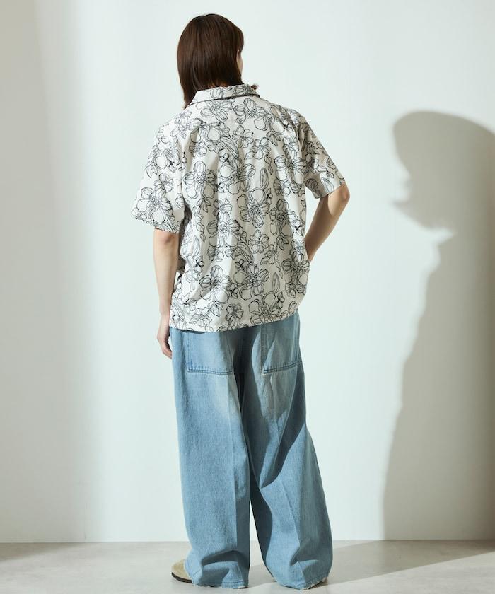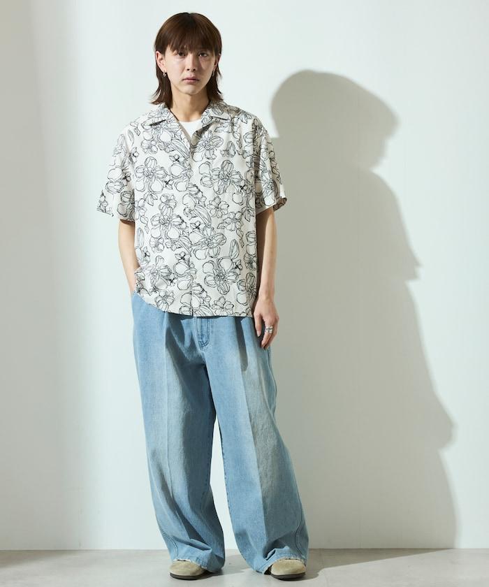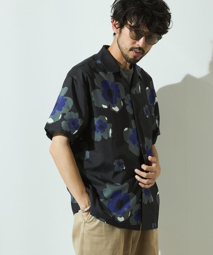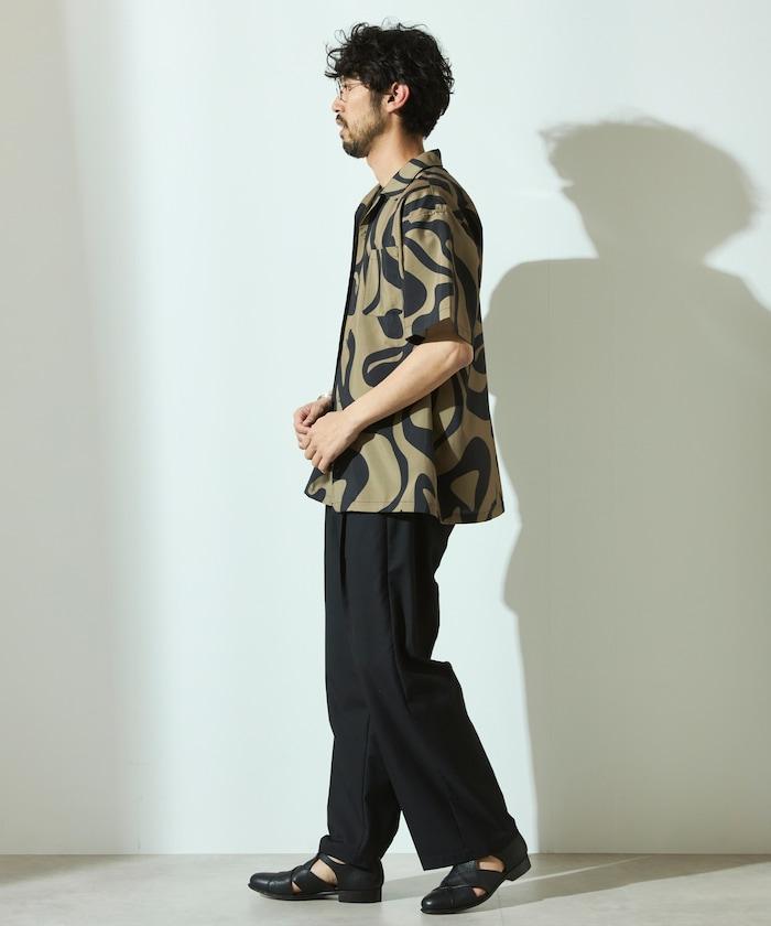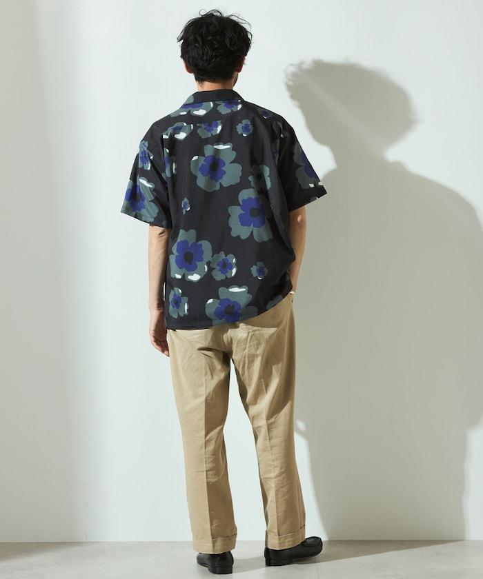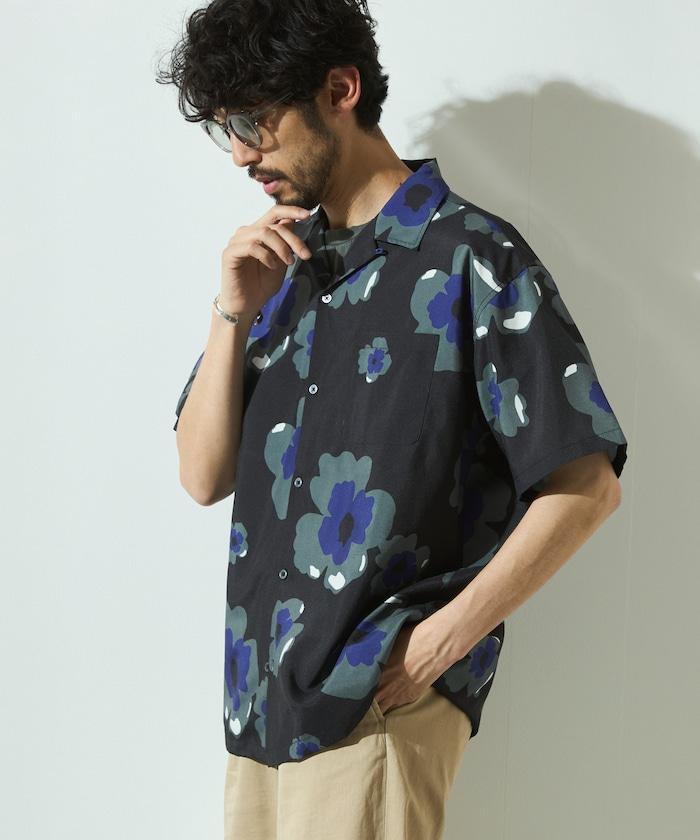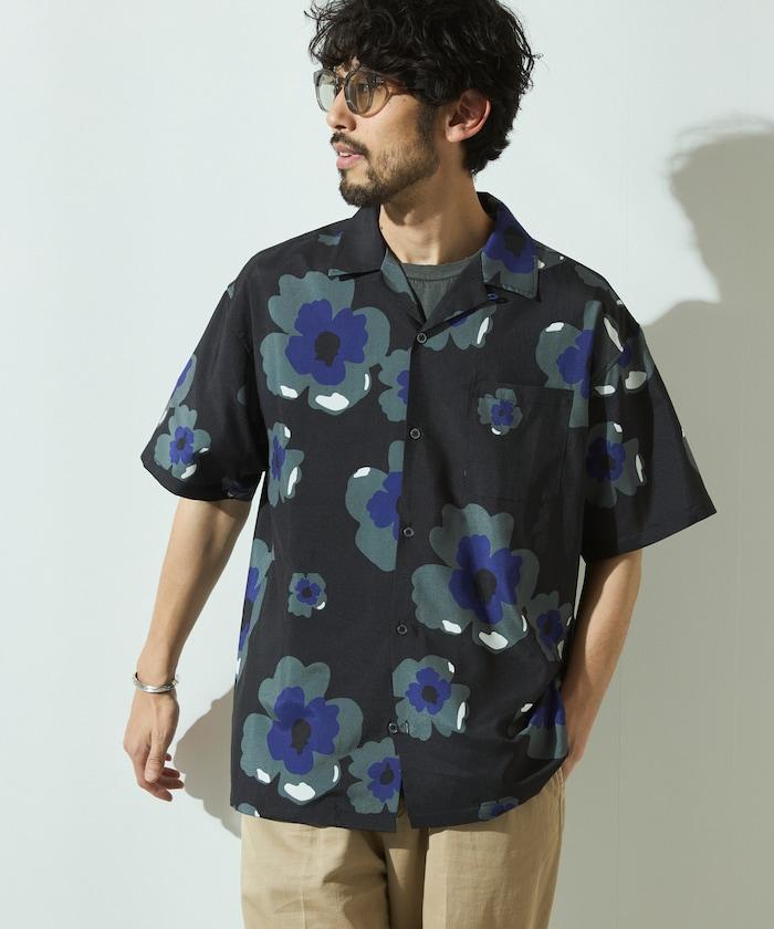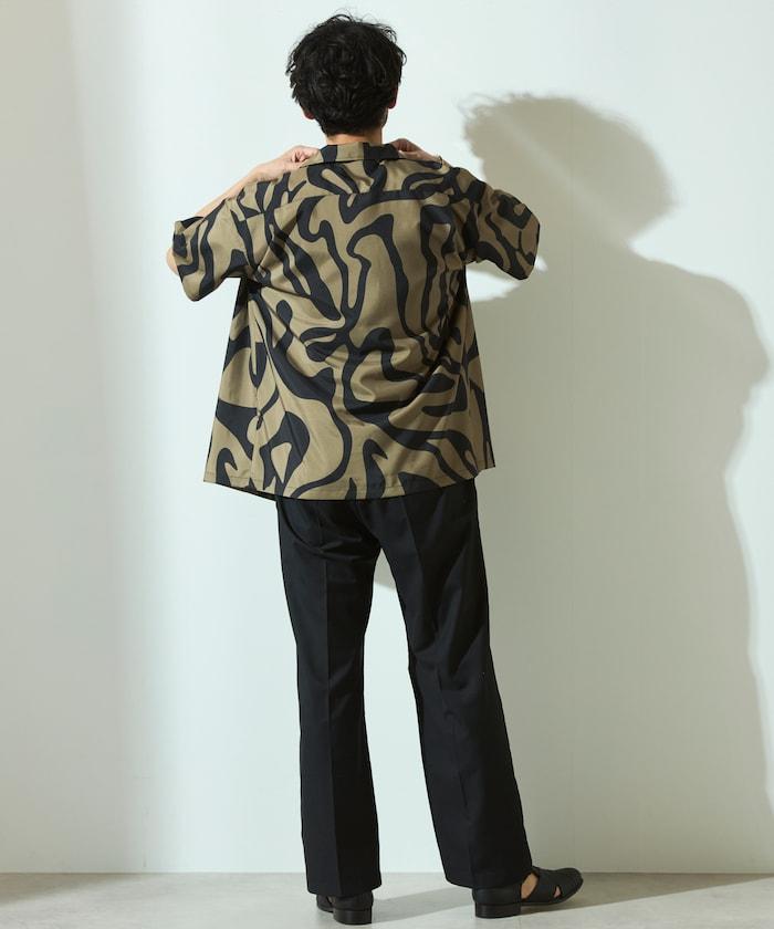 圖案開領短袖襯衫 / 總花紋設計開領襯衫 / 放鬆剪裁