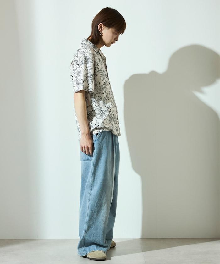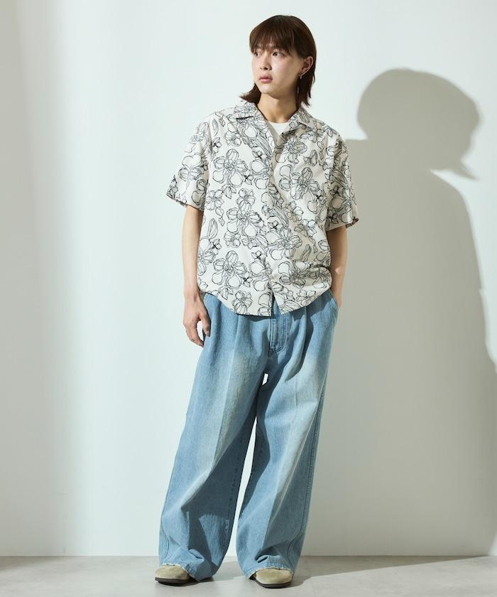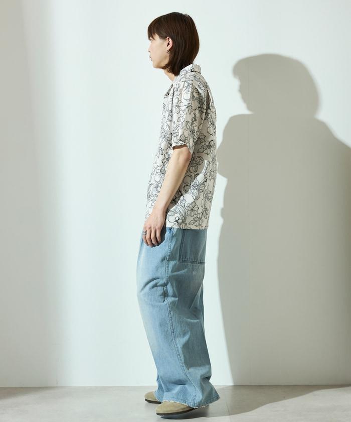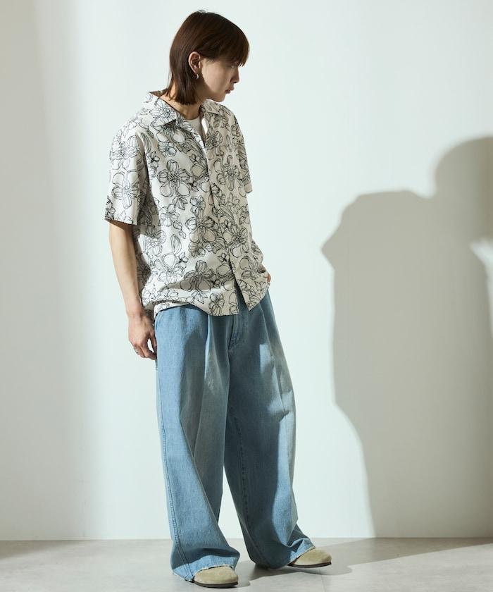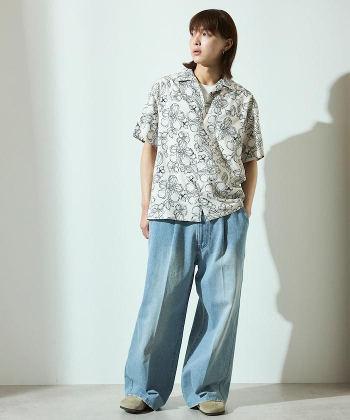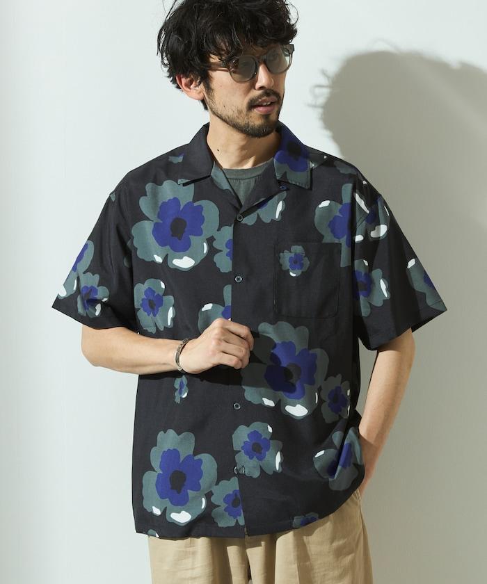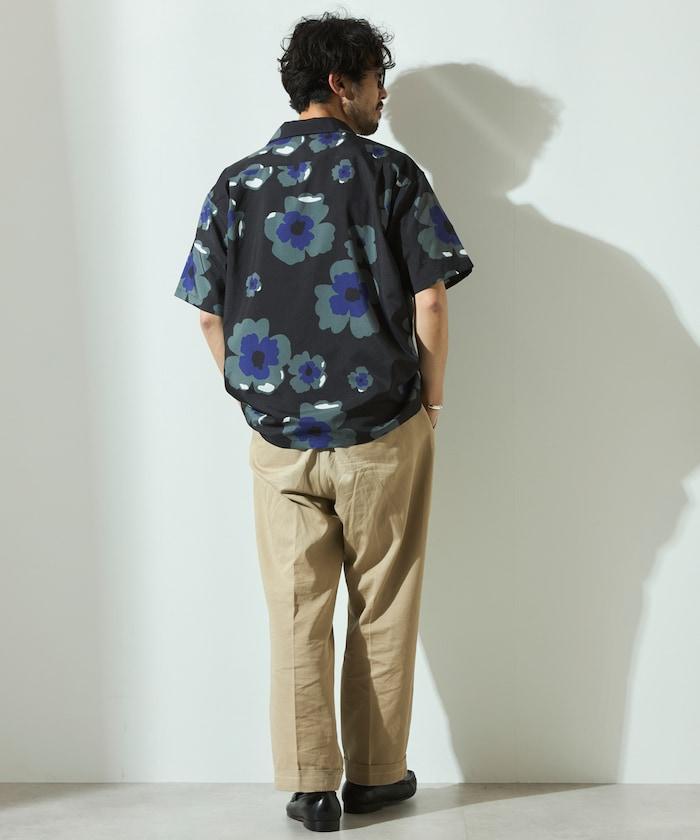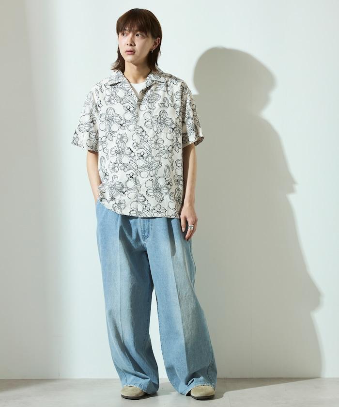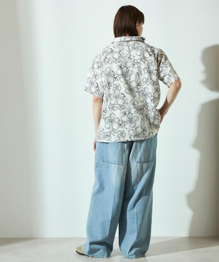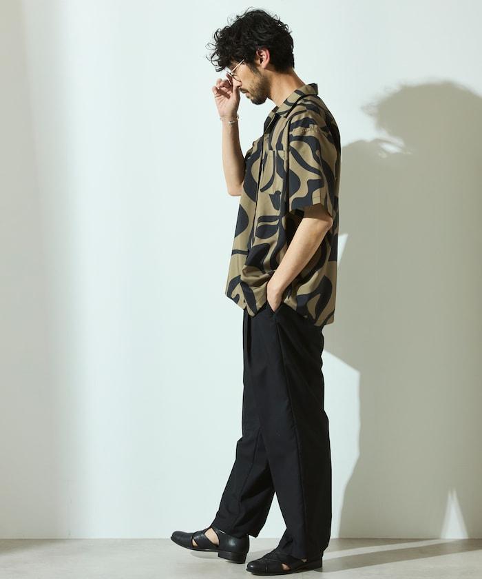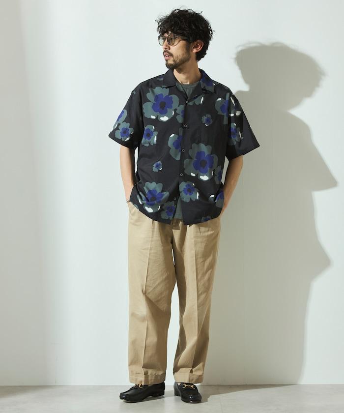 圖案開領短袖襯衫 / 總花紋設計開領襯衫 / 放鬆剪裁