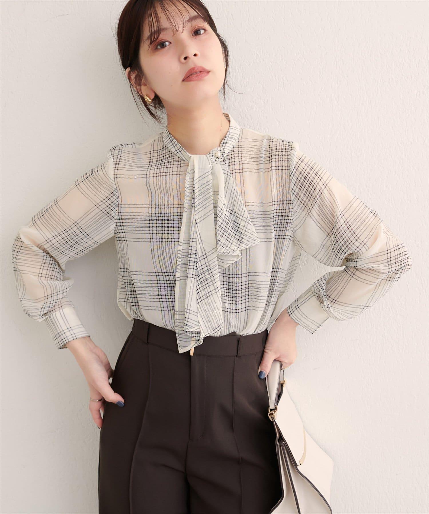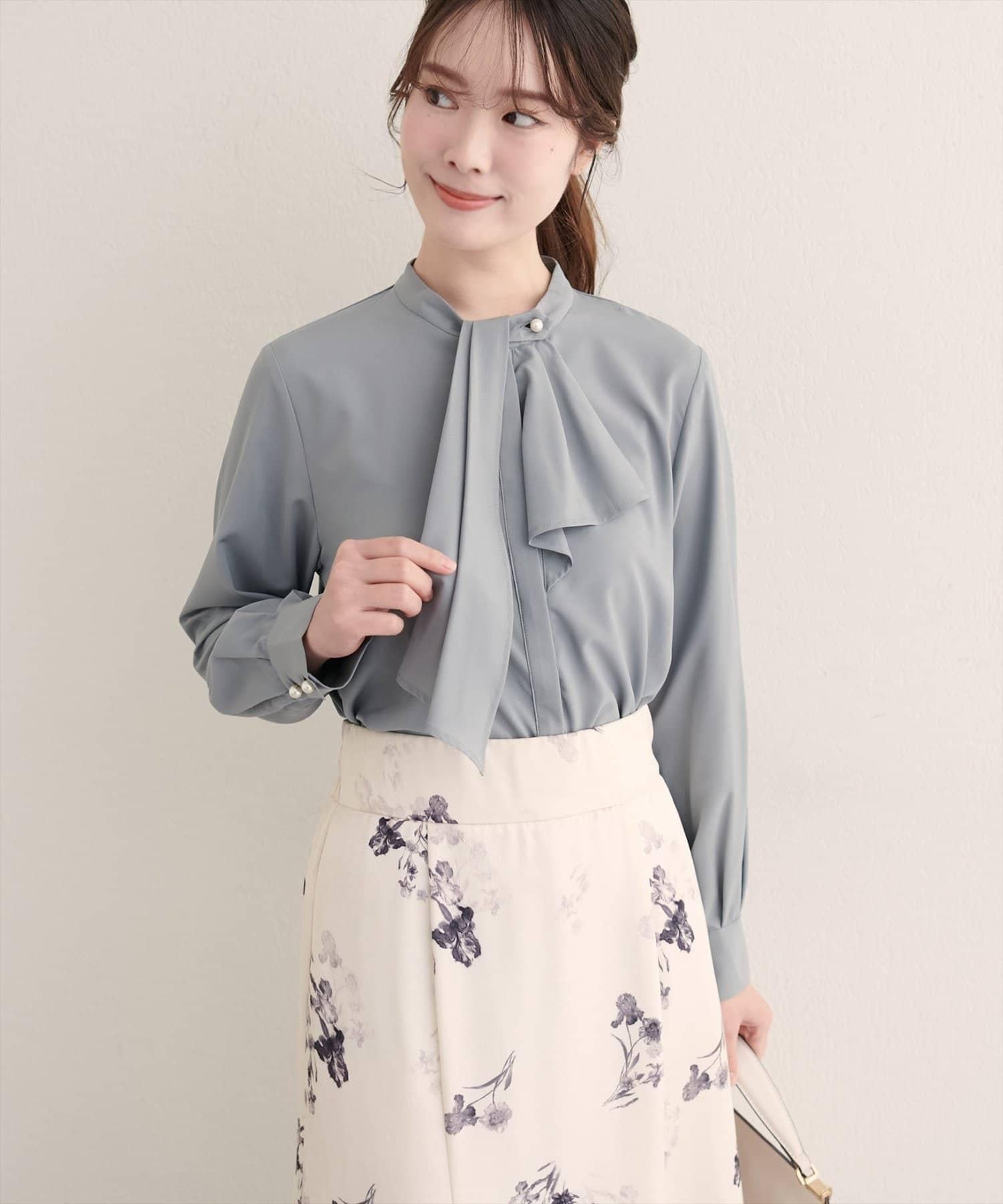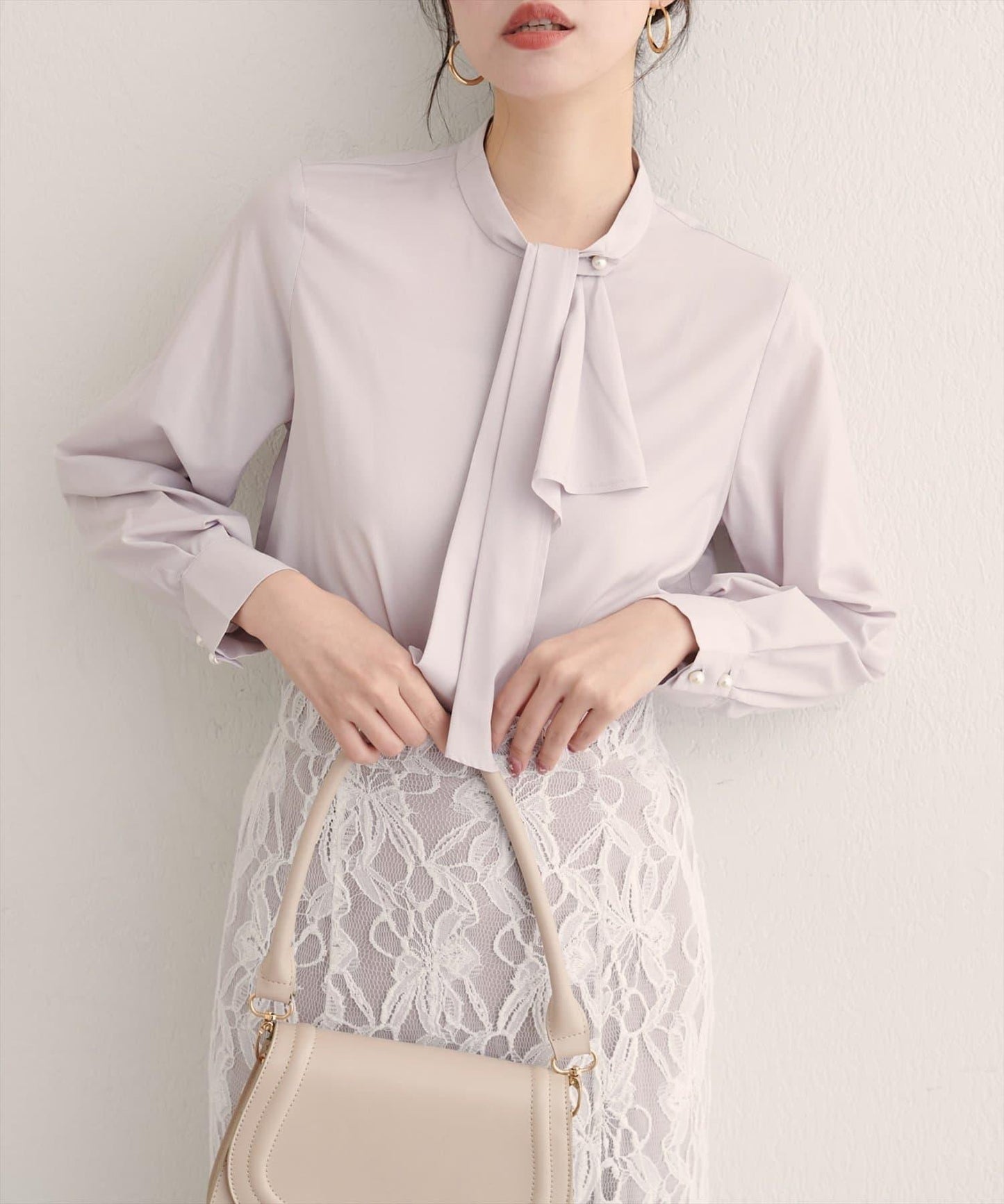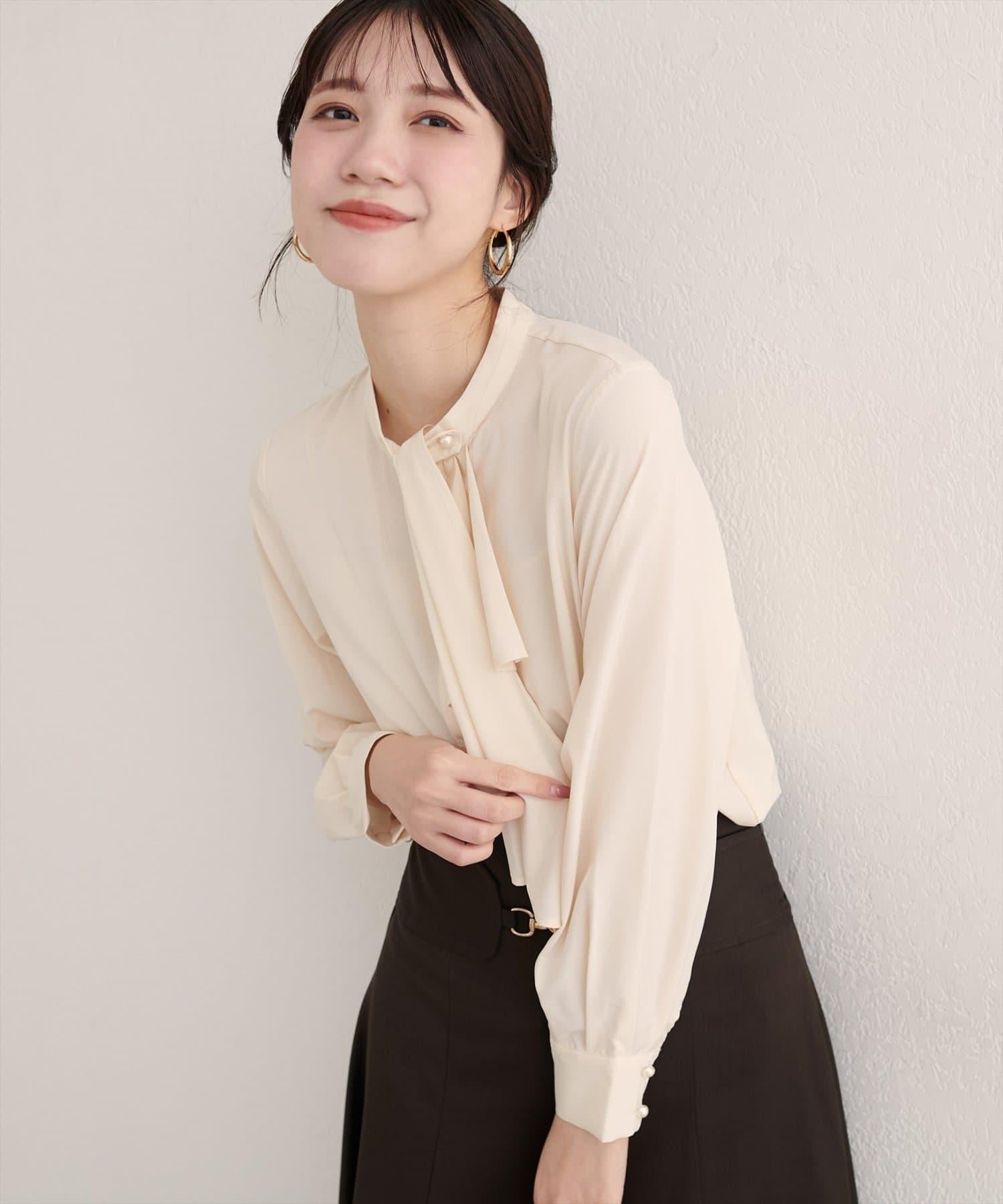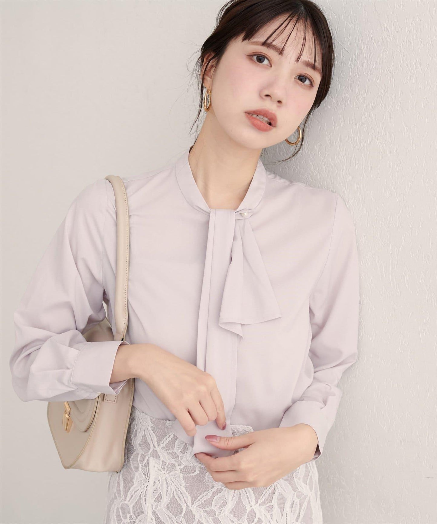 這款優雅的上衣採用垂墜式圍巾繫帶設計。
