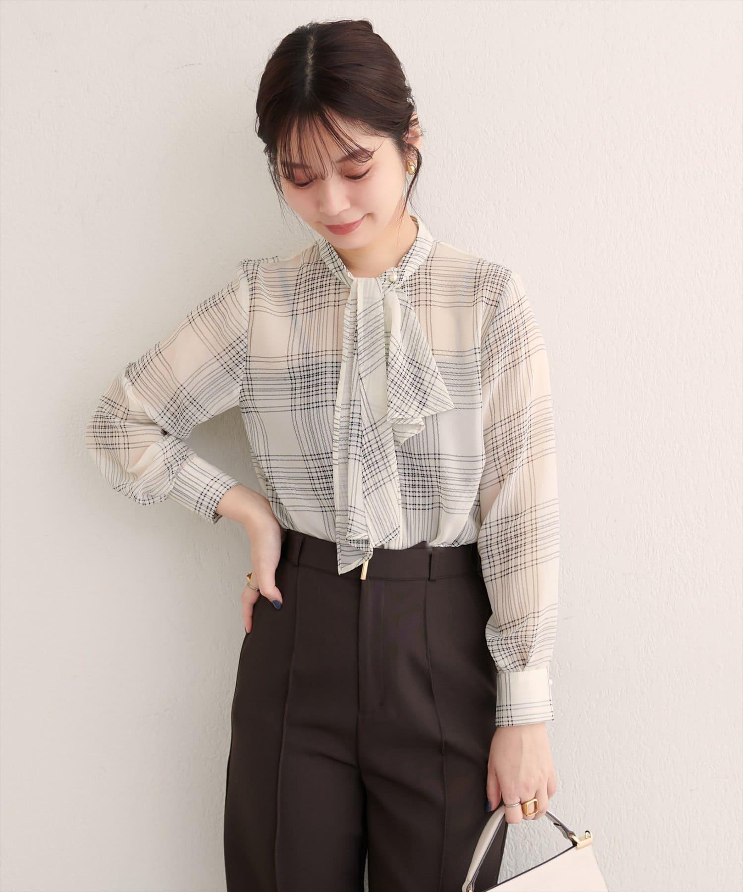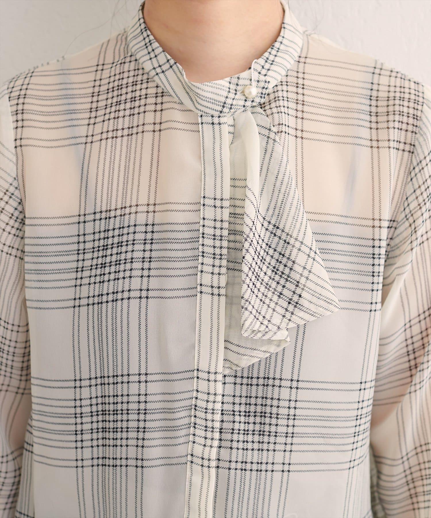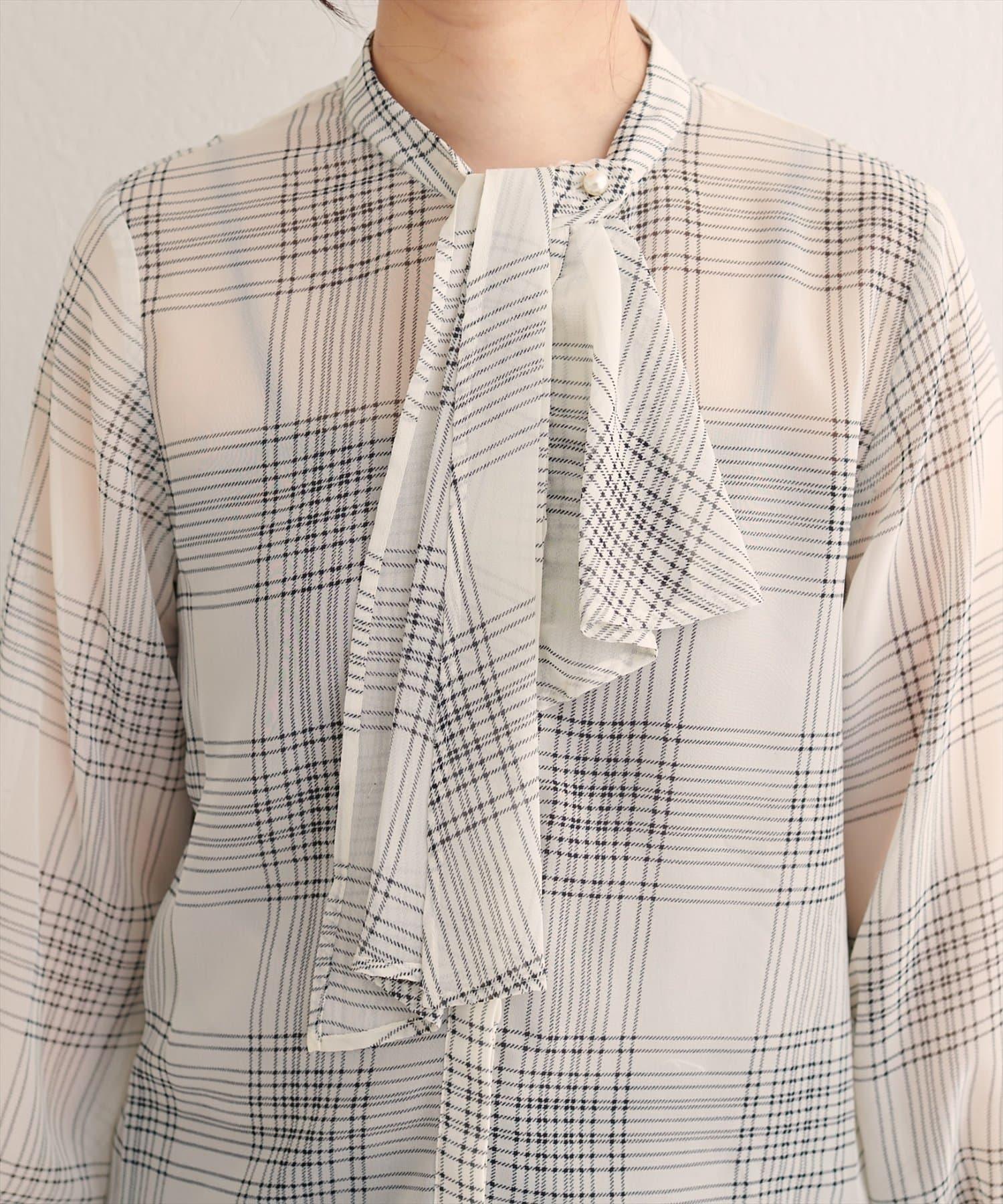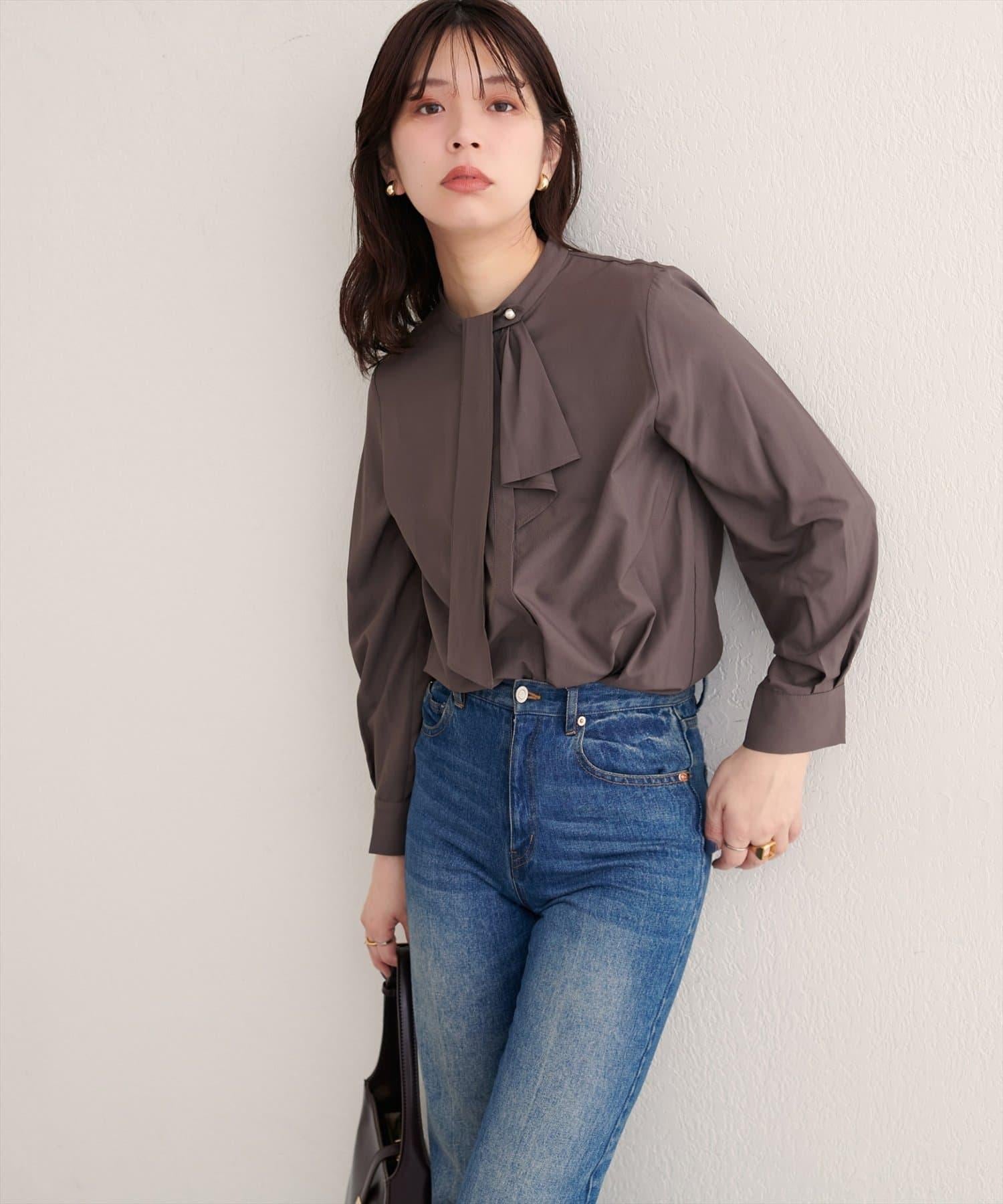 這款優雅的上衣採用垂墜式圍巾繫帶設計。