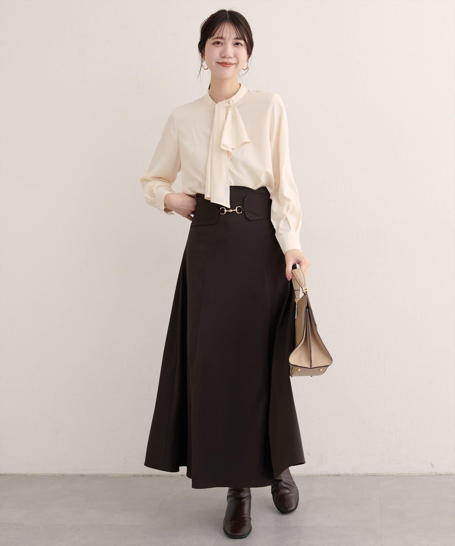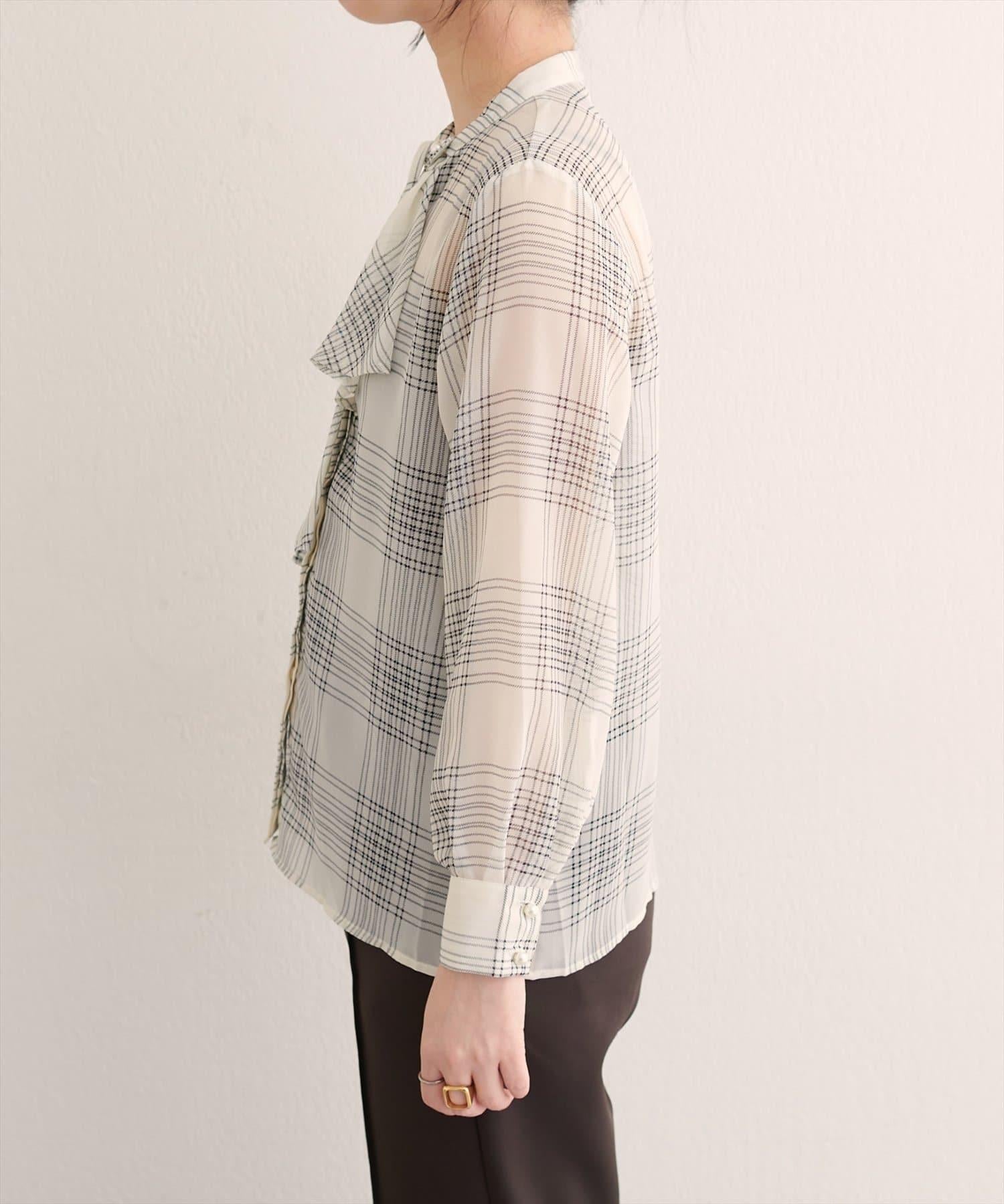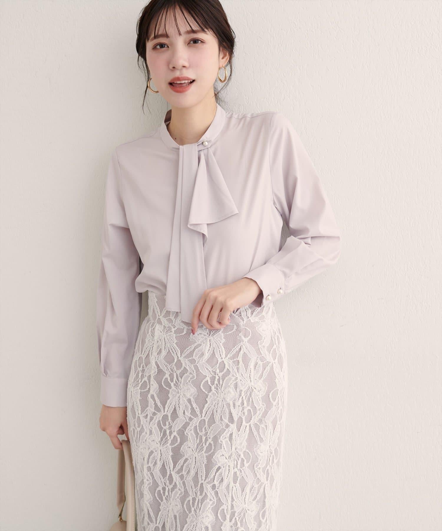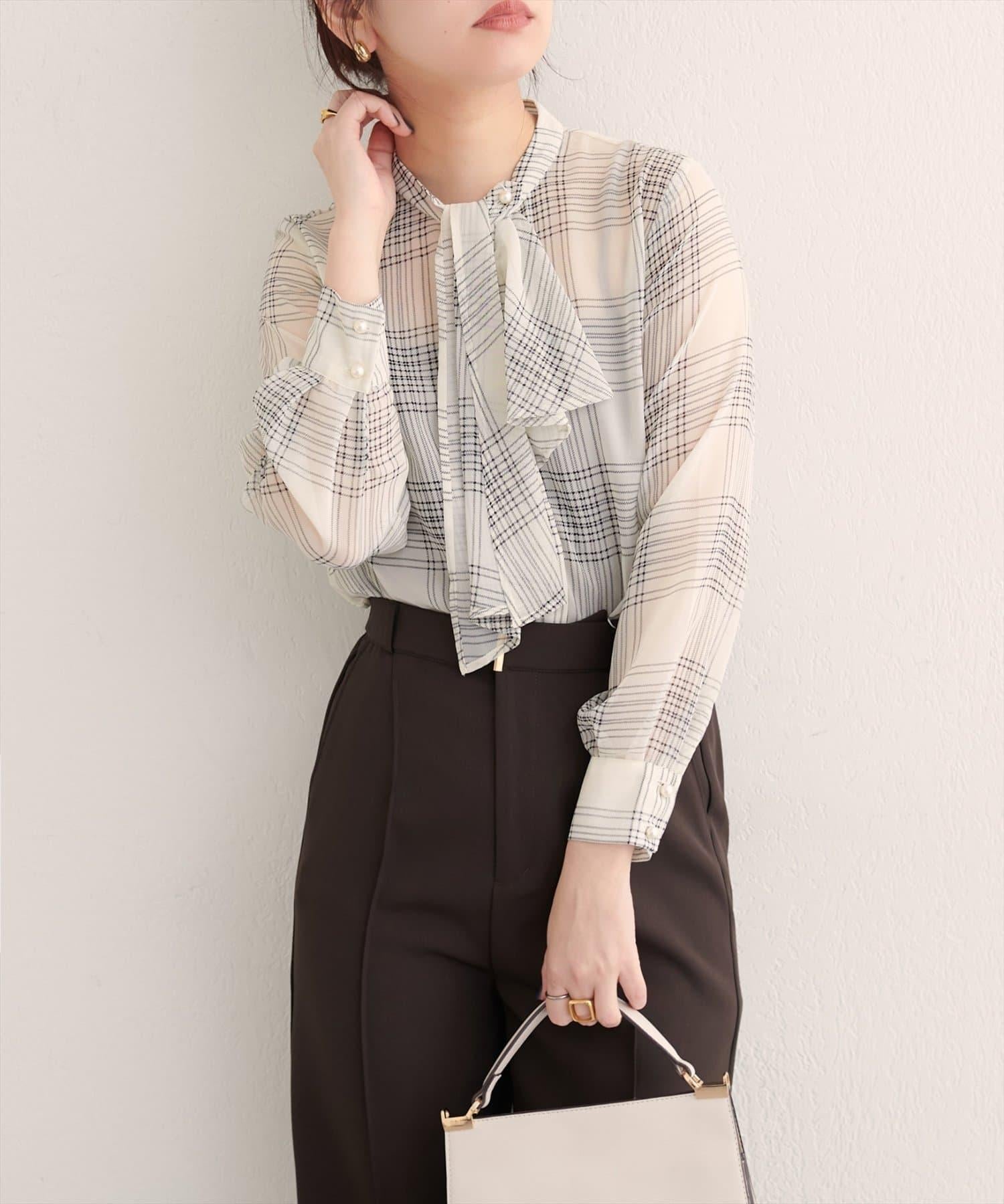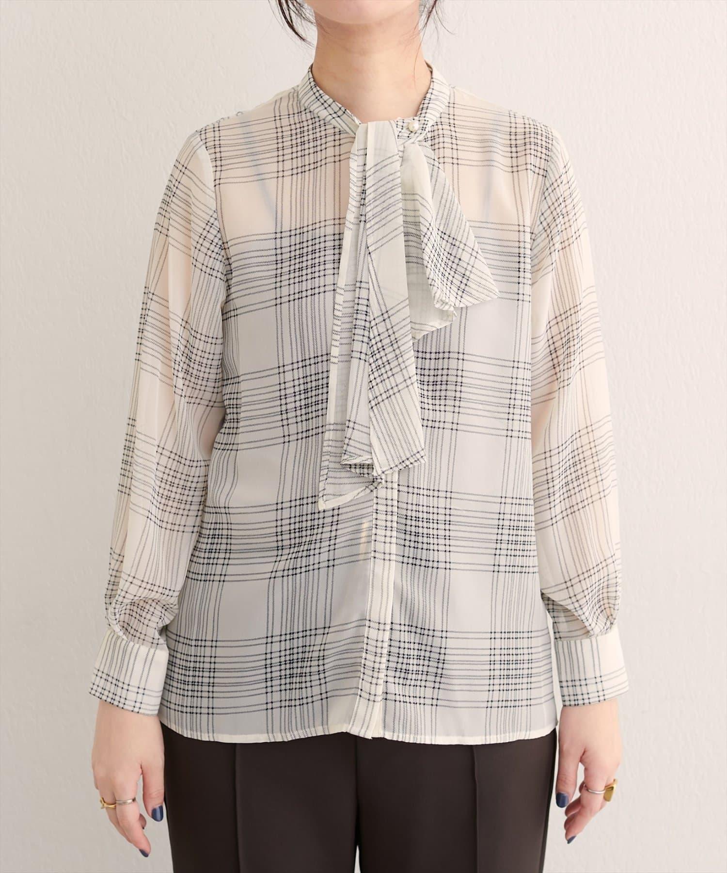 這款優雅的上衣採用垂墜式圍巾繫帶設計。