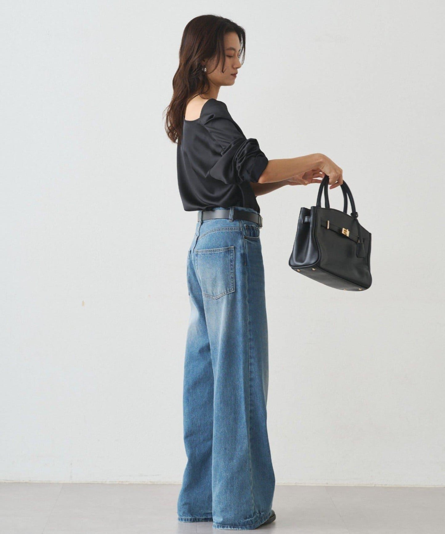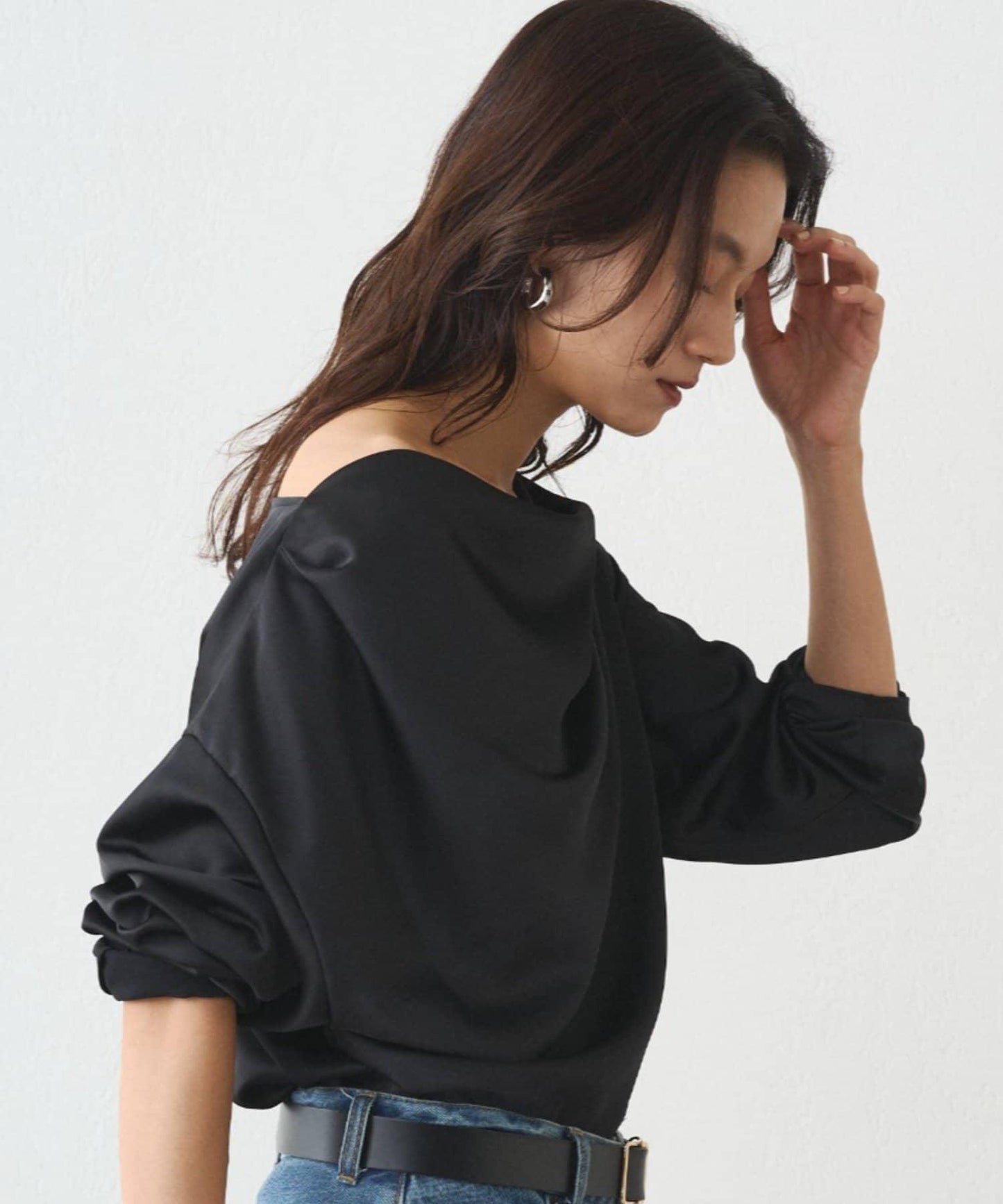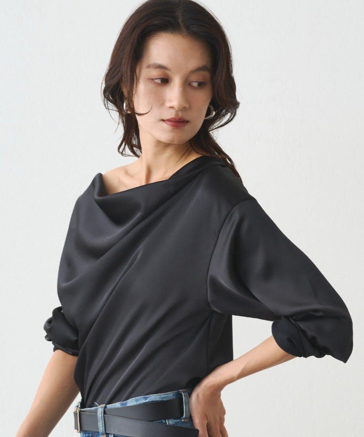 垂墜緞面上衣,成人的沉穩。