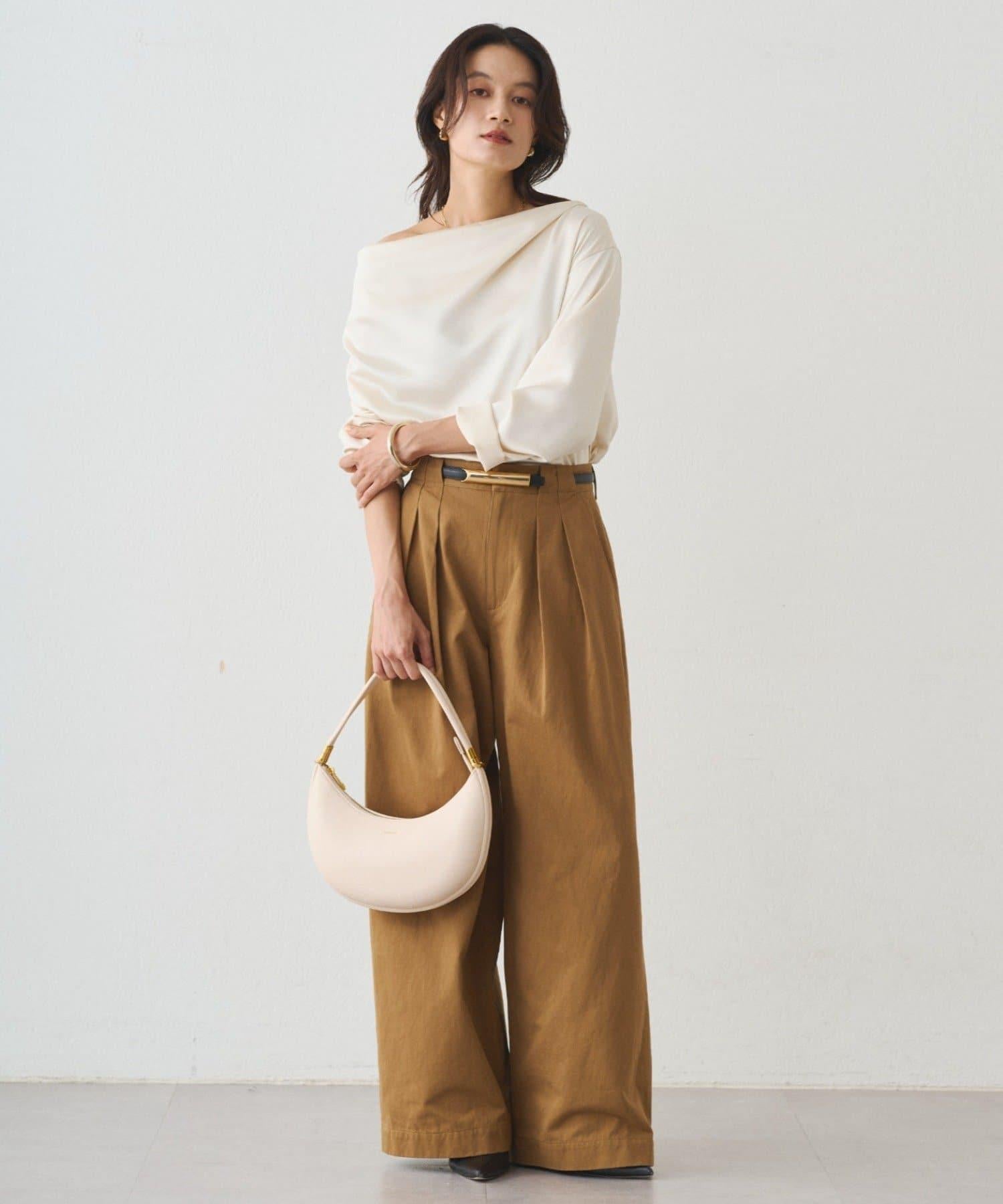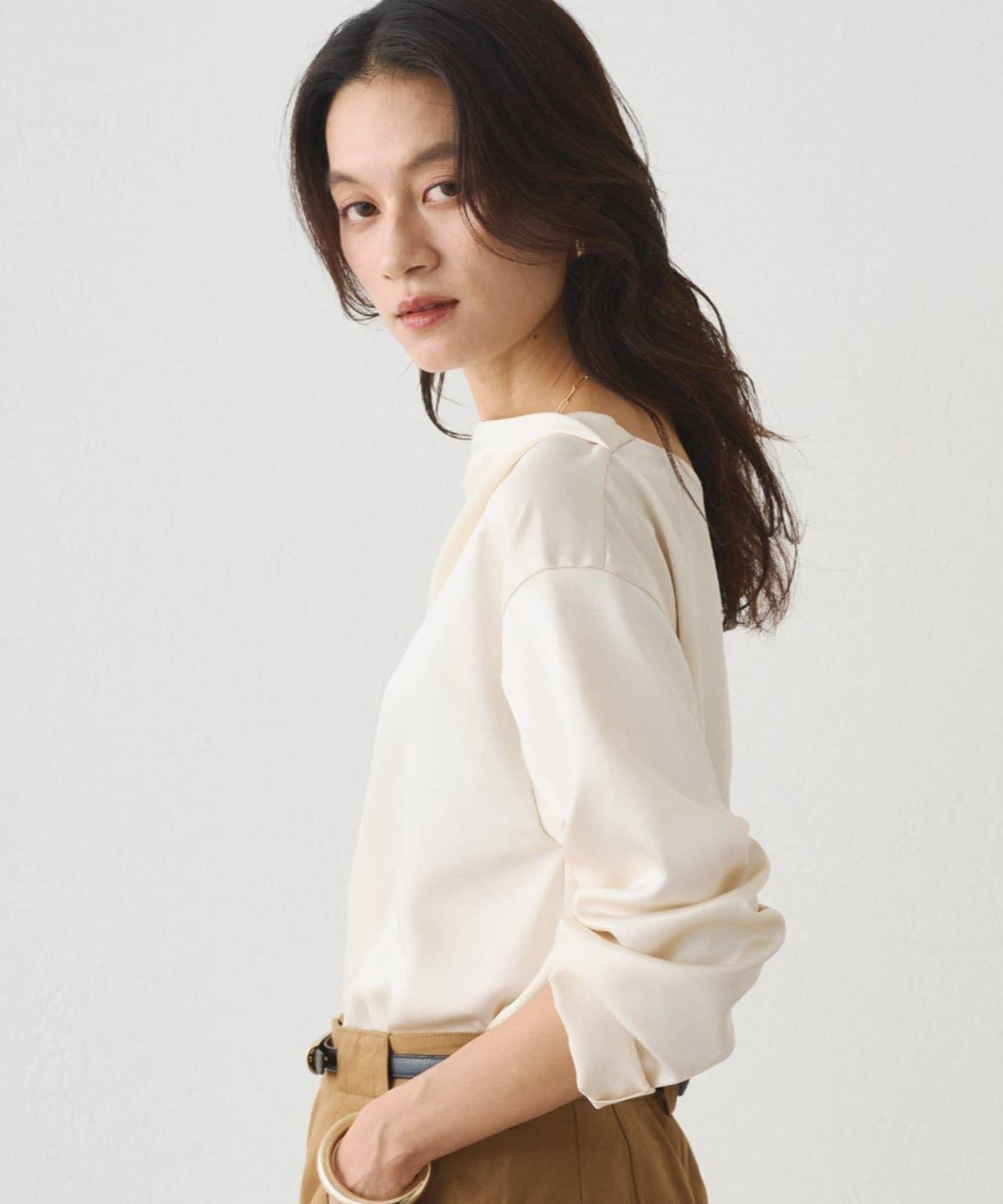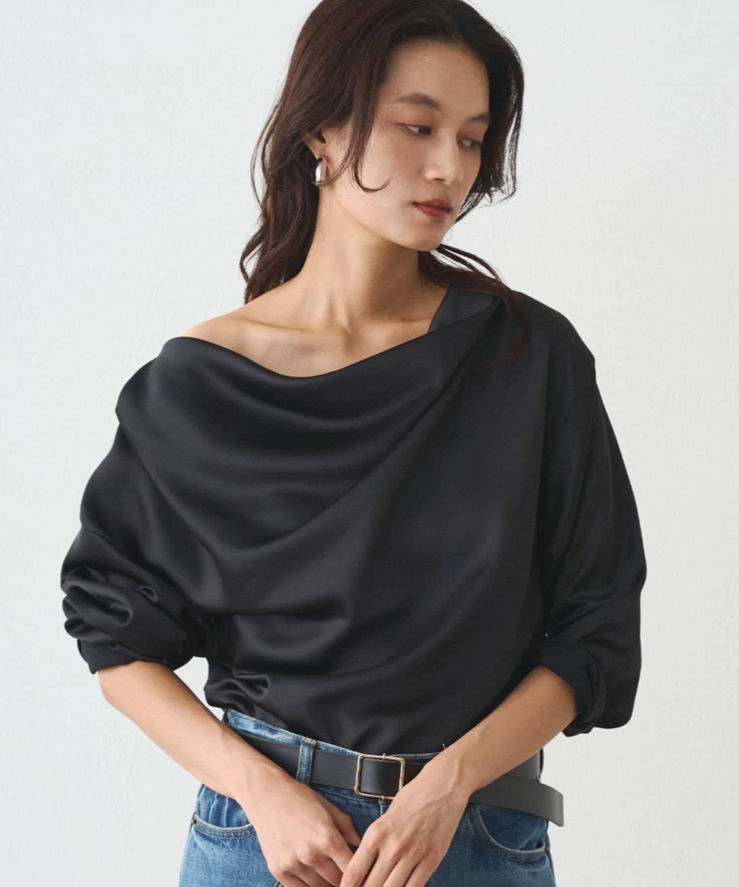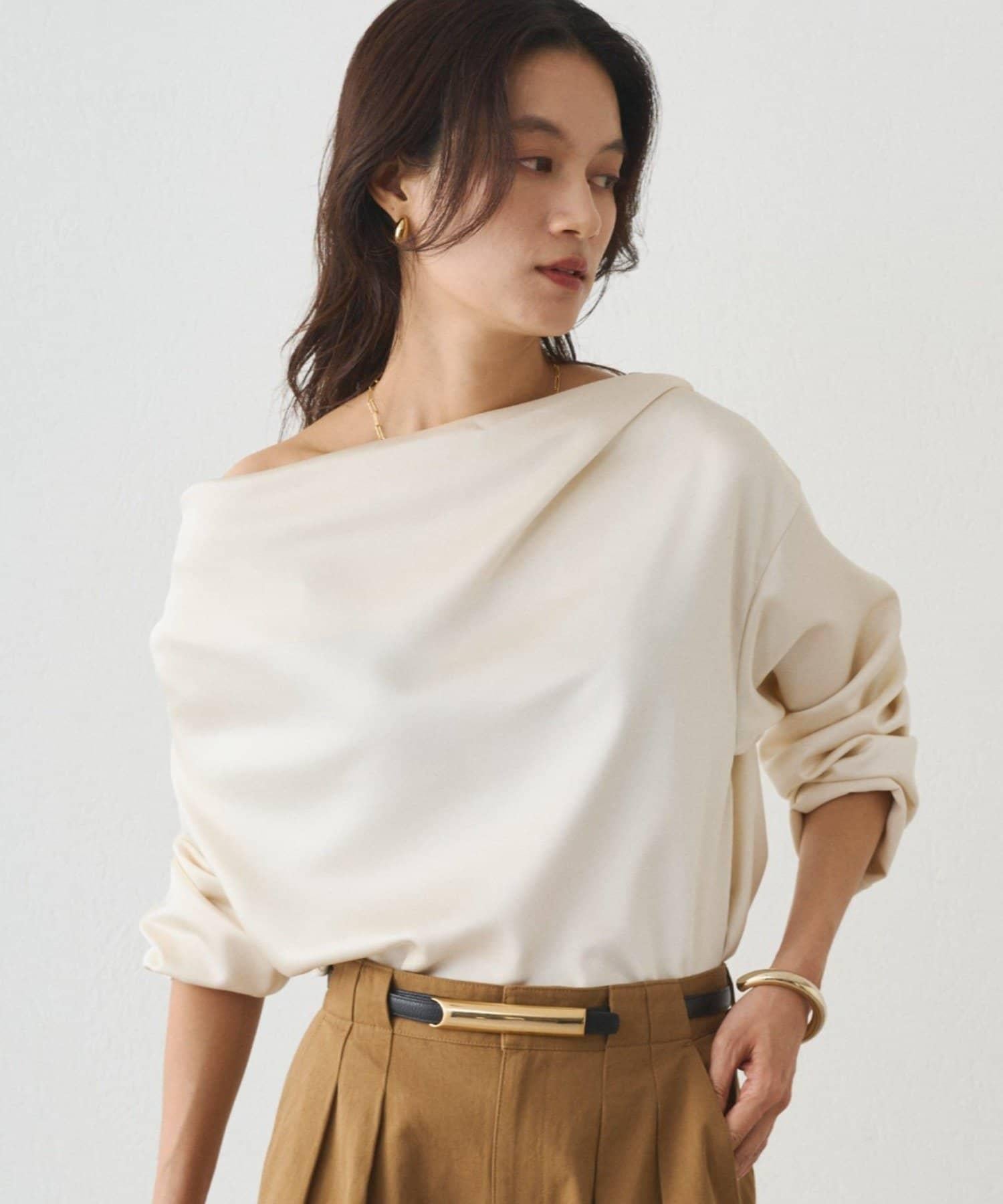 垂墜的領口能很好地展現肩部線條,因此我們建議單肩穿著。