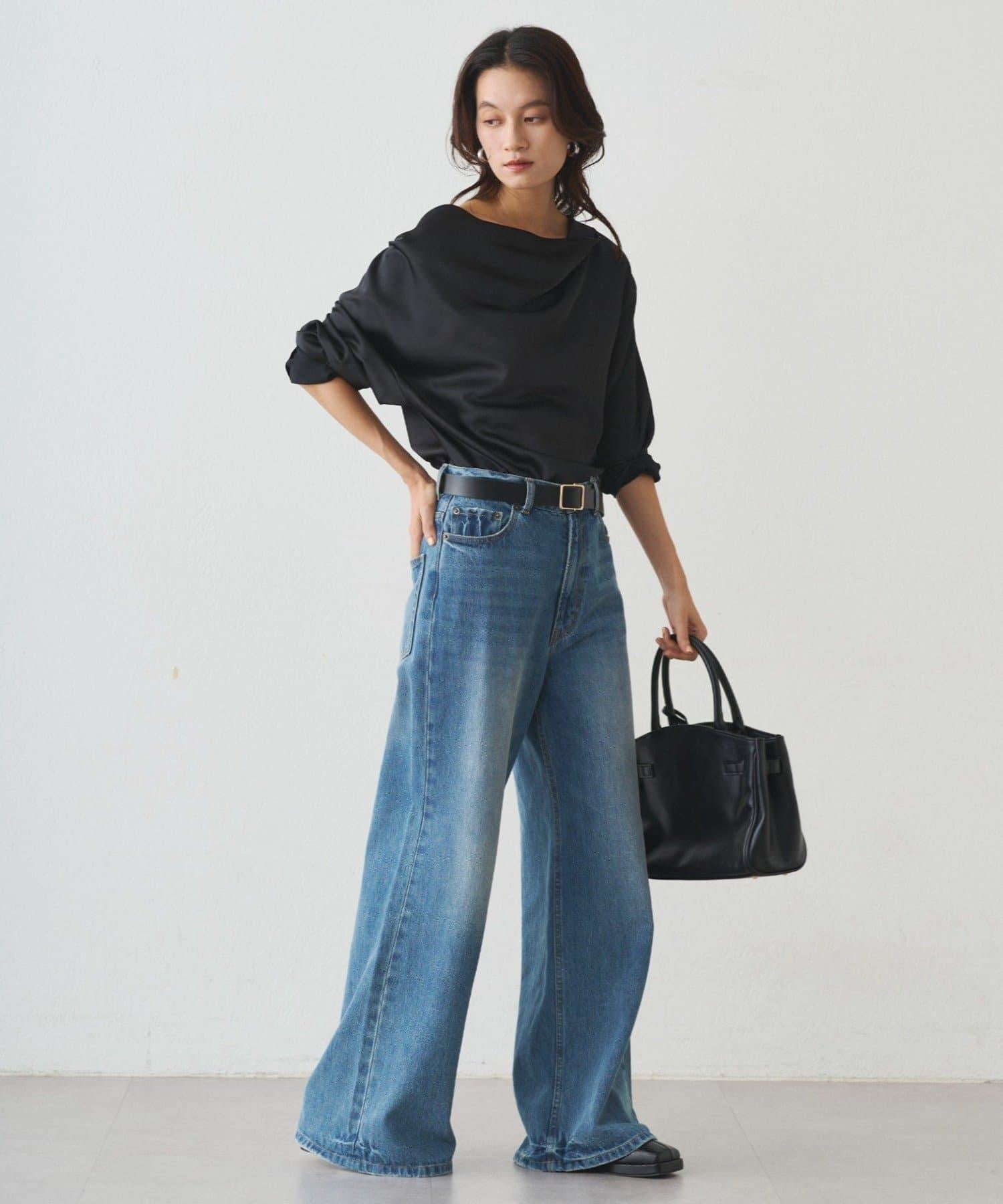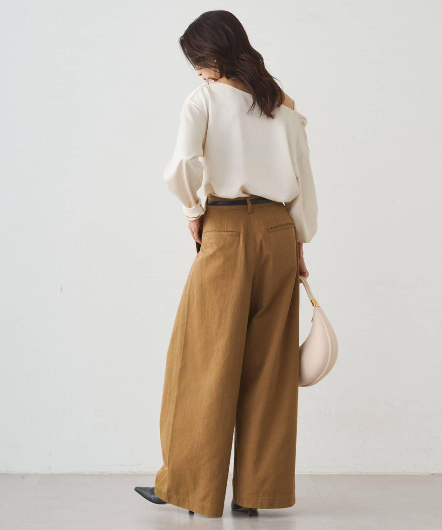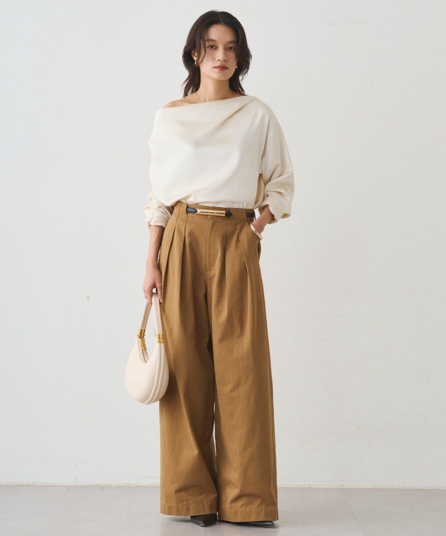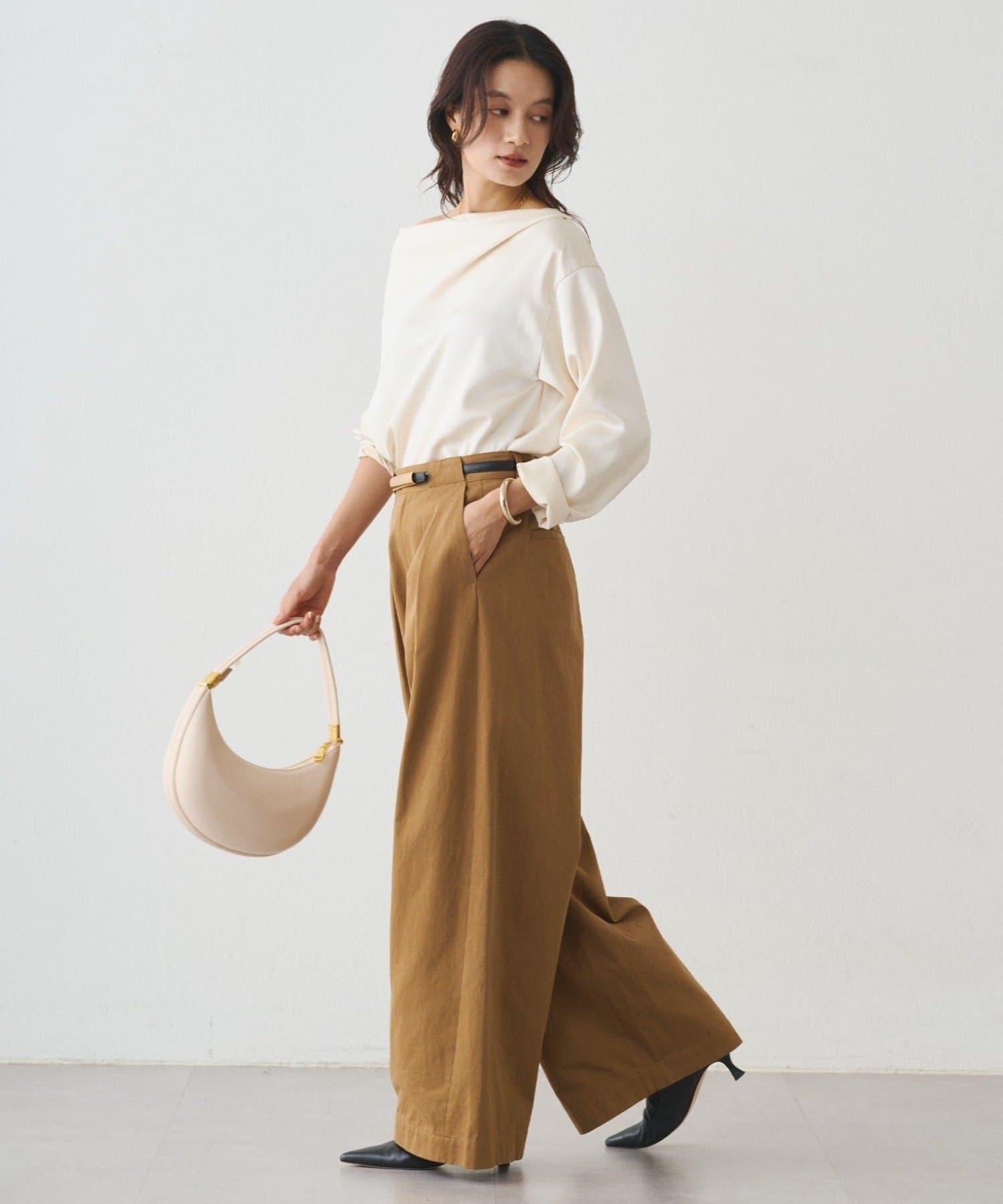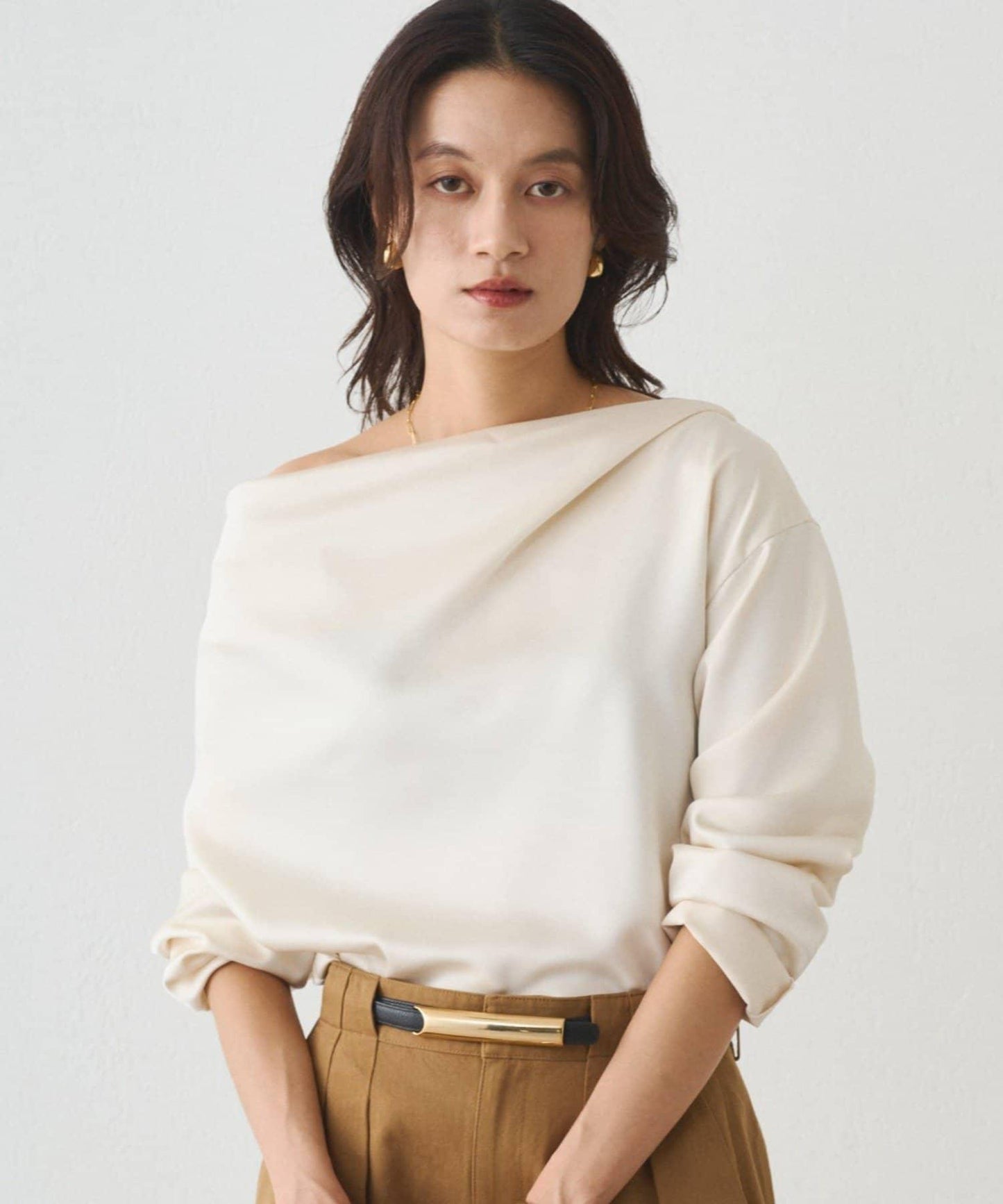 垂墜的領口能很好地展現肩部線條,因此我們建議單肩穿著。