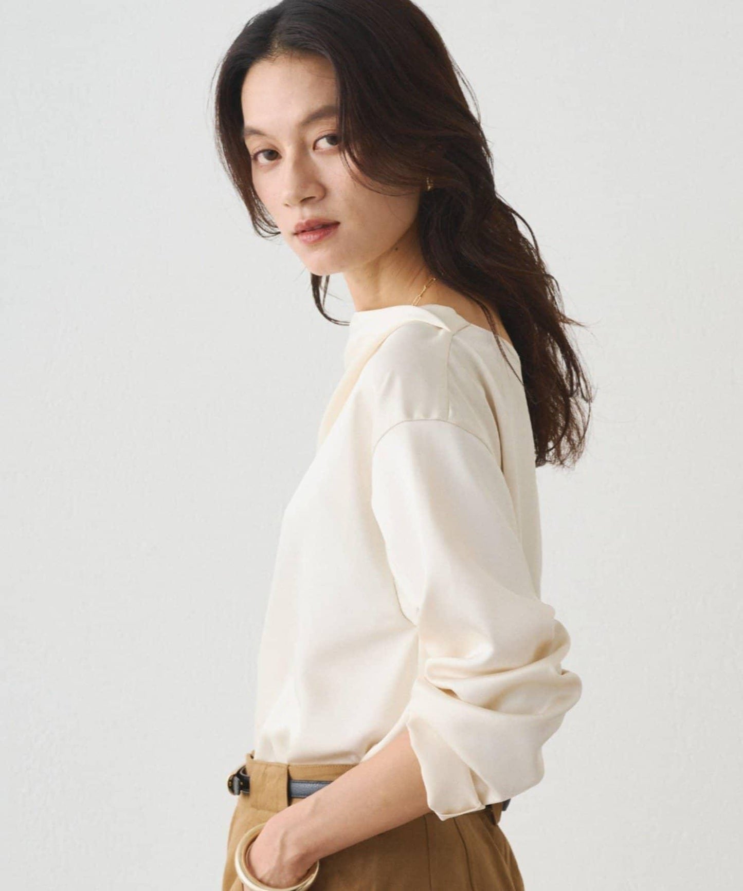 稍厚的緞面面料散發著優雅的光澤,即使是米白色,您也不必擔心透明度問題。