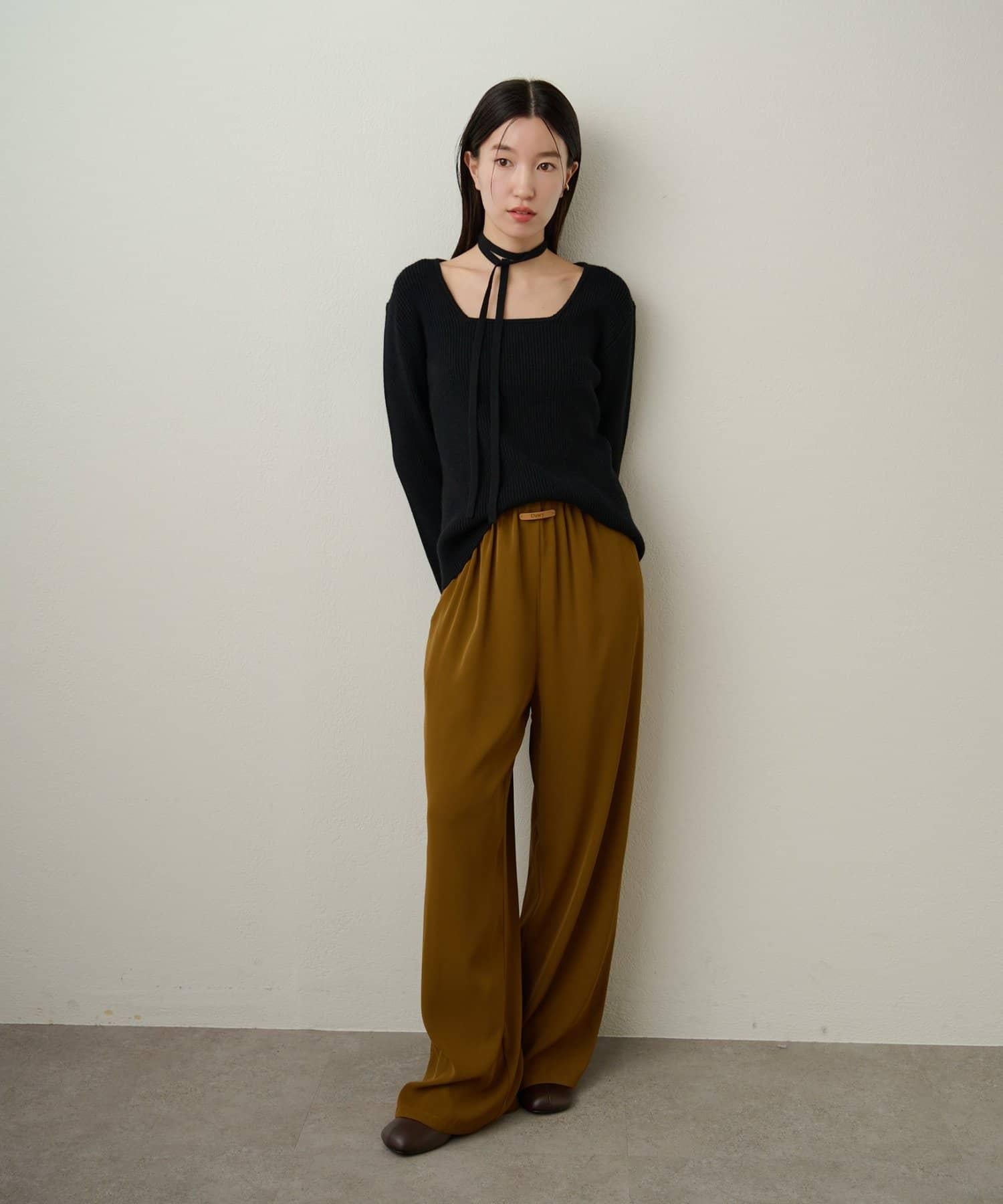 腰部隨意貼上的 "Dewy "皮質標籤,更添協調感。