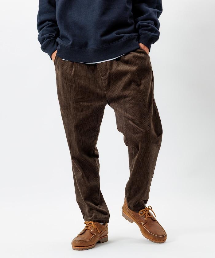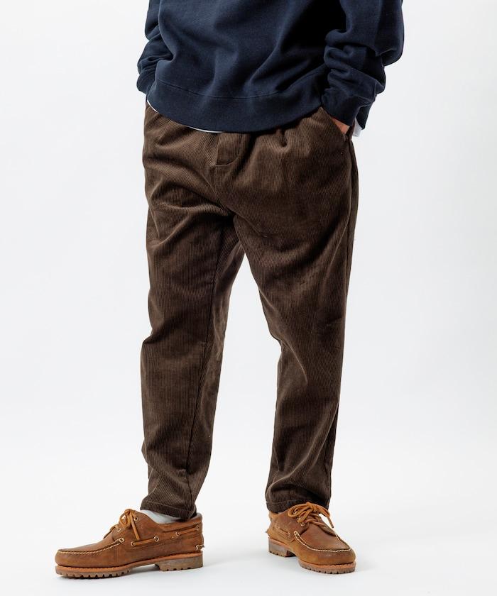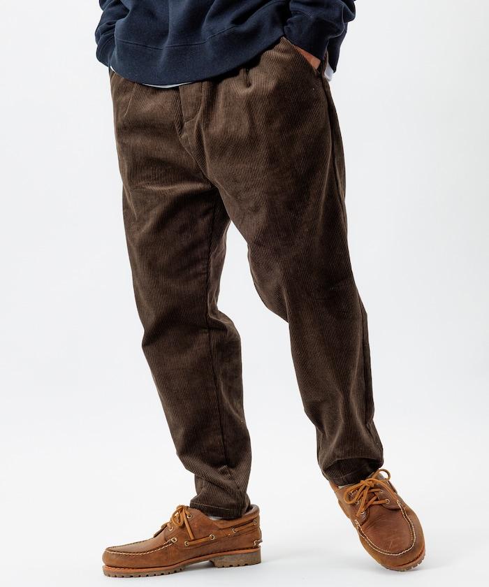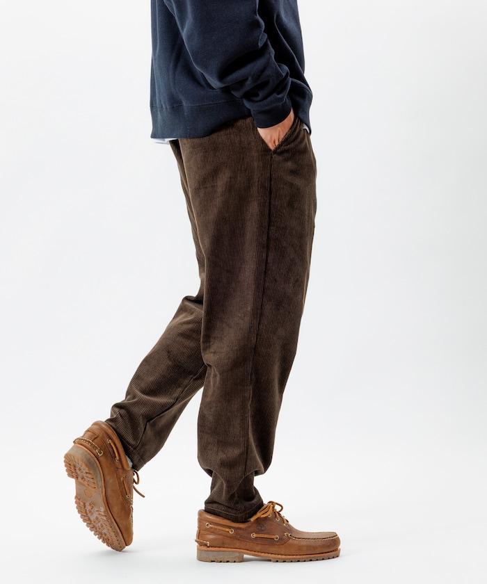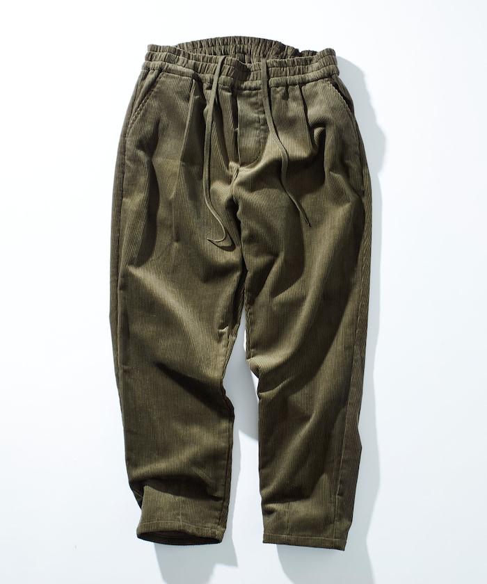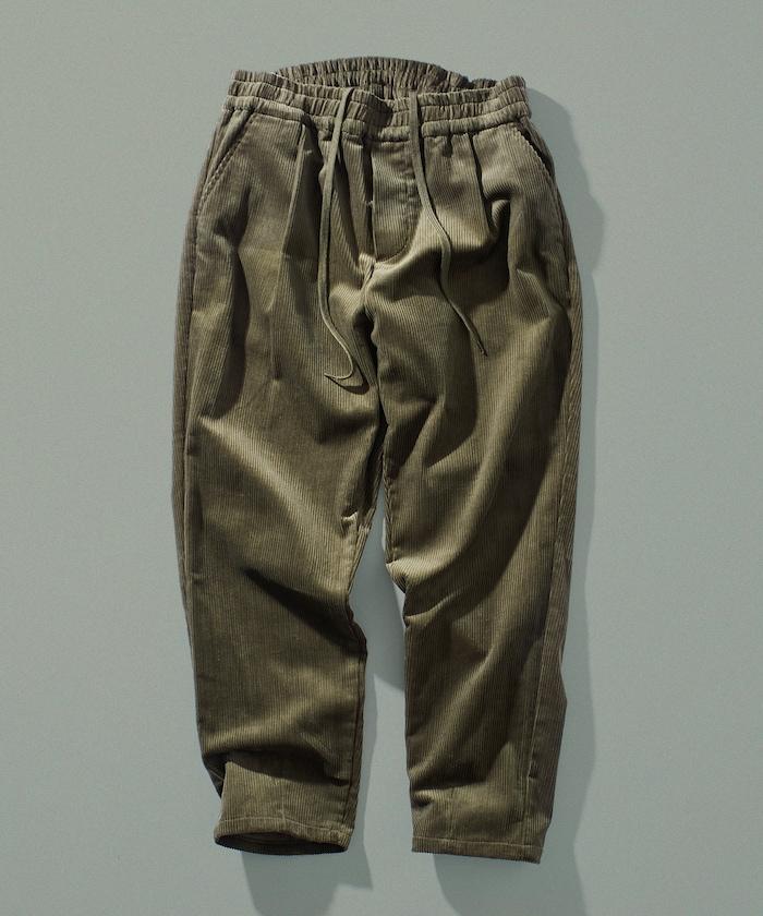 這款時尚簡便的褲子採用燈芯絨面料製成,是秋冬季的主打面料。