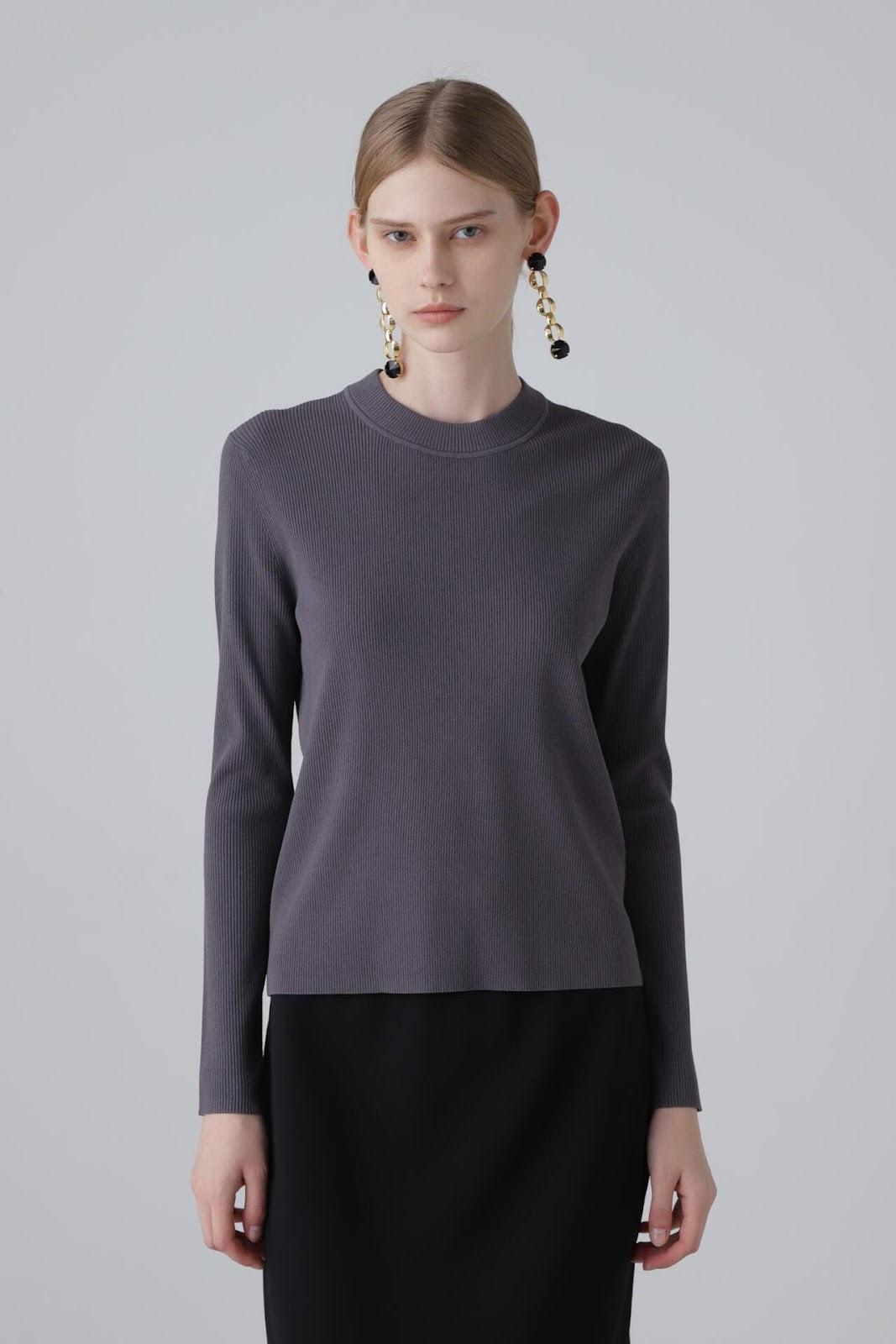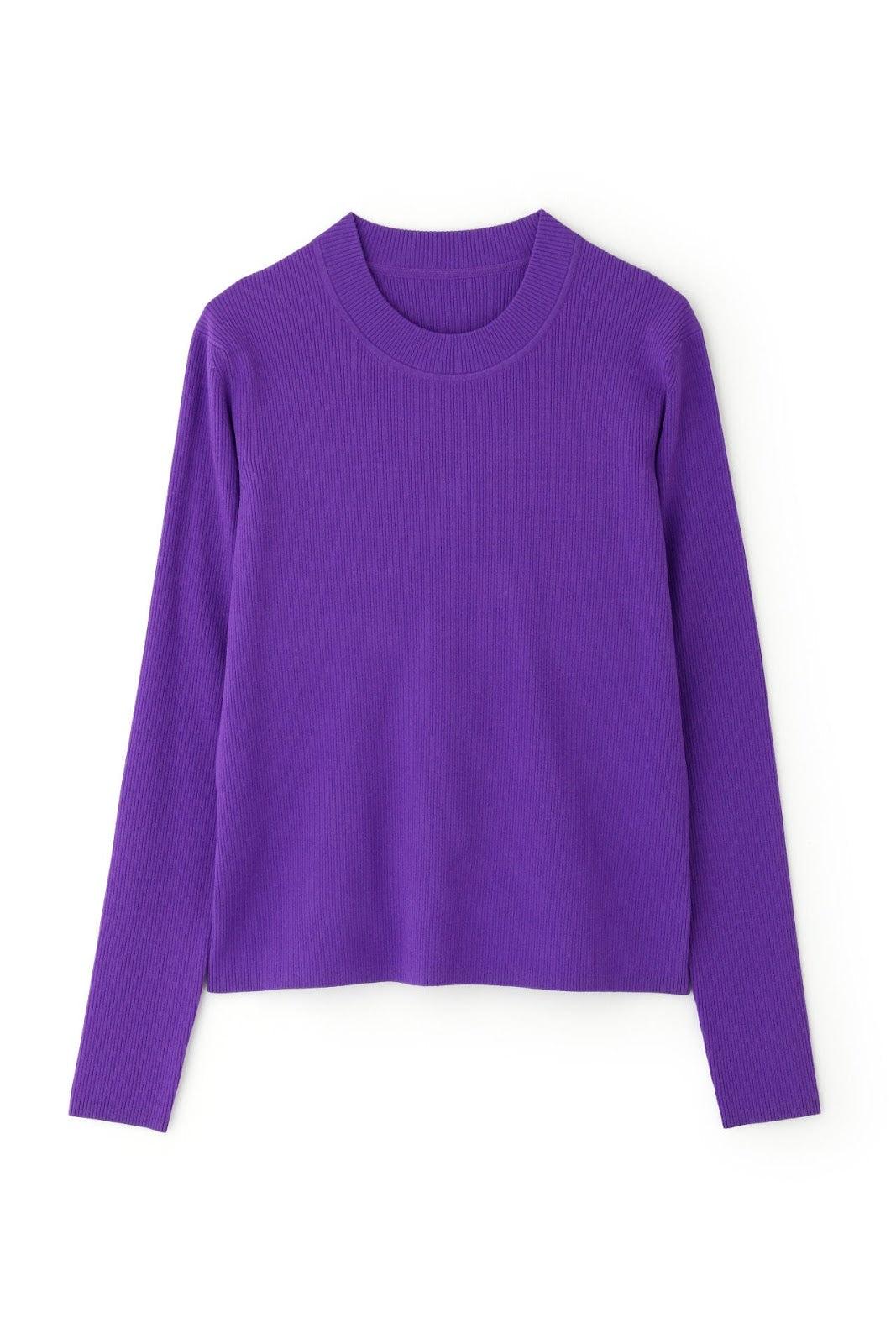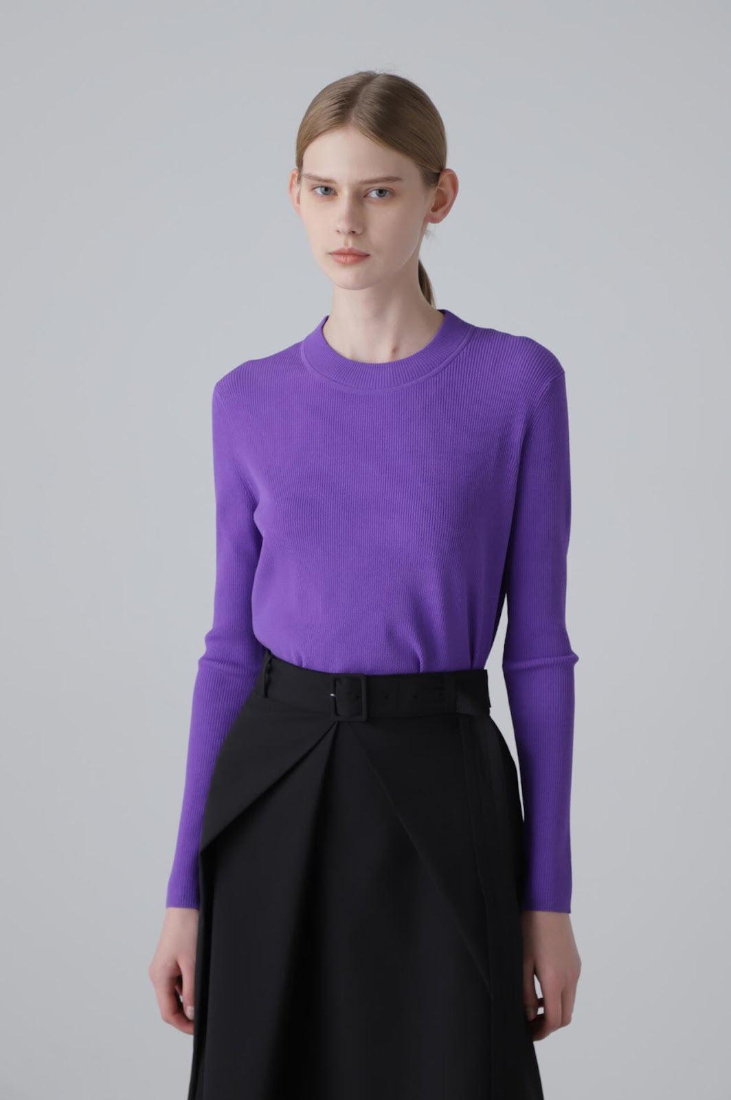 ADORE 經典圓領羅紋針織衫,有純灰、微妙的米色和亮紫色三種新色。這款針織衫由人造絲-滌綸混紡而成,PBT 滌綸的耐用性和伸縮性減少了人造絲的懸垂感,並賦予針織衫低調的光澤。