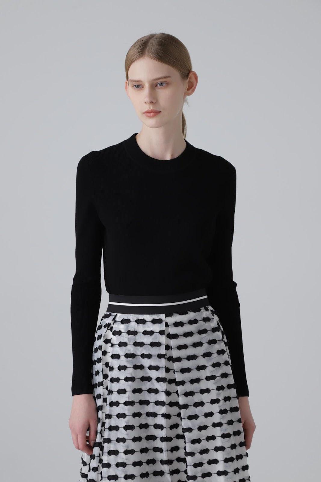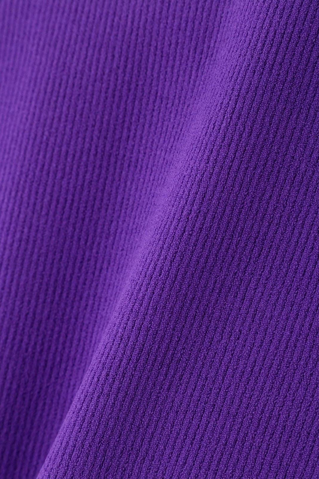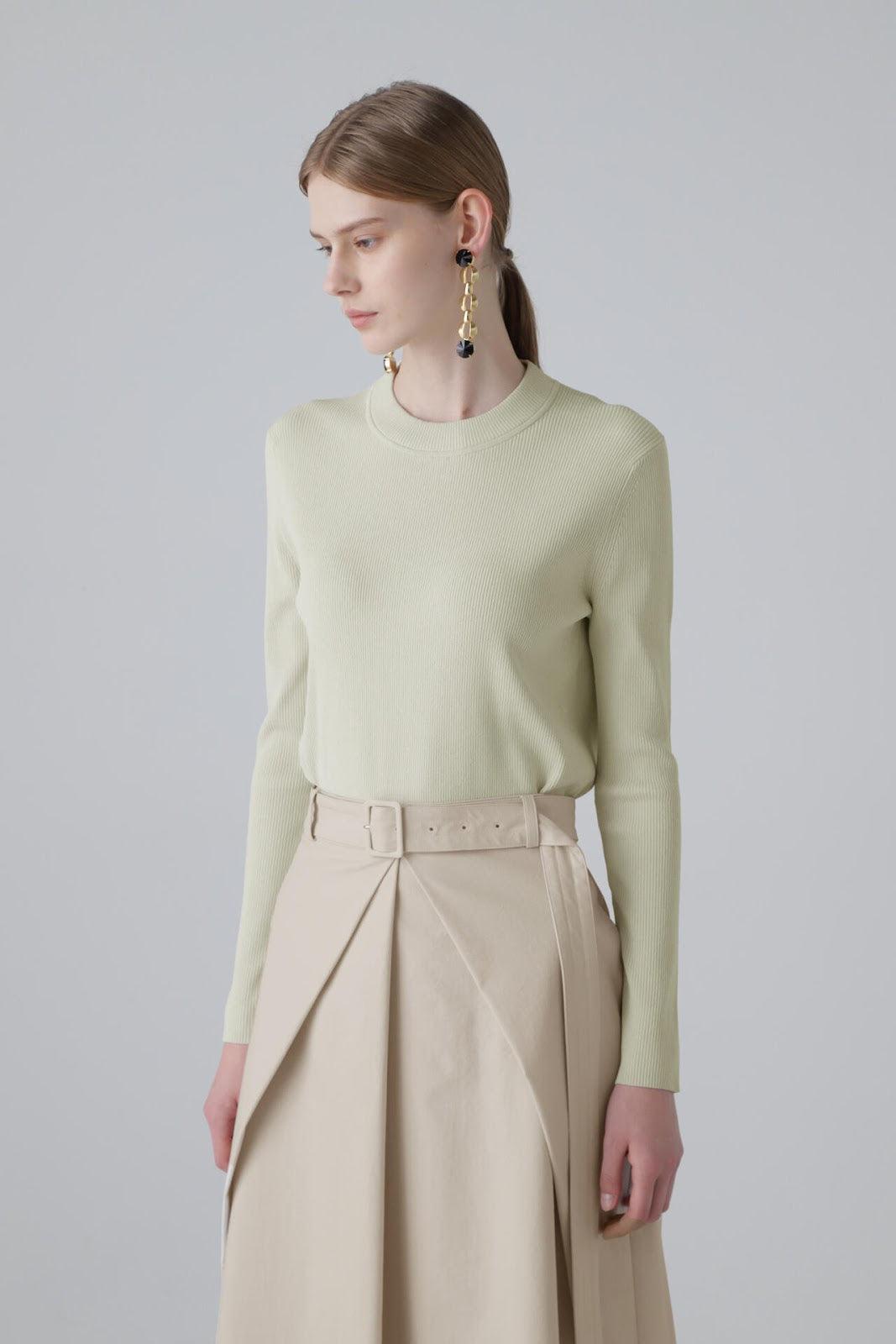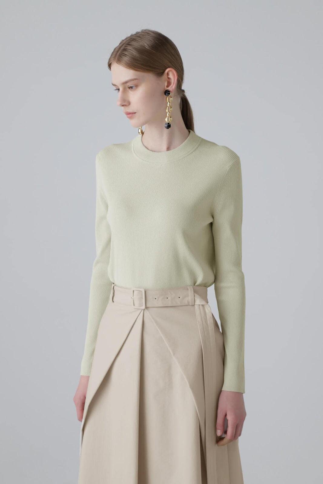 ADORE 經典圓領羅紋針織衫,有純灰、微妙的米色和亮紫色三種新色。這款針織衫由人造絲-滌綸混紡而成,PBT 滌綸的耐用性和伸縮性減少了人造絲的懸垂感,並賦予針織衫低調的光澤。