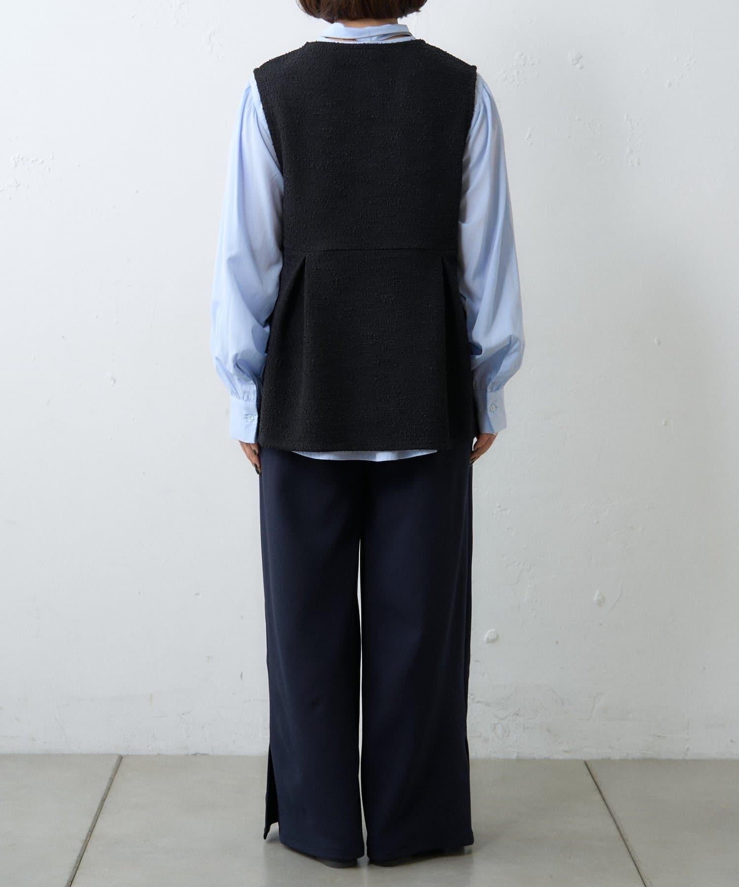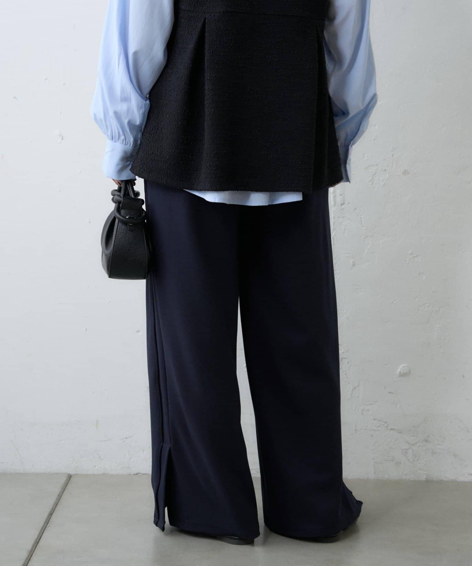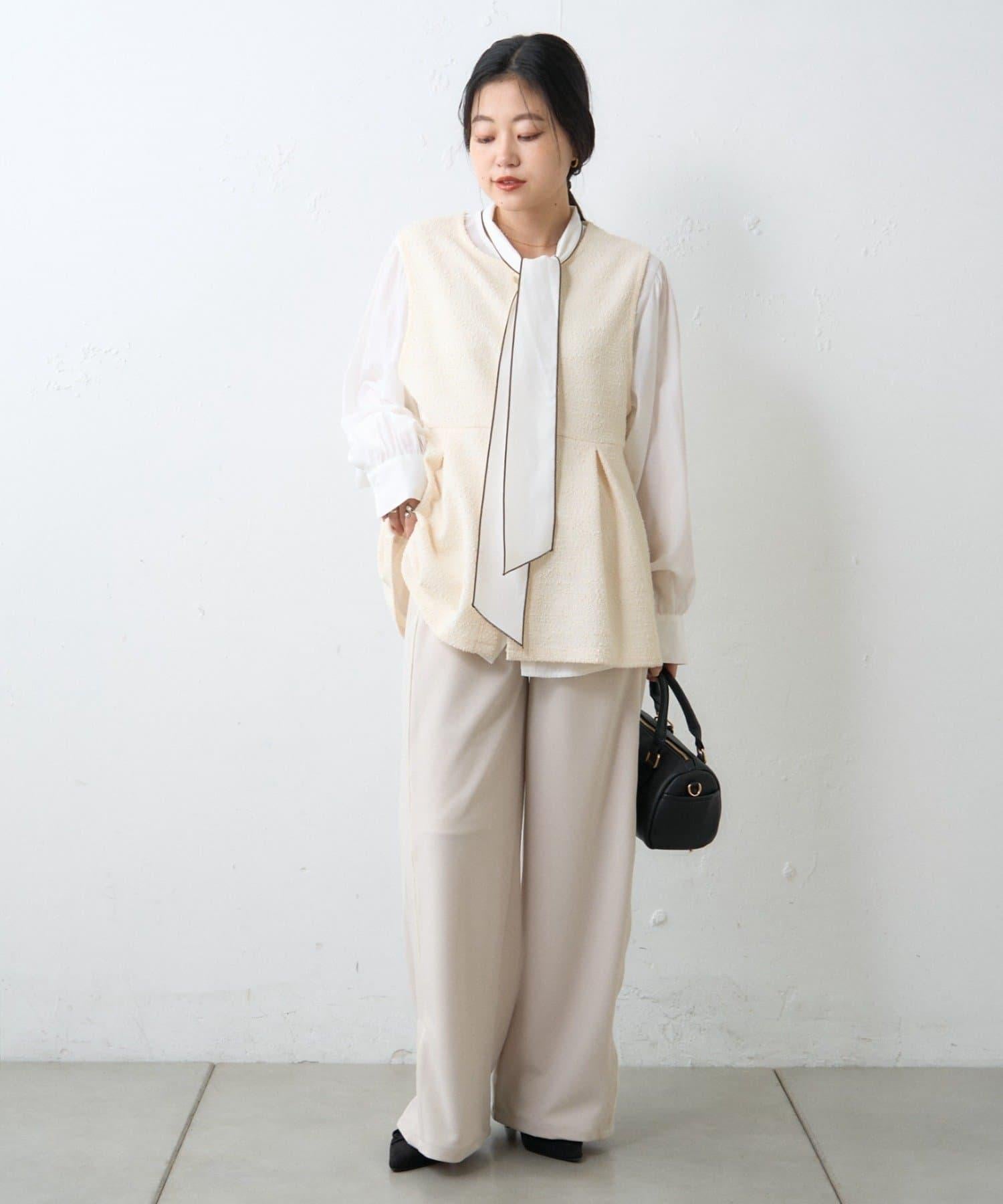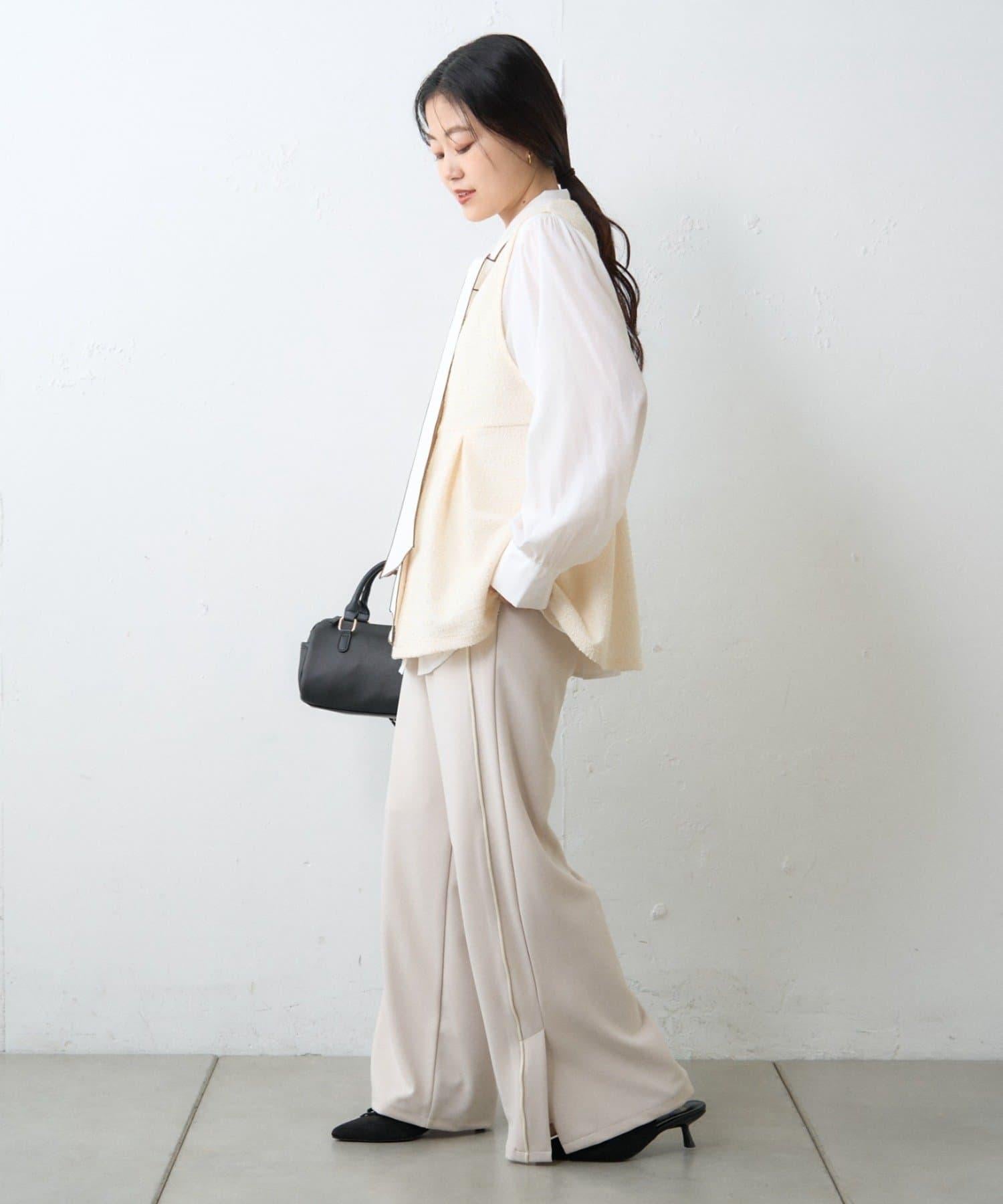【場合】帶粗花呢馬甲拼接滾邊長褲