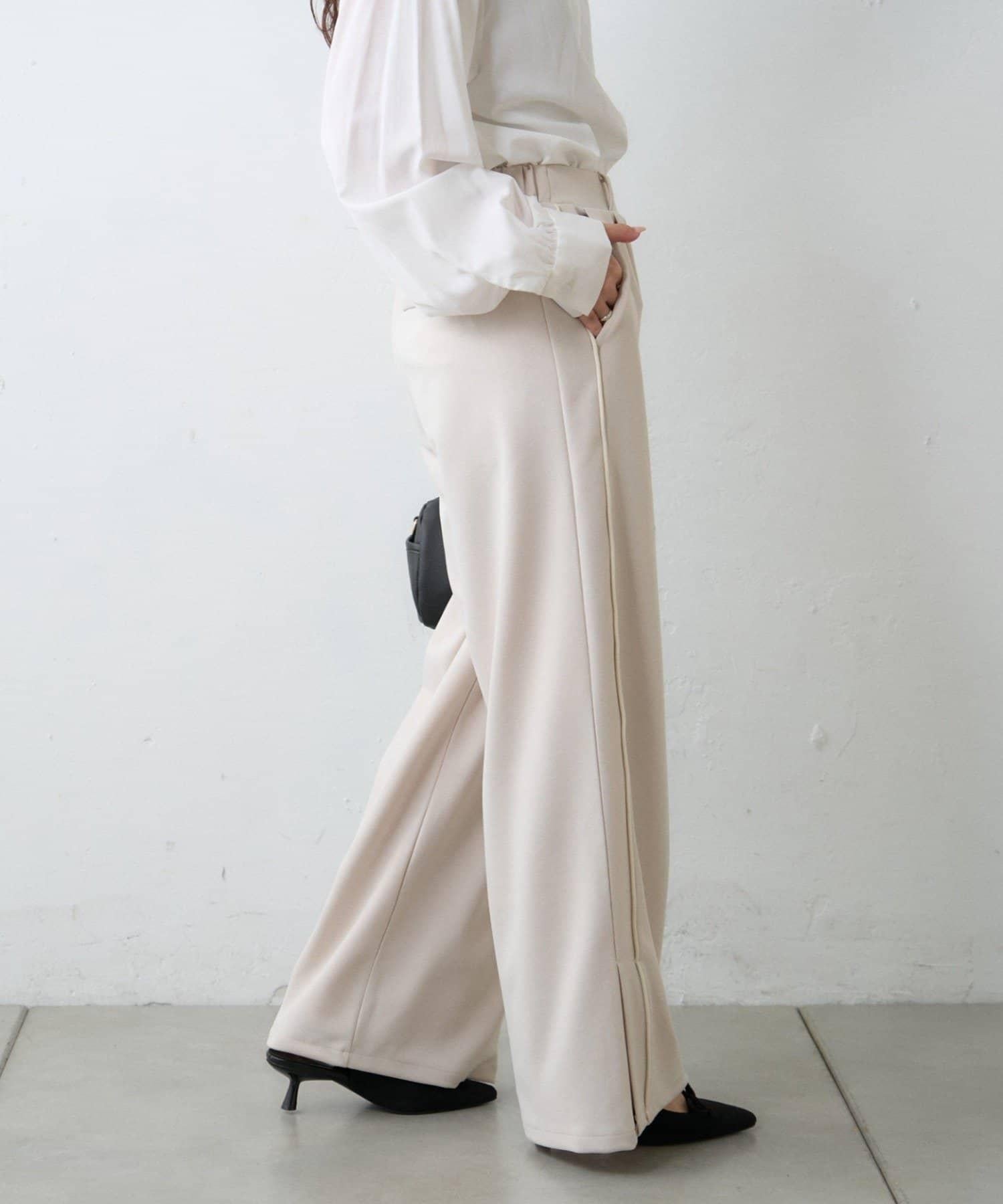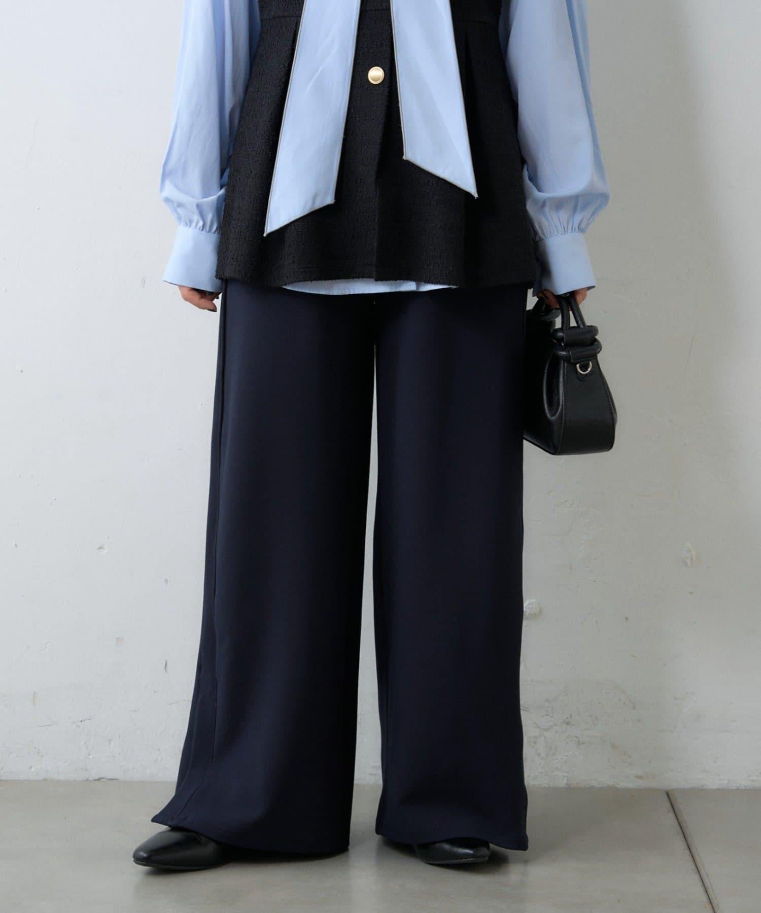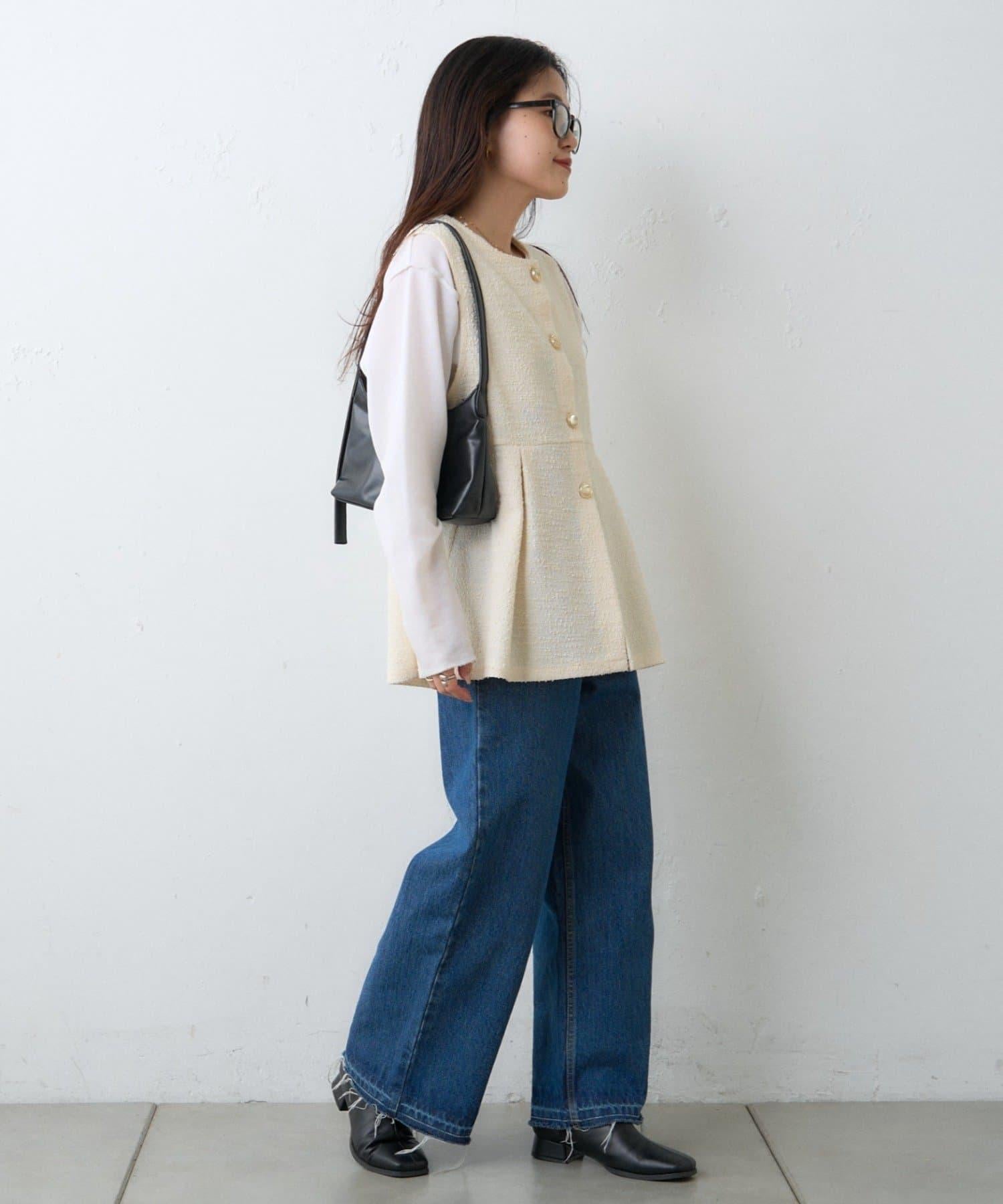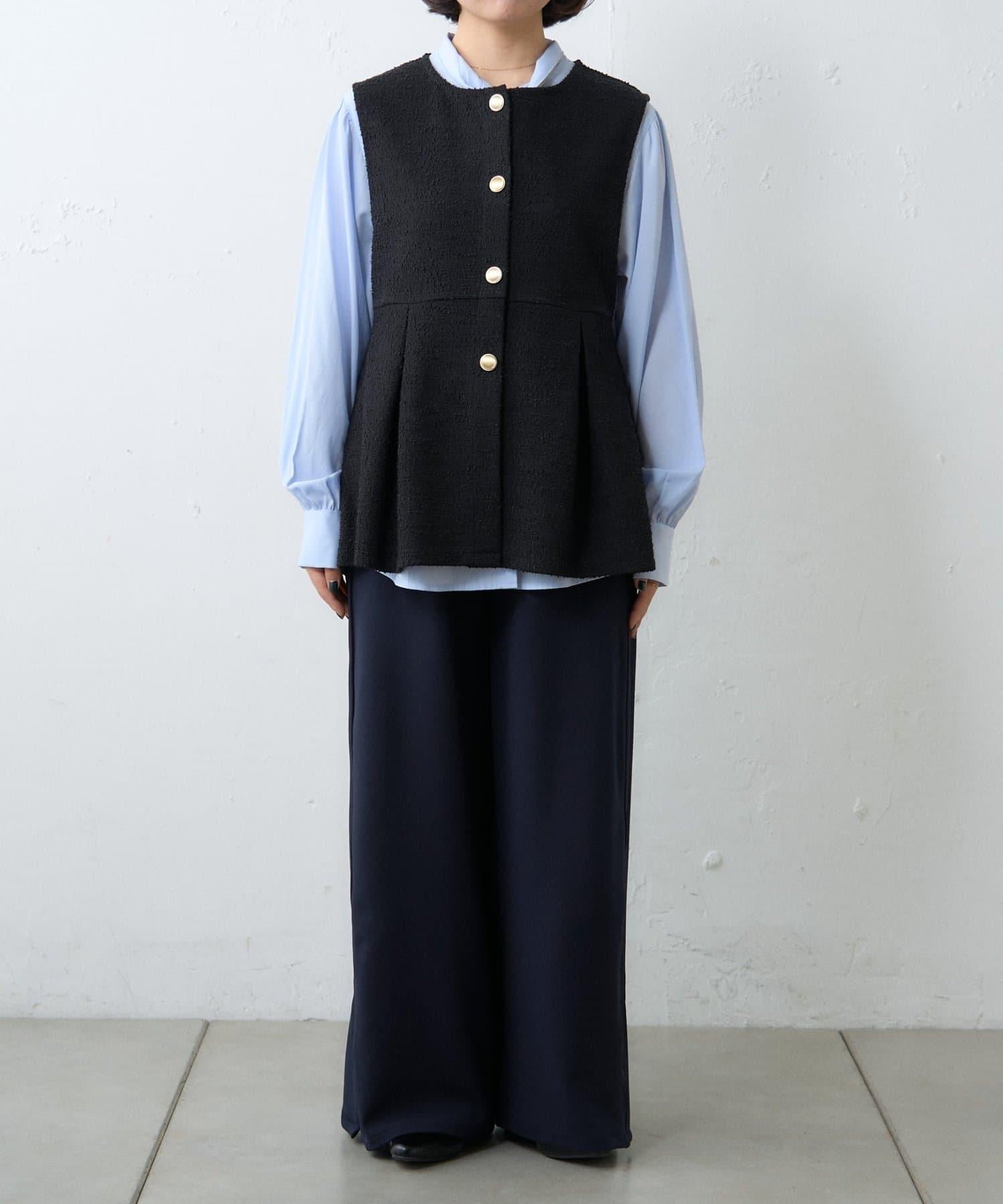 【場合】帶粗花呢馬甲拼接滾邊長褲