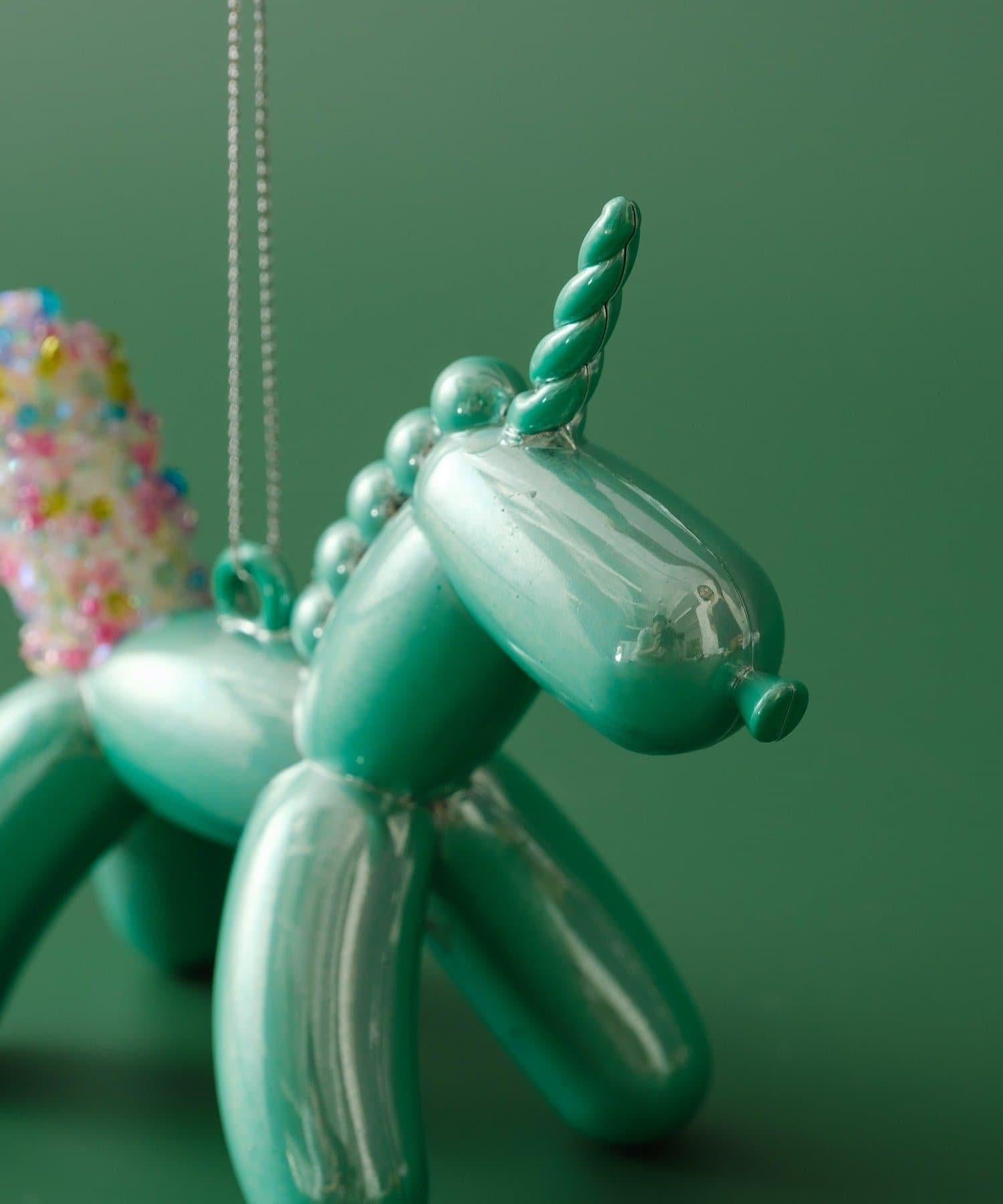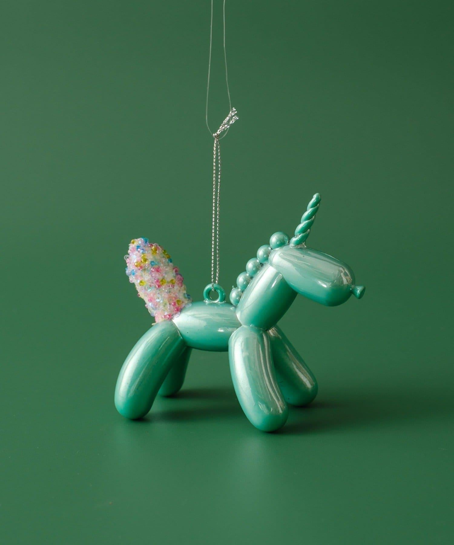 獨角獸形狀的裝飾品,具有氣球般的有趣質感。