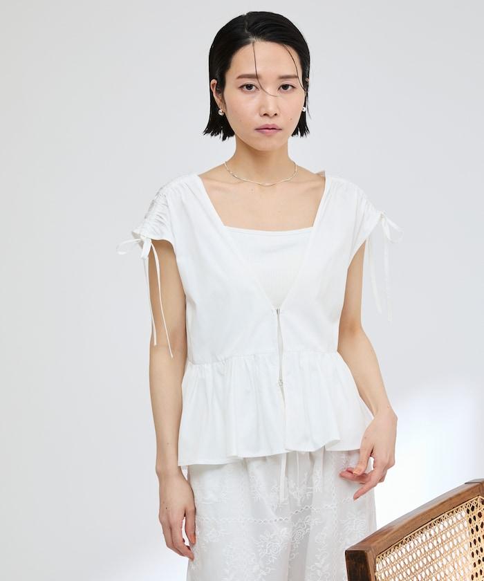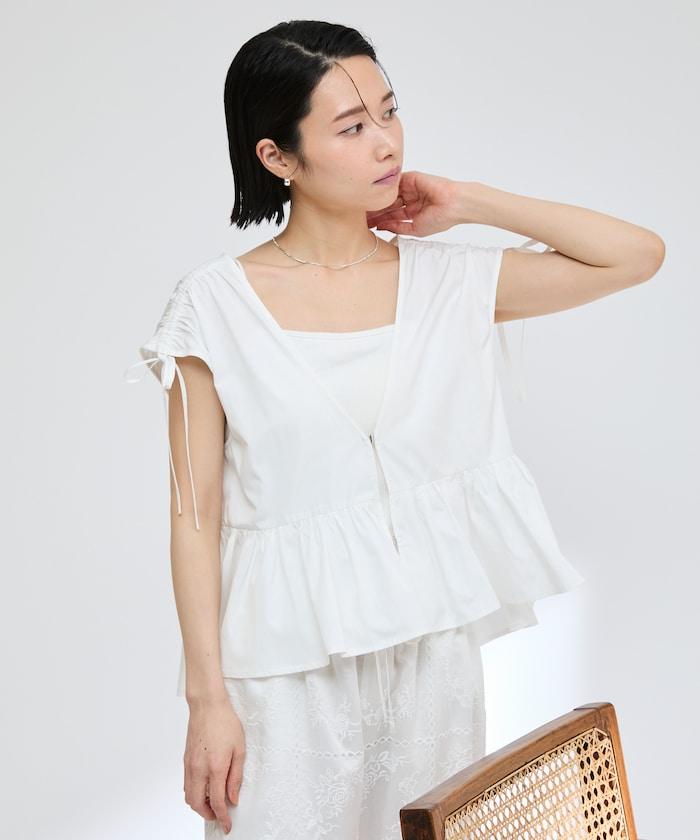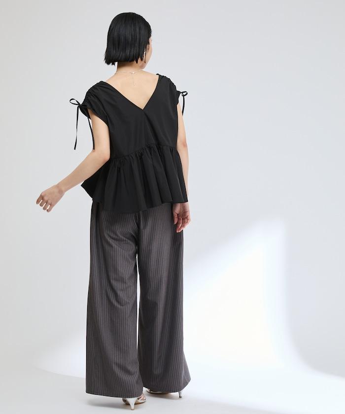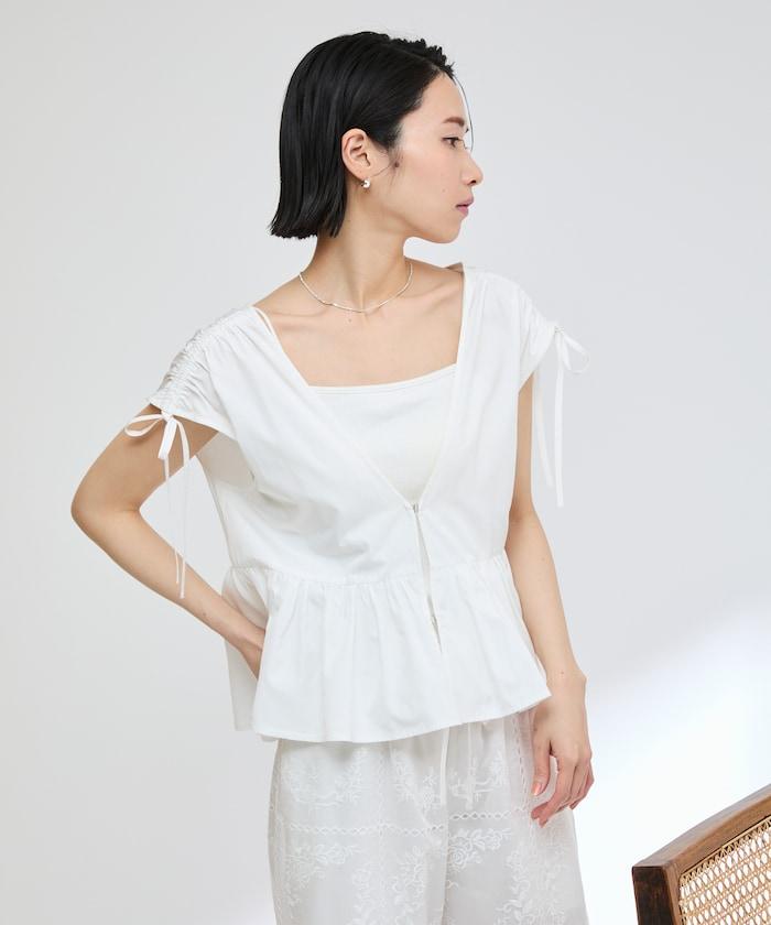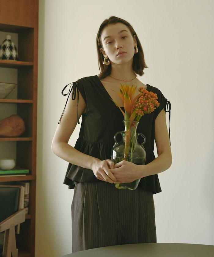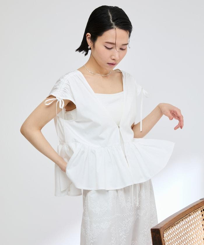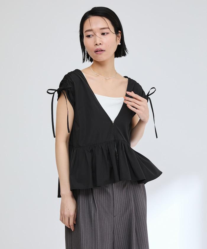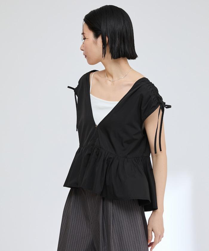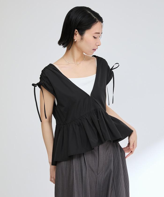 塔夫塔垂褶上衣 / 法式短袖垂褶上衣