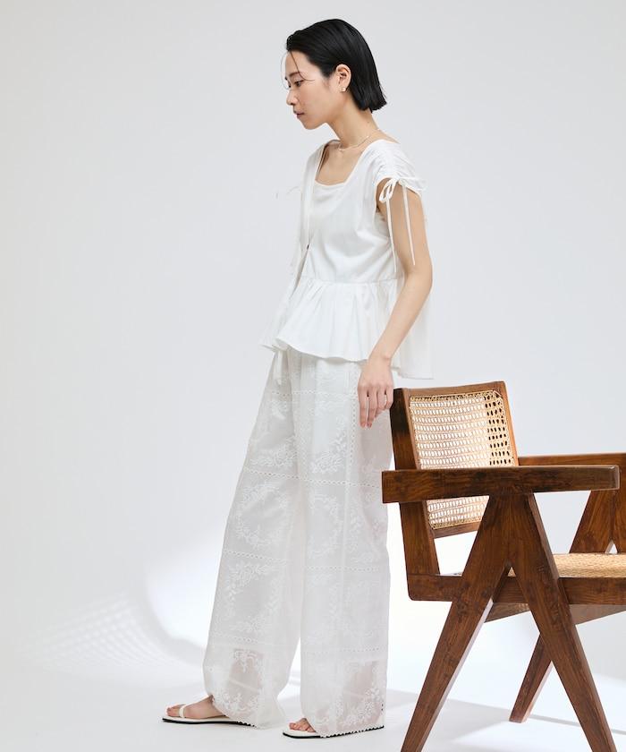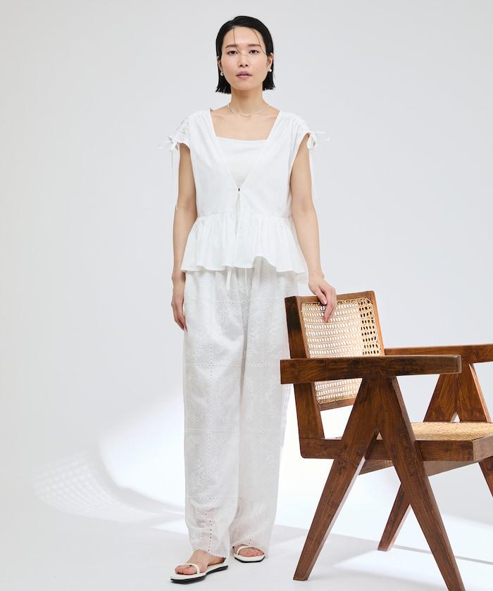 這款上衣的面料具有光澤和彈性,因此即使與休閒單品搭配也非常漂亮。