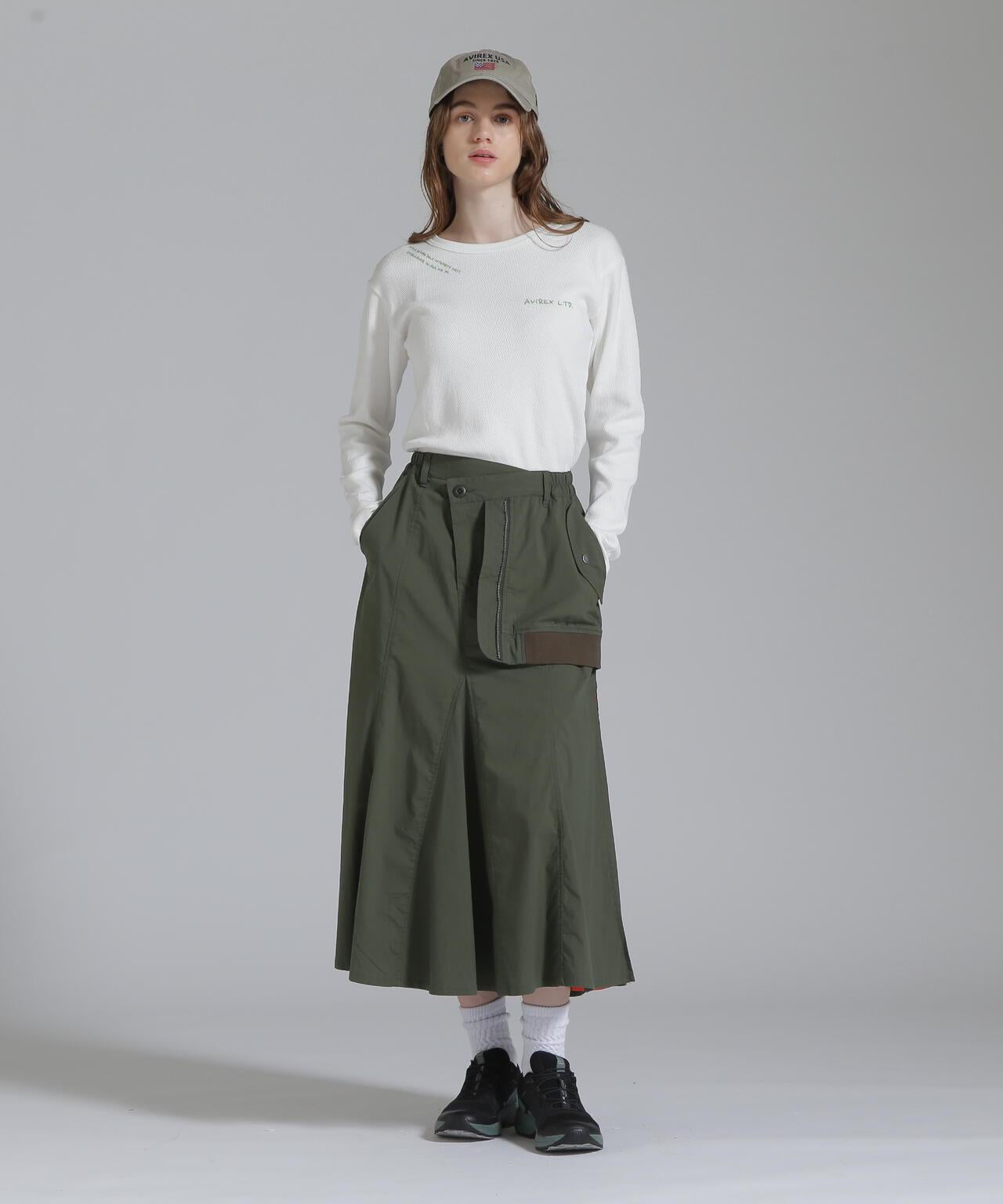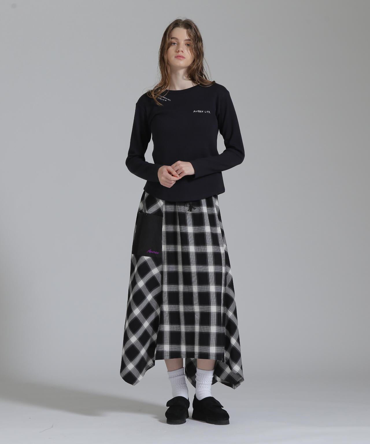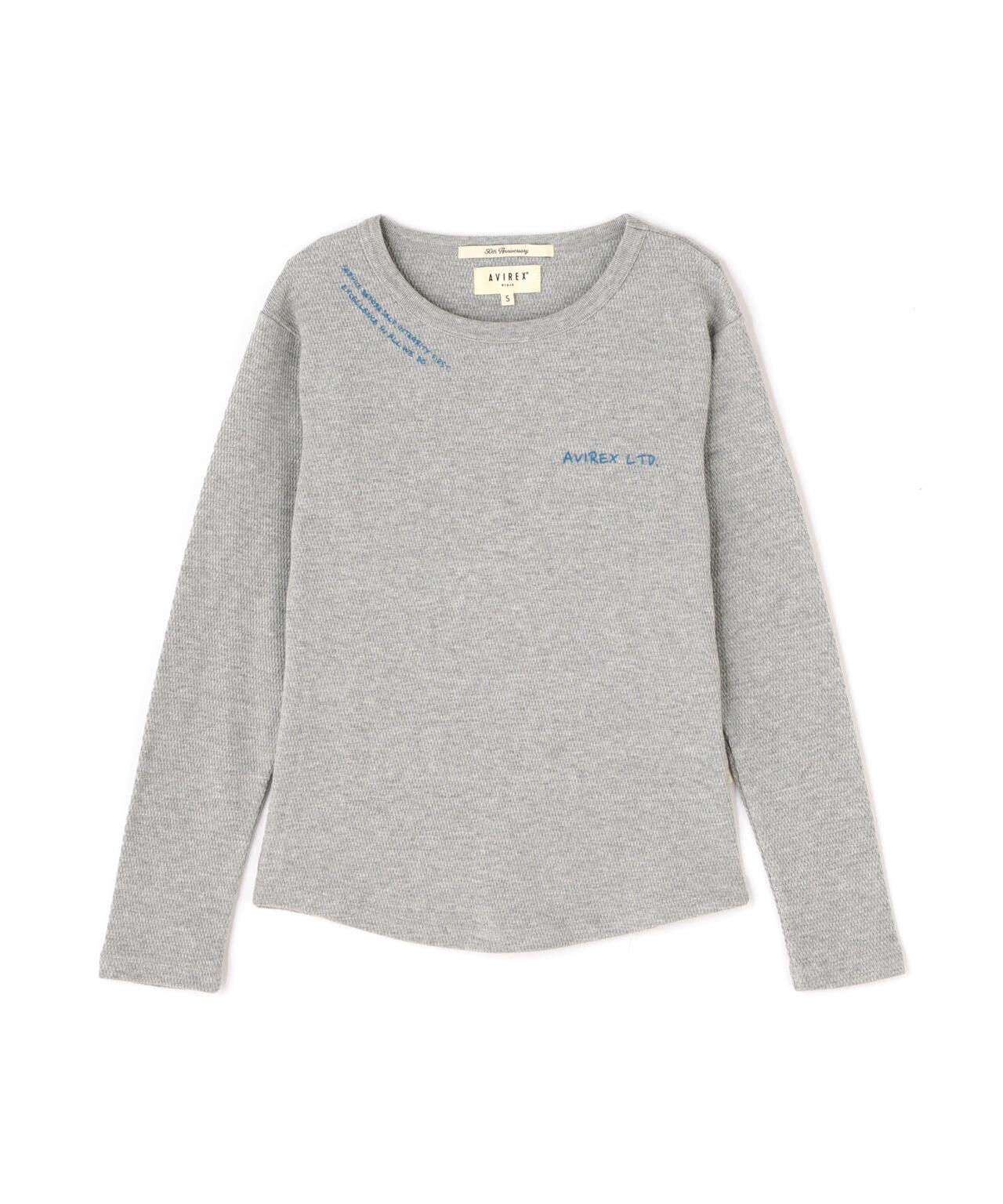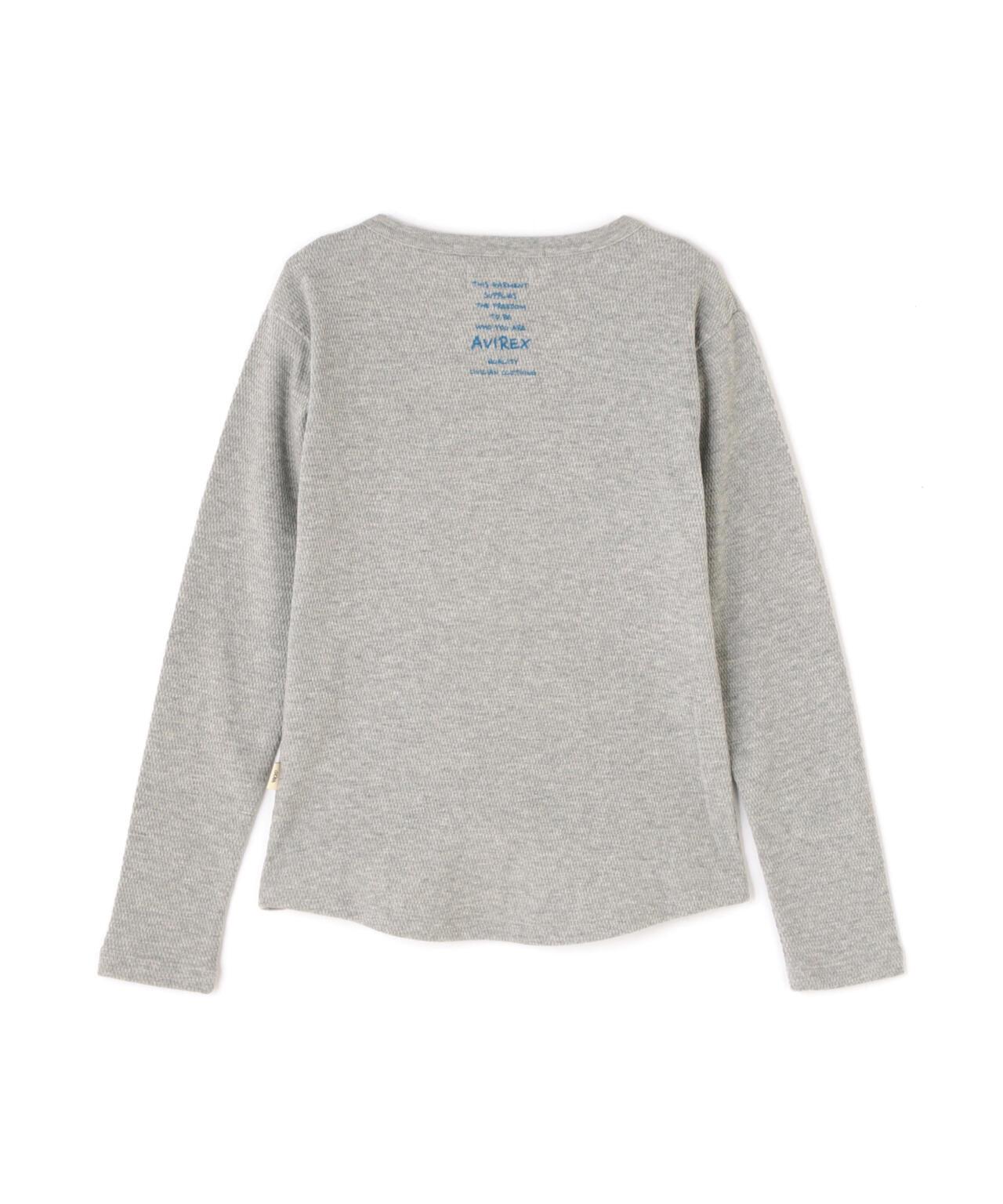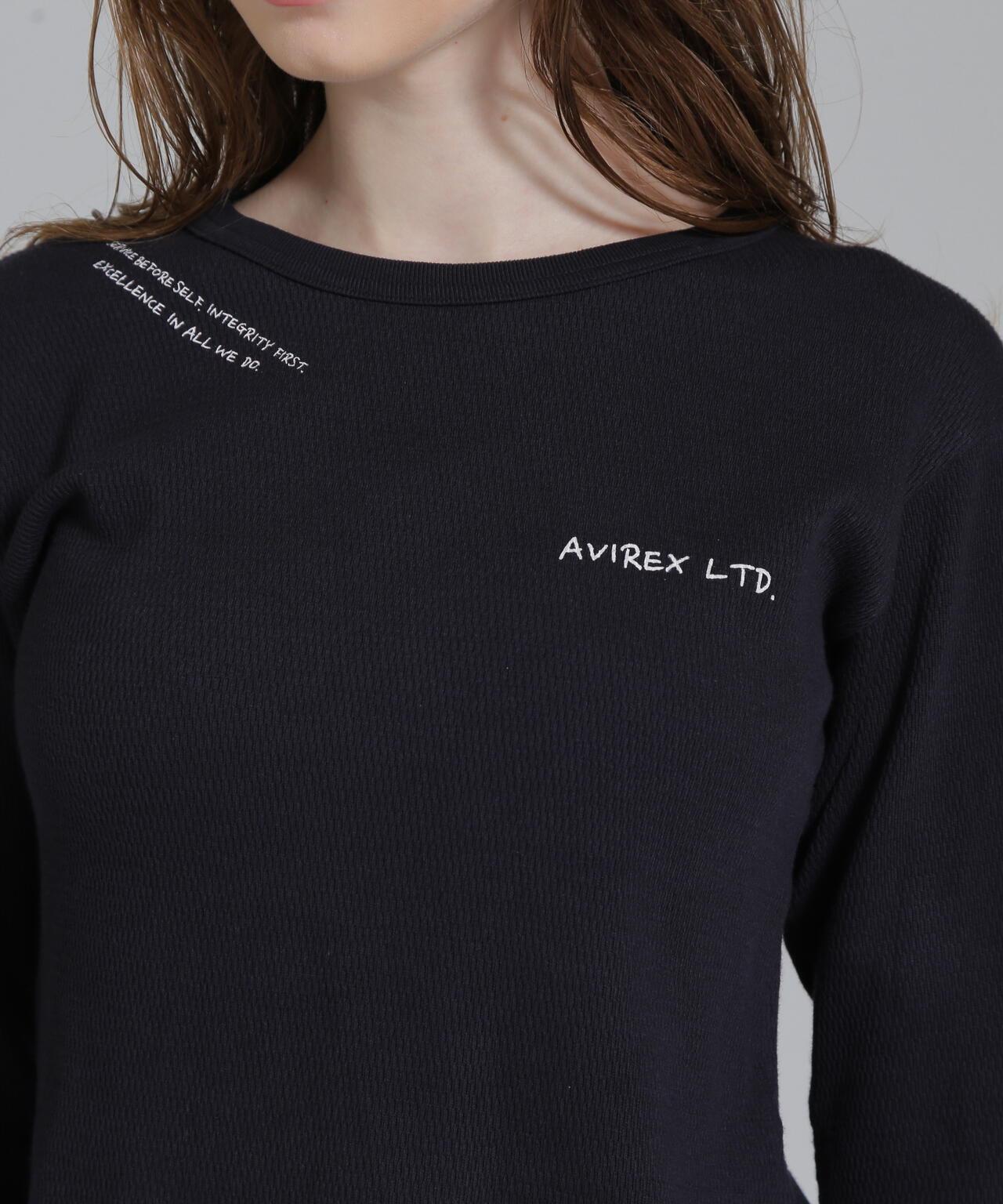 AVIREX 官方直營店] 2025 春季新款多色印花蜂巢華夫格T恤 - 採用柔軟且富有彈性的蜂巢華夫格面料的長袖T恤 - 以生動的刺繡風格印花為主 - 稍微沿身體線條設計、下襬呈圓形,輪廓優美。推薦造型簡潔的輪廓與裙裝和寬鬆的下裝非常搭配。還可搭配簡單的軍裝造型。AVIREX WOMAN] 該系列將正宗軍裝的功能性和設計感投射到女式休閒裝上。作為一個獨特而永恆的女裝品牌,它以智慧、自由、好奇和高貴著稱。