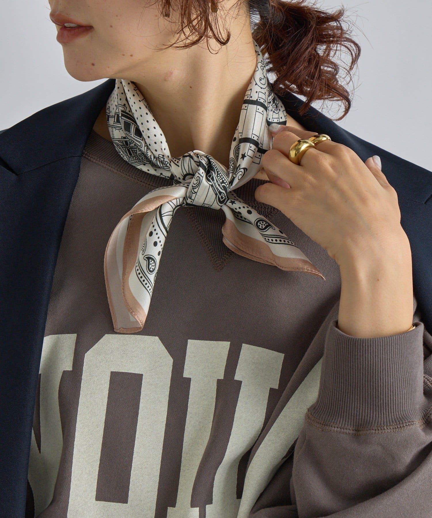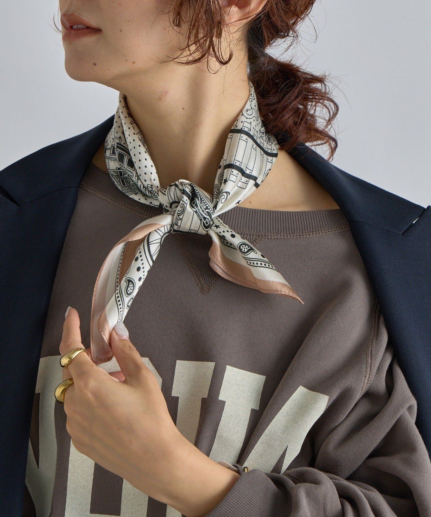 它既可以圍在脖子上,也可以系在包包的手柄上。