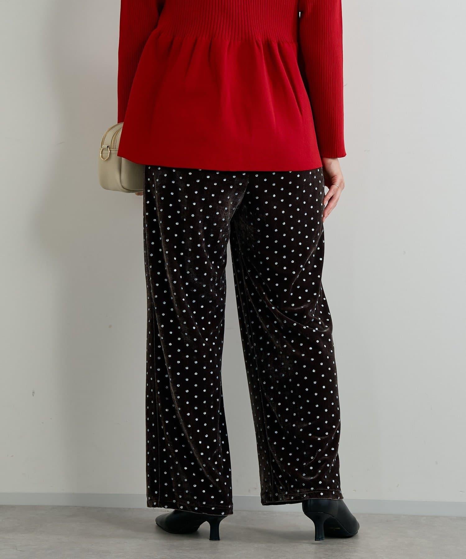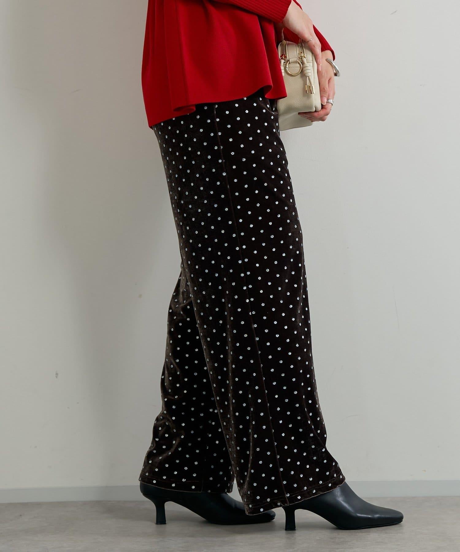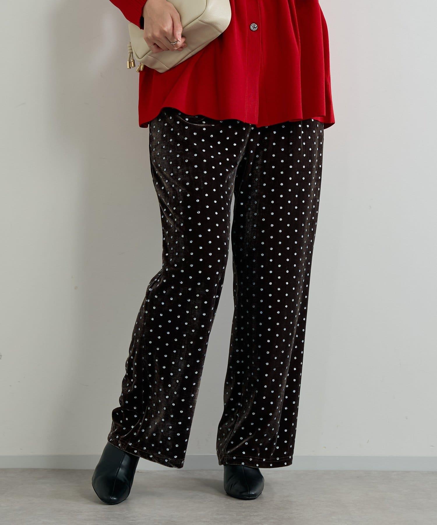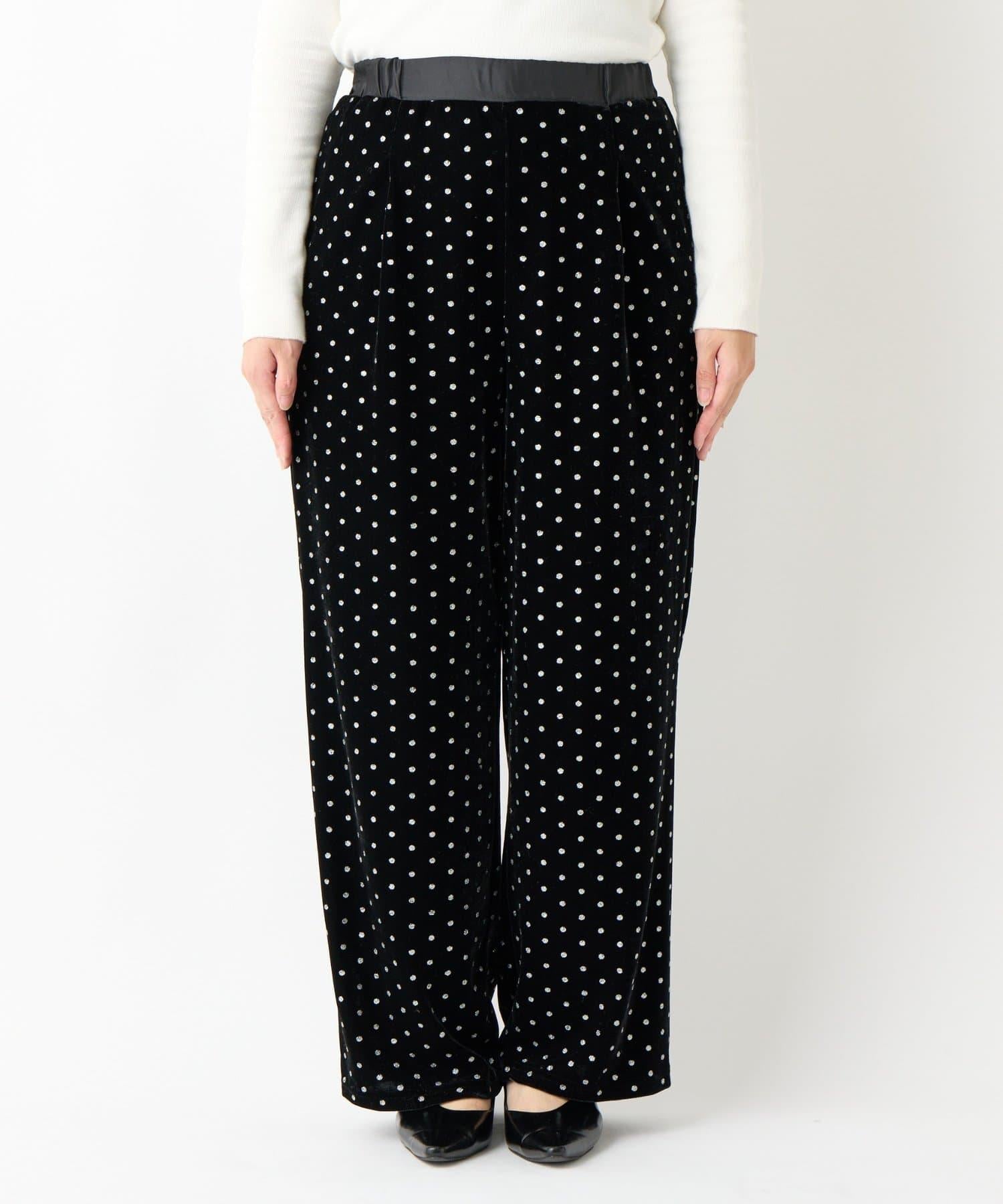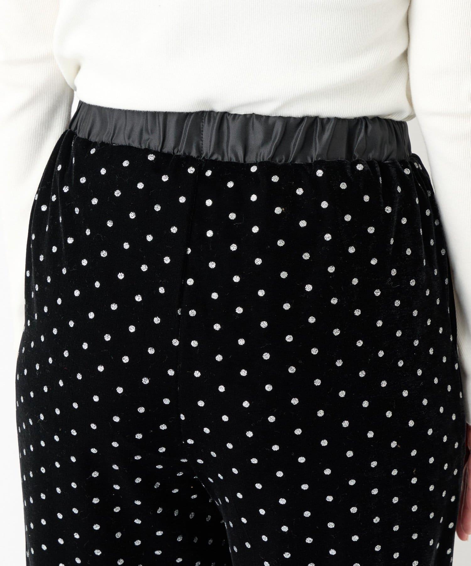 天鵝絨面料上的閃亮小圓點散發出優雅的光澤,讓這款長褲充滿迷人氣息。