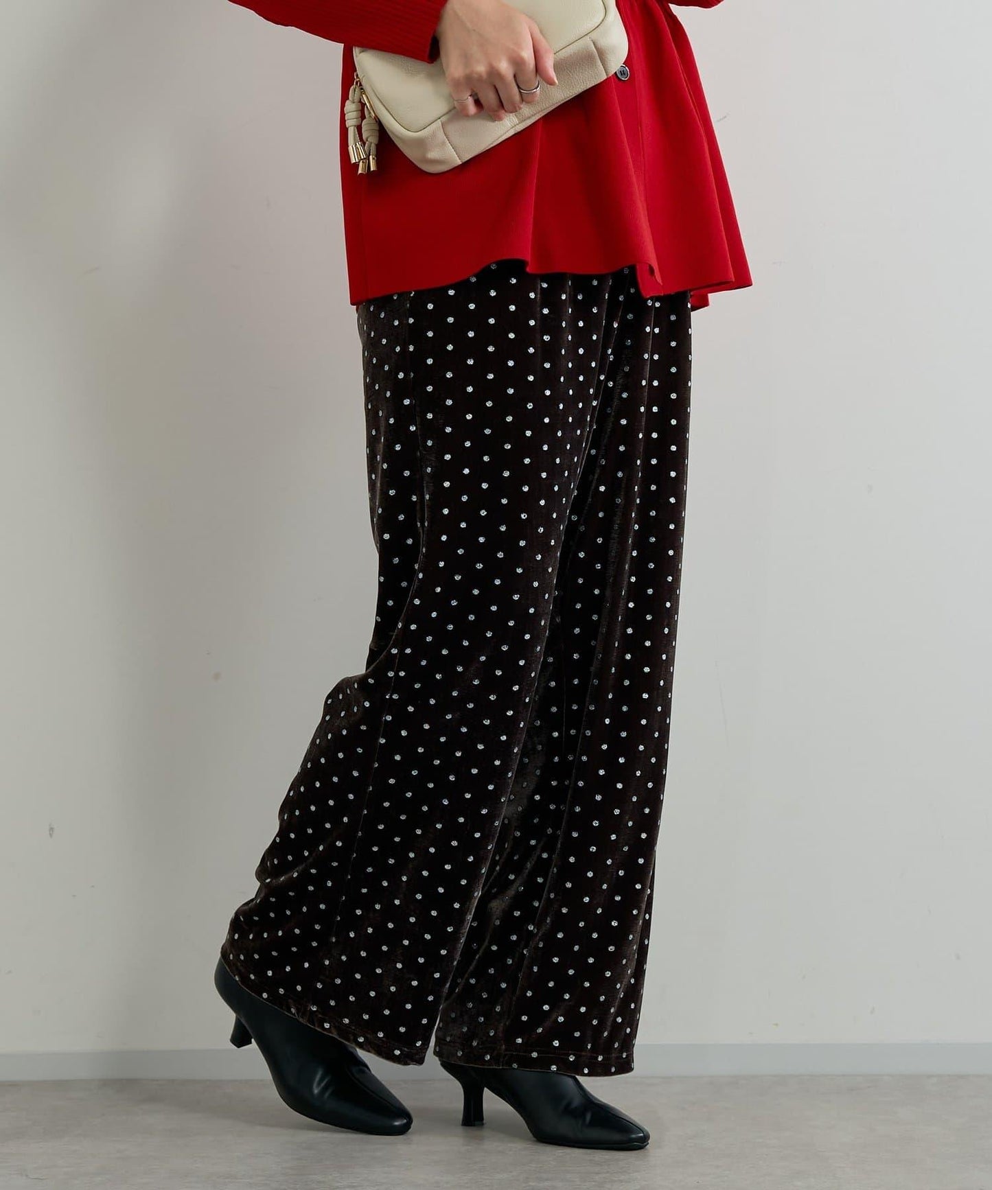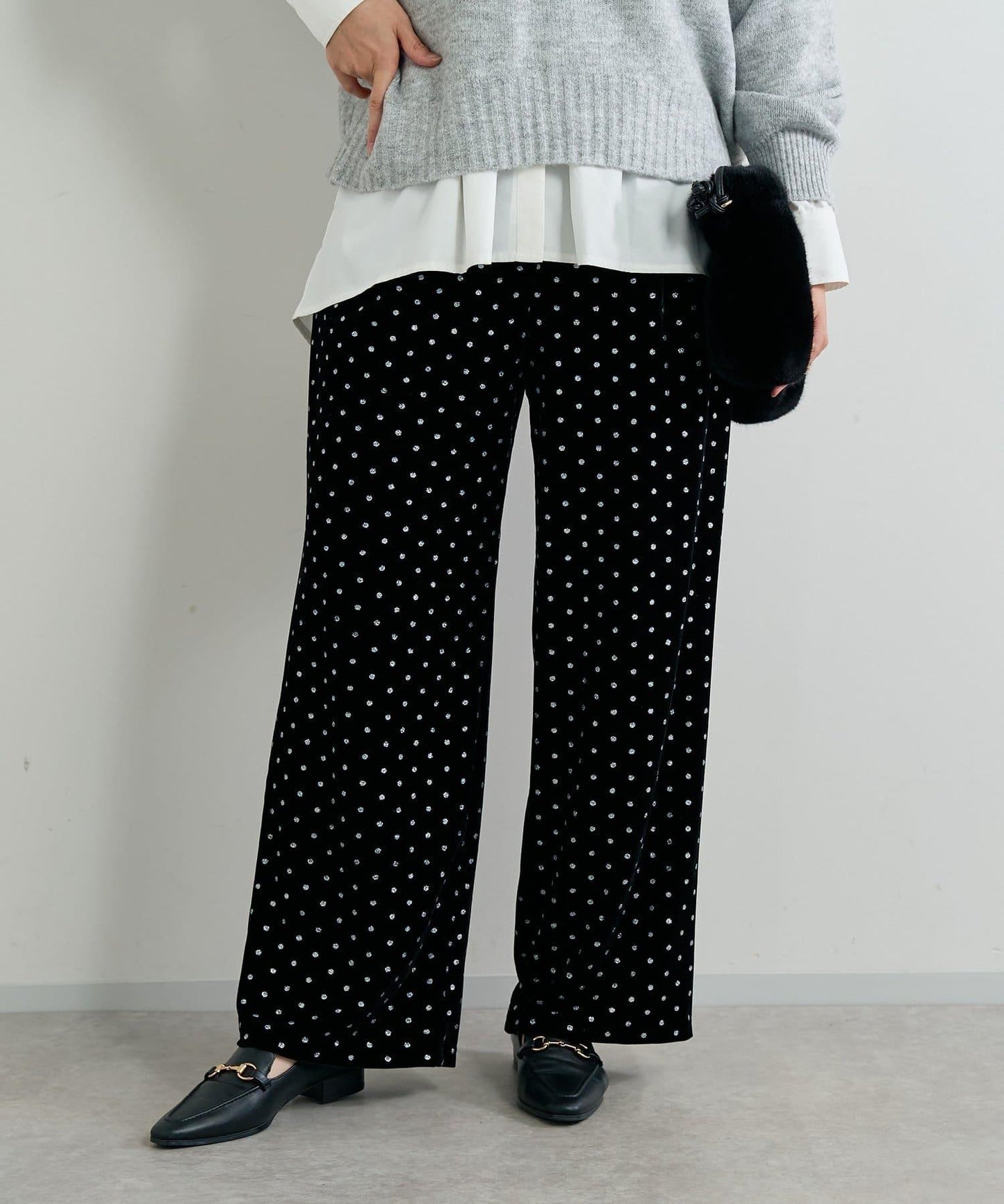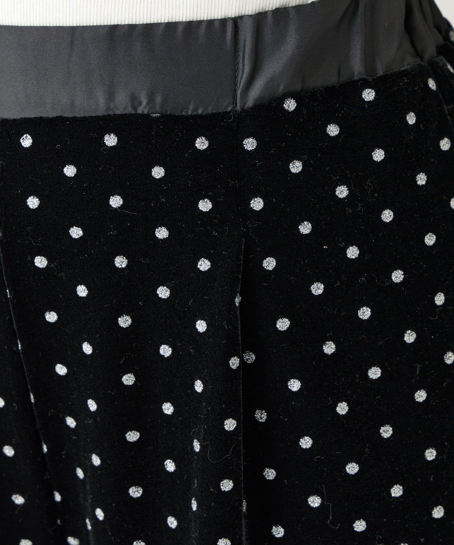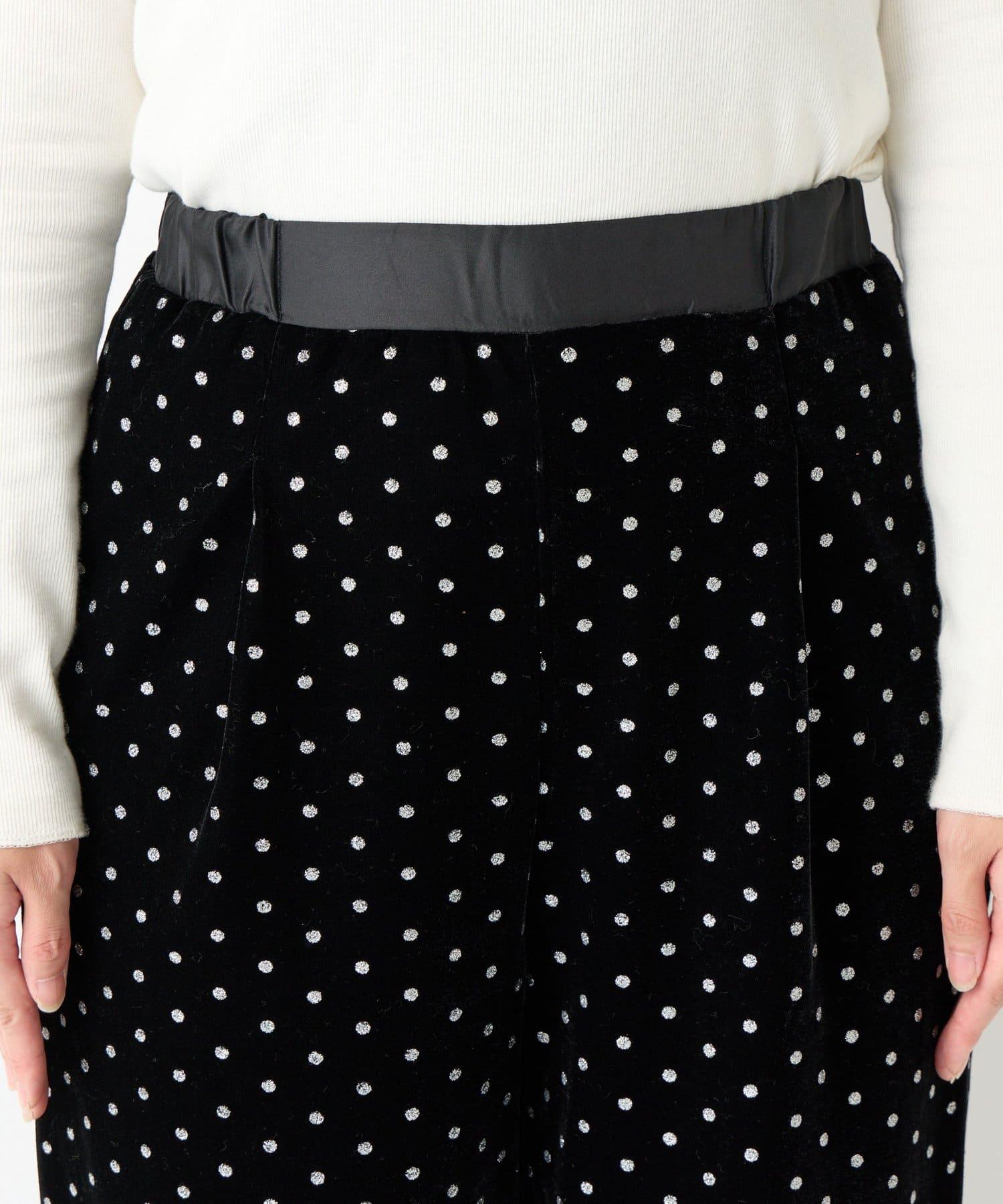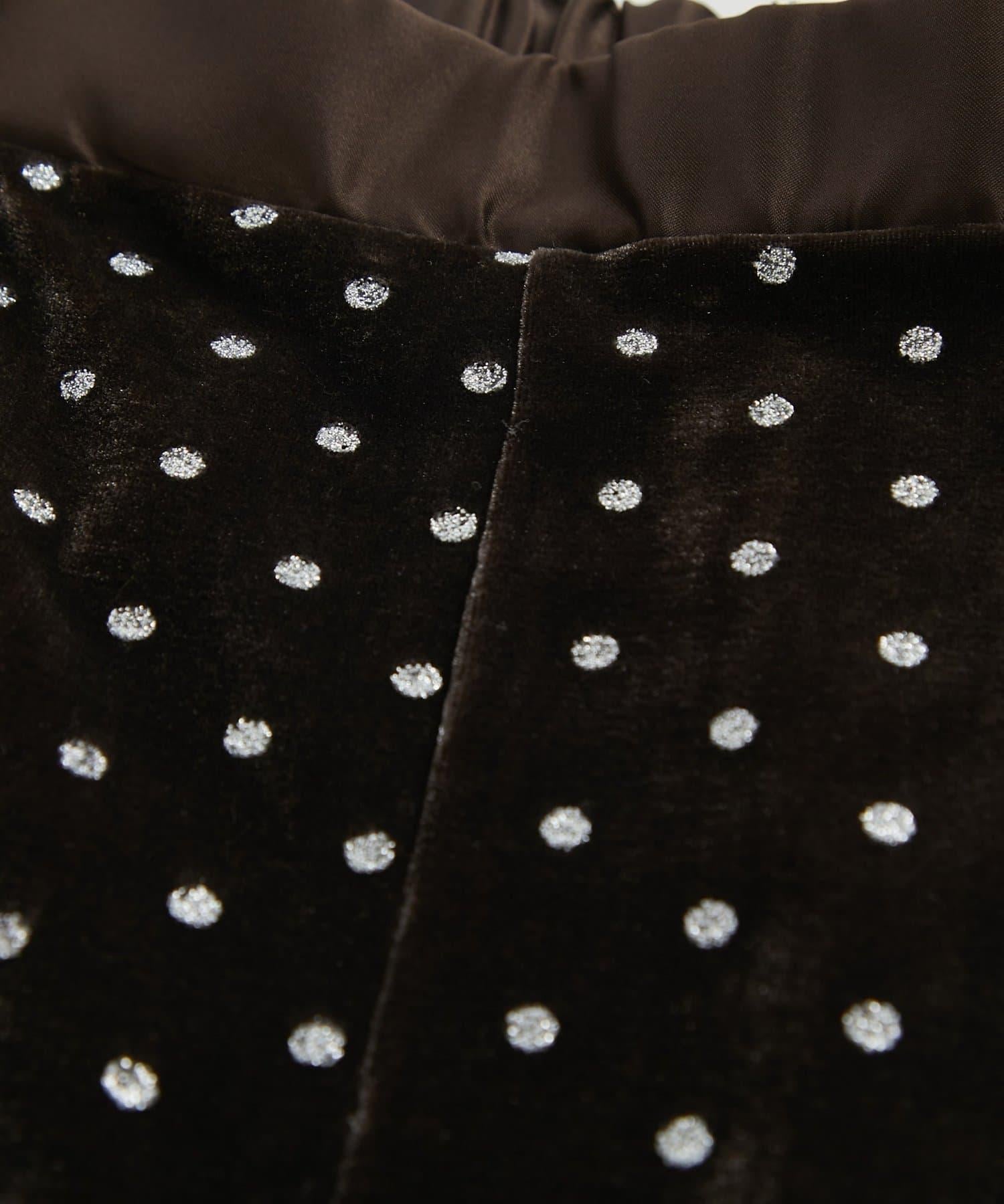 天鵝絨面料上的閃亮小圓點散發出優雅的光澤,讓這款長褲充滿迷人氣息。