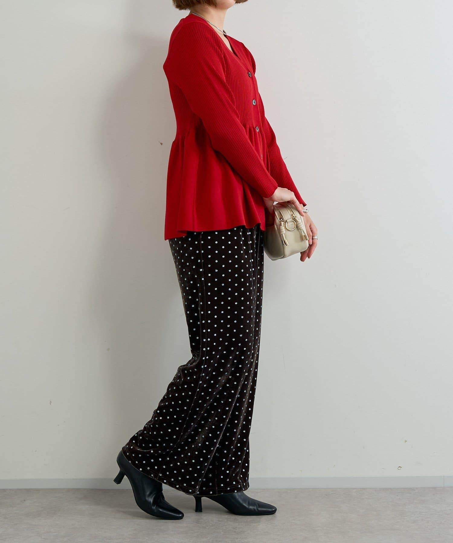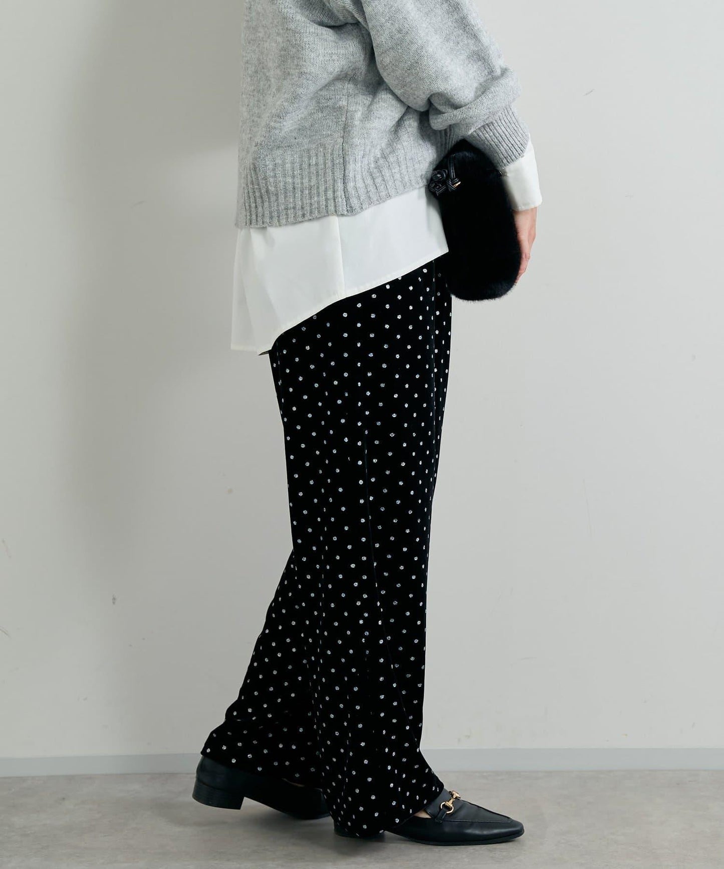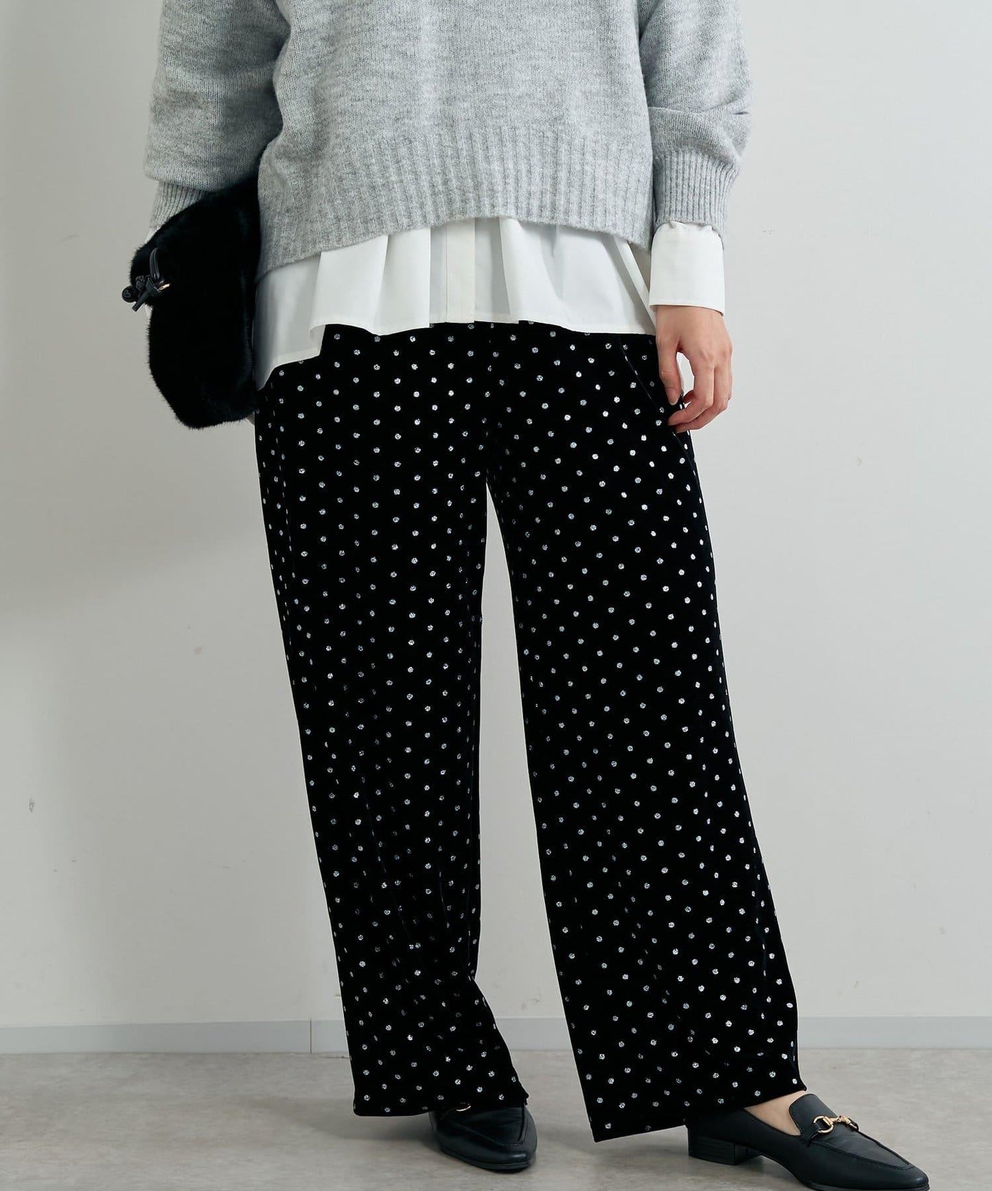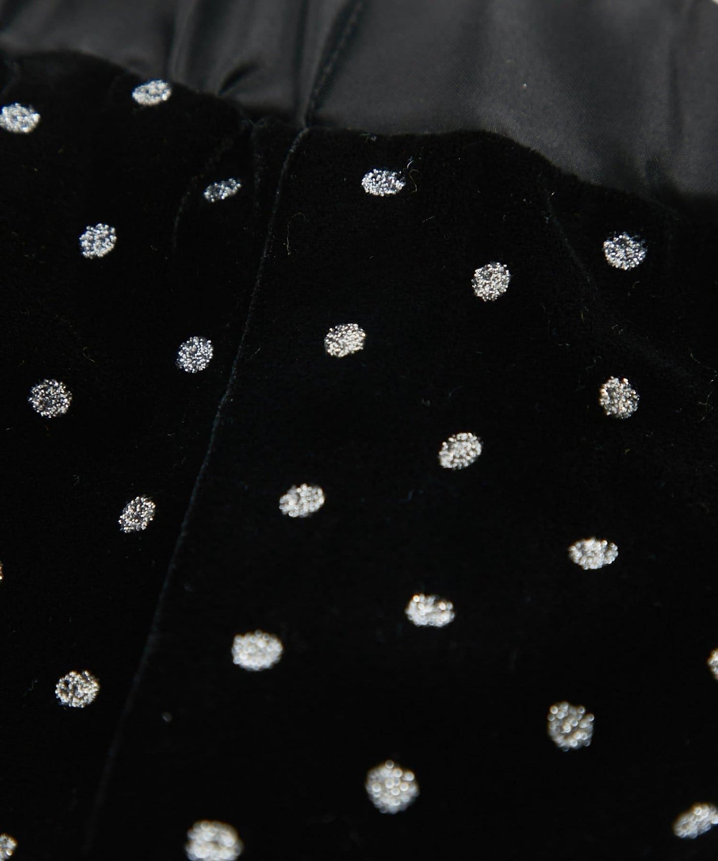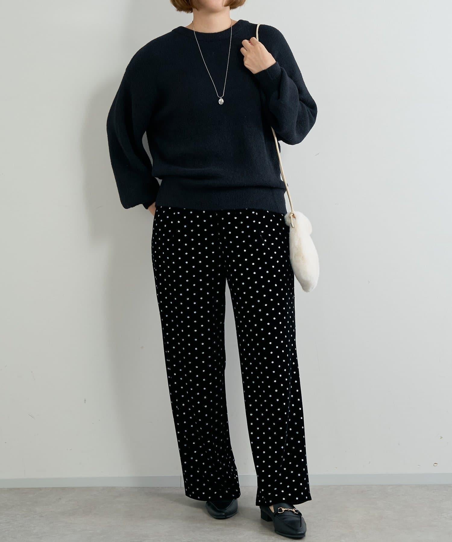 天鵝絨面料上的閃亮小圓點散發出優雅的光澤,讓這款長褲充滿迷人氣息。