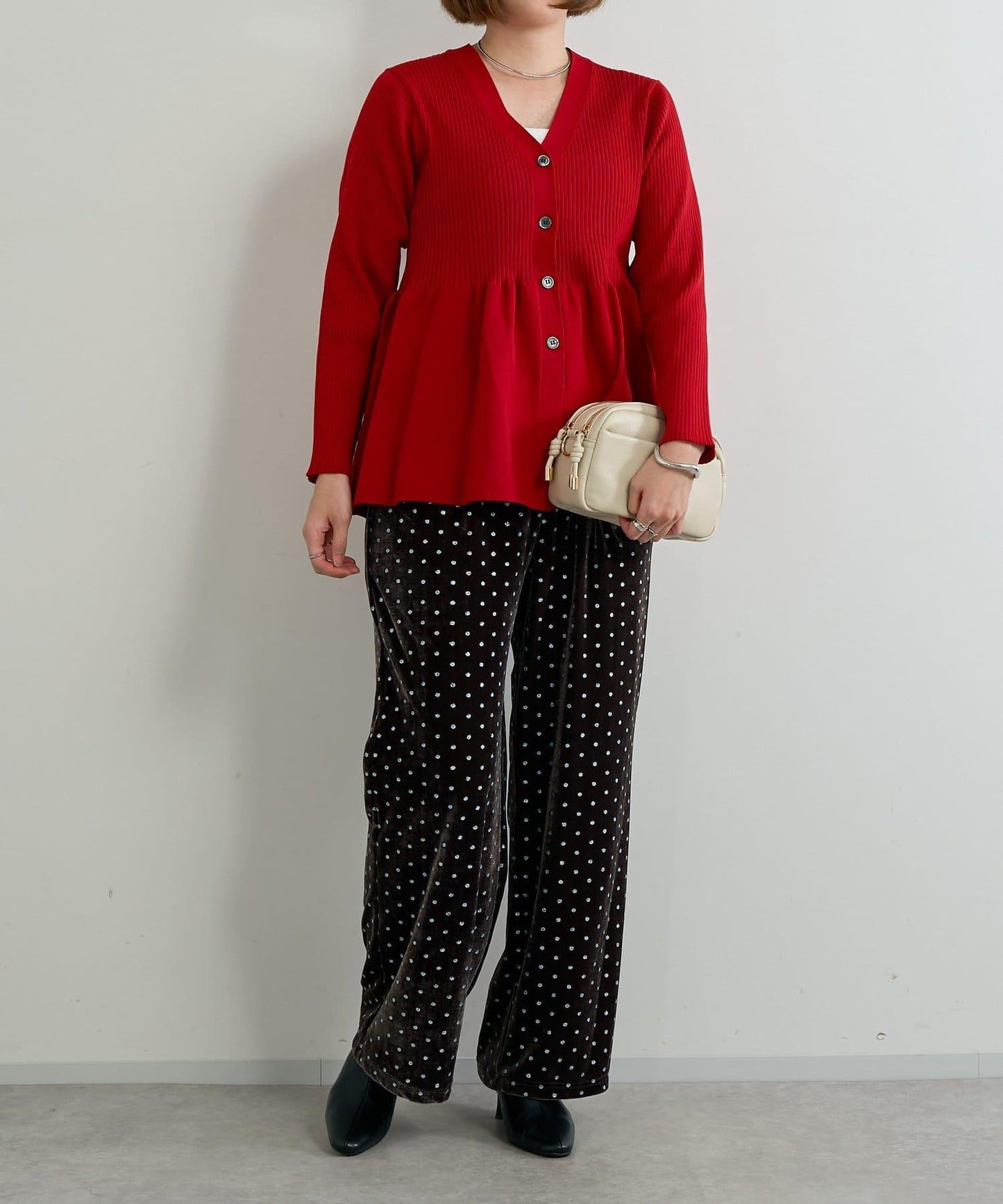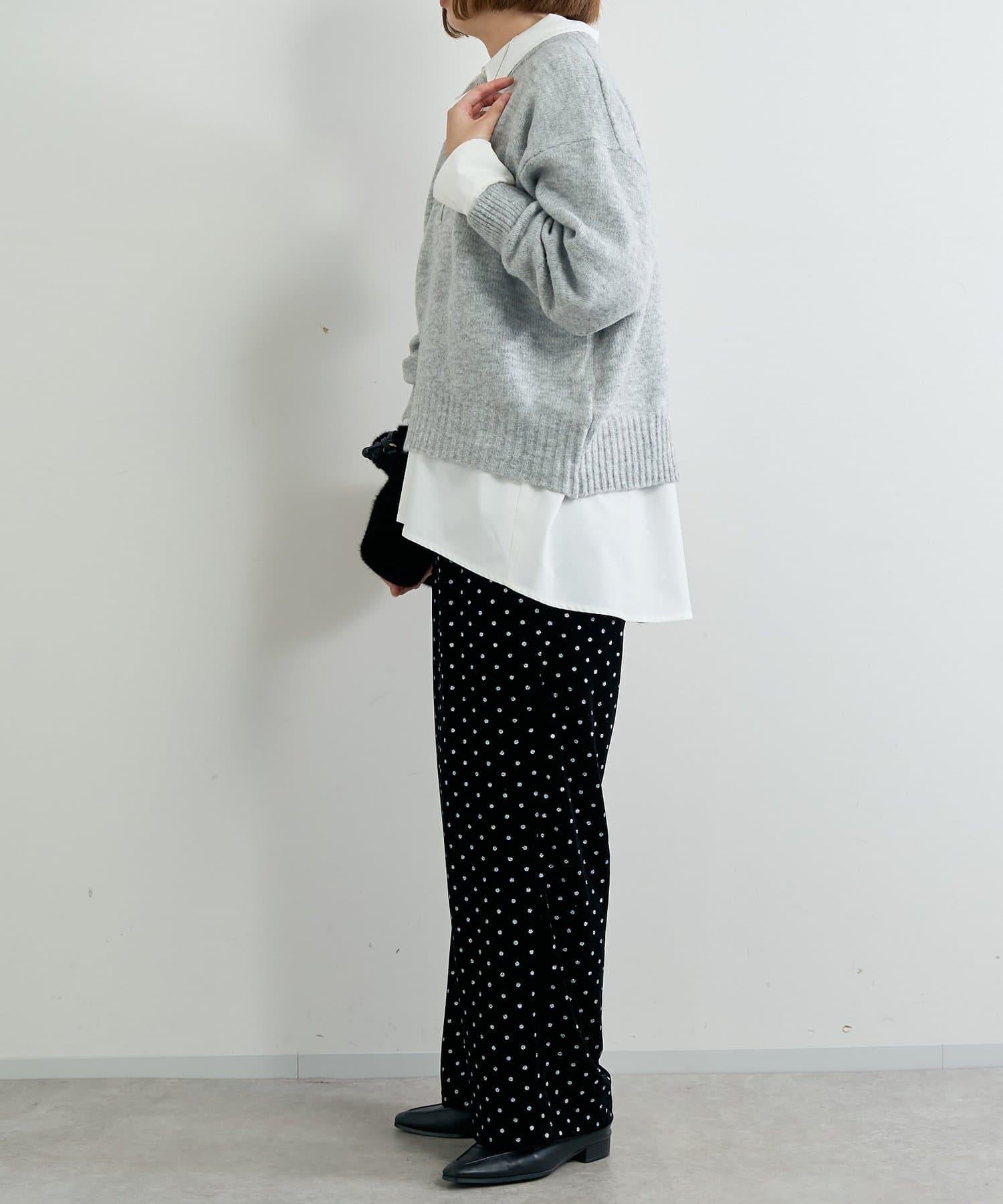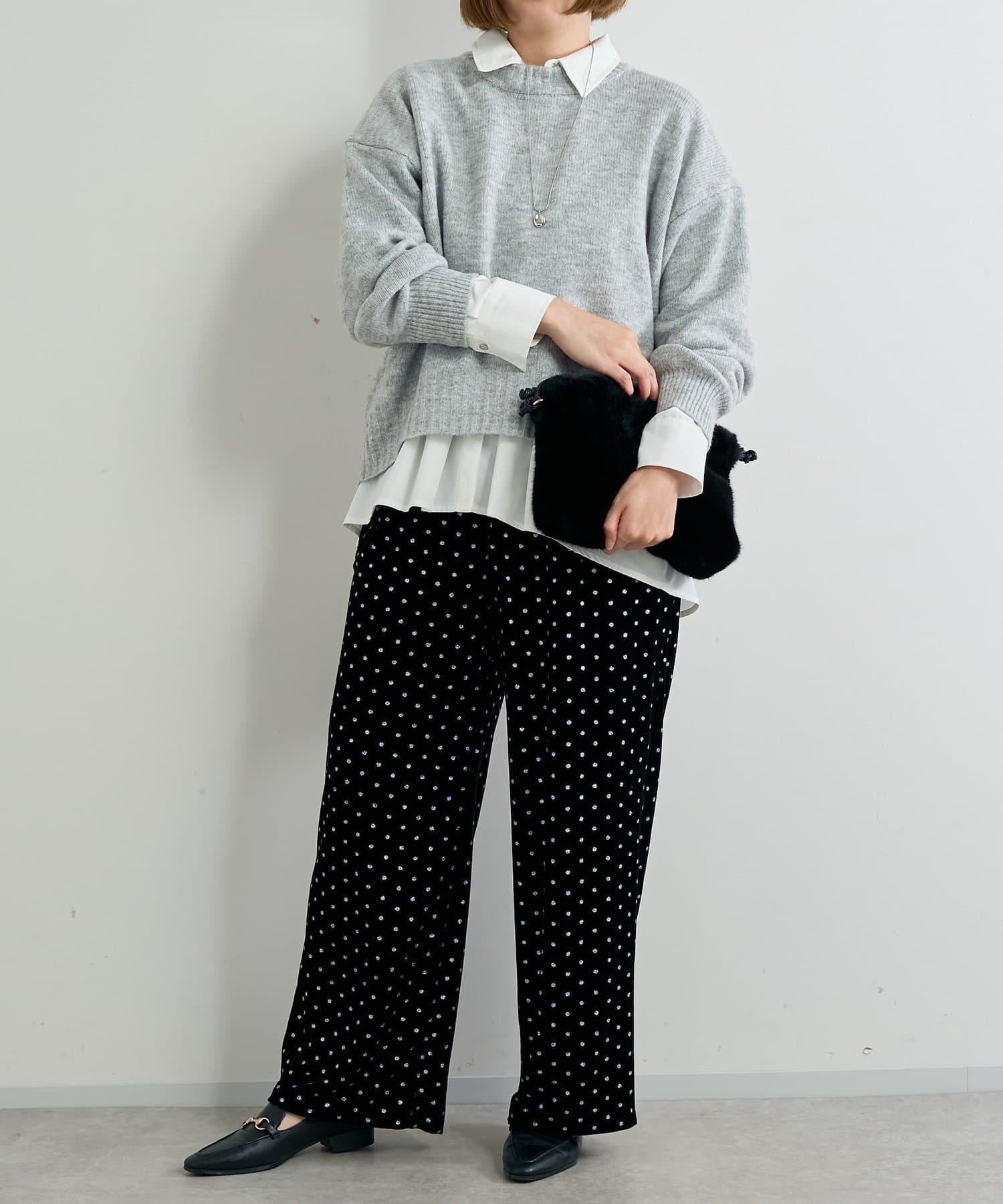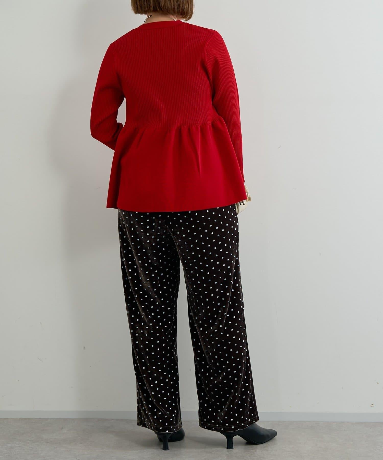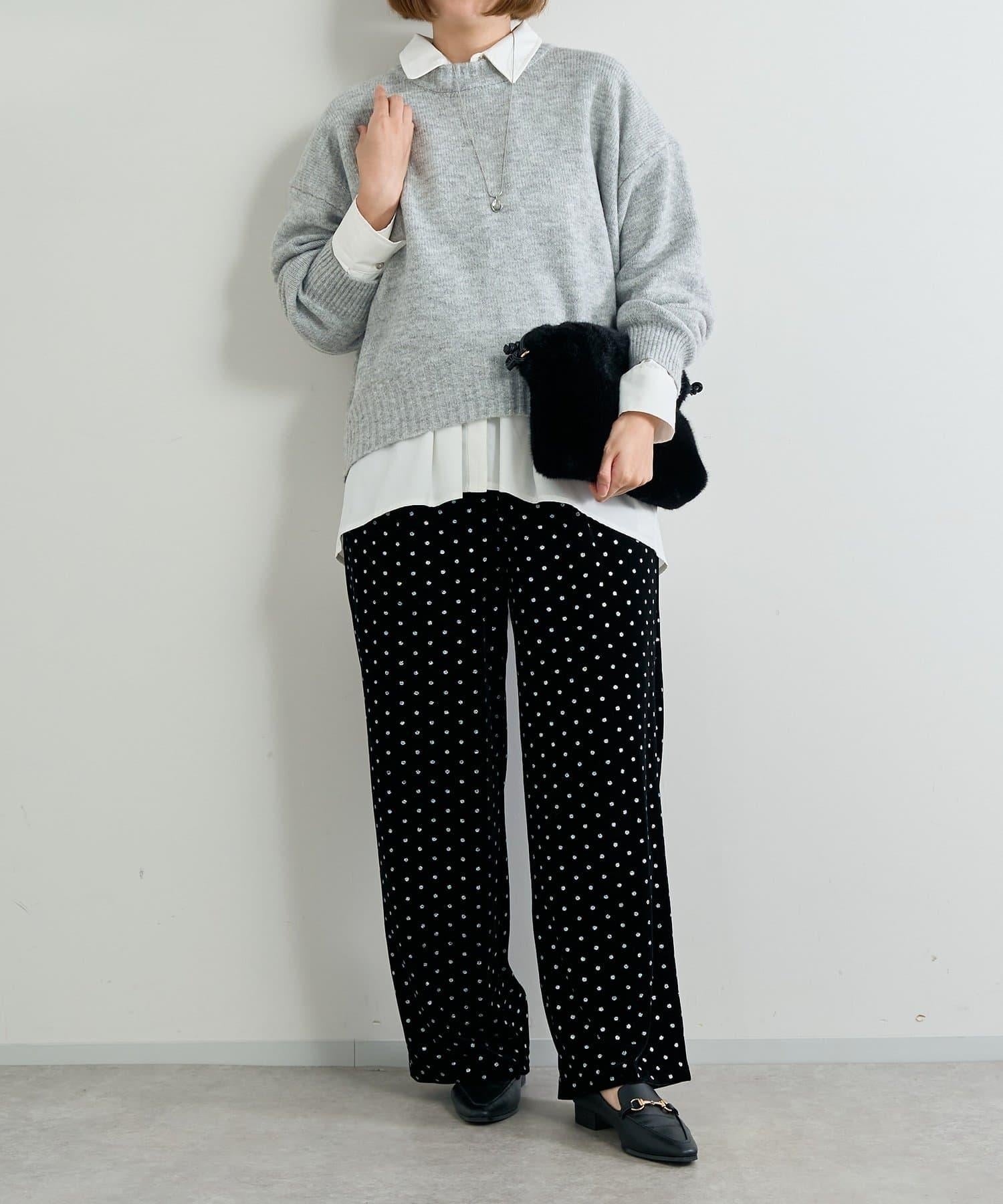 天鵝絨面料上的閃亮小圓點散發出優雅的光澤,讓這款長褲充滿迷人氣息。
